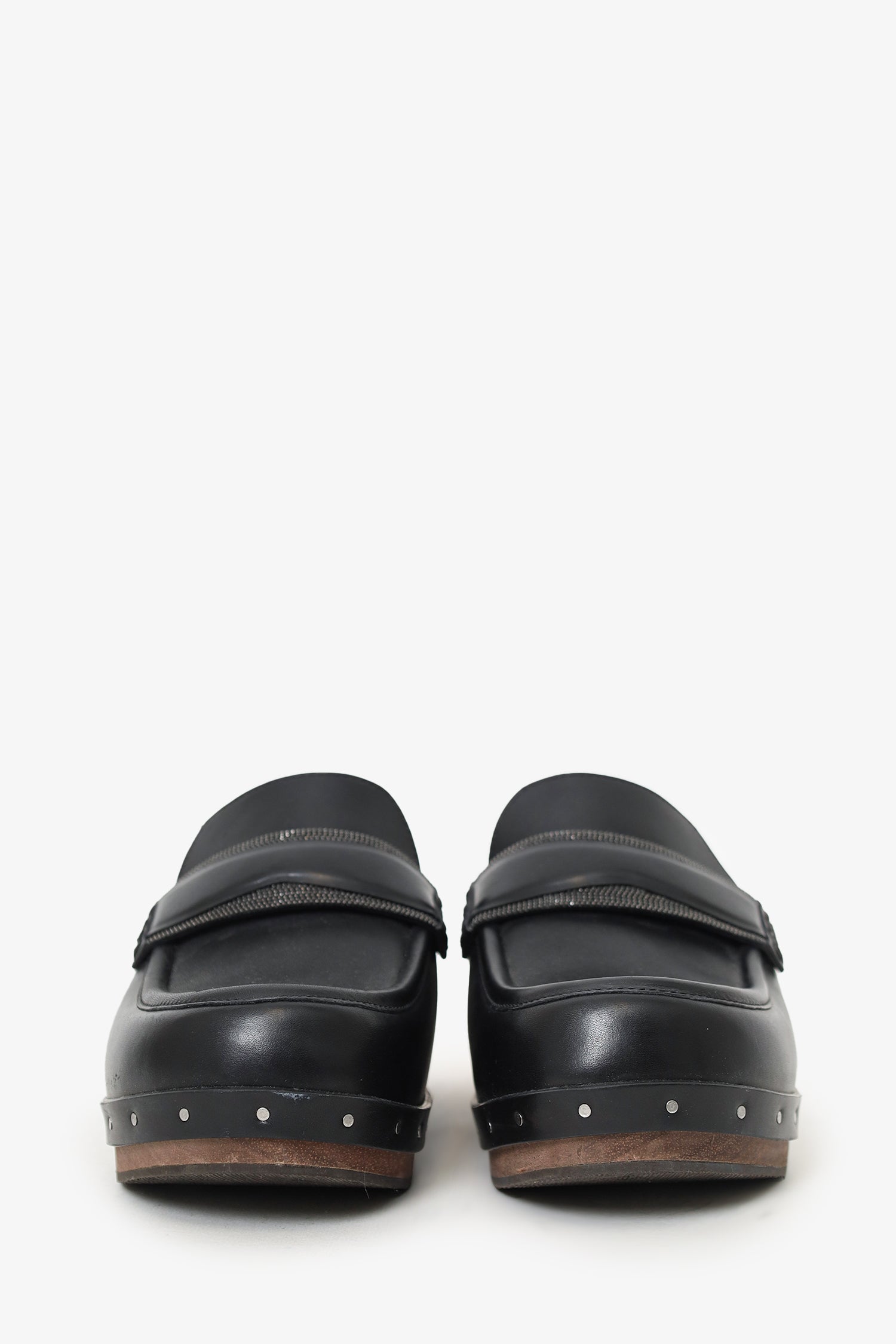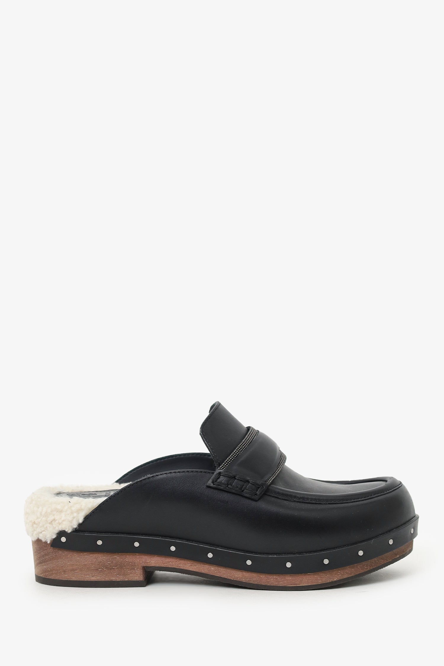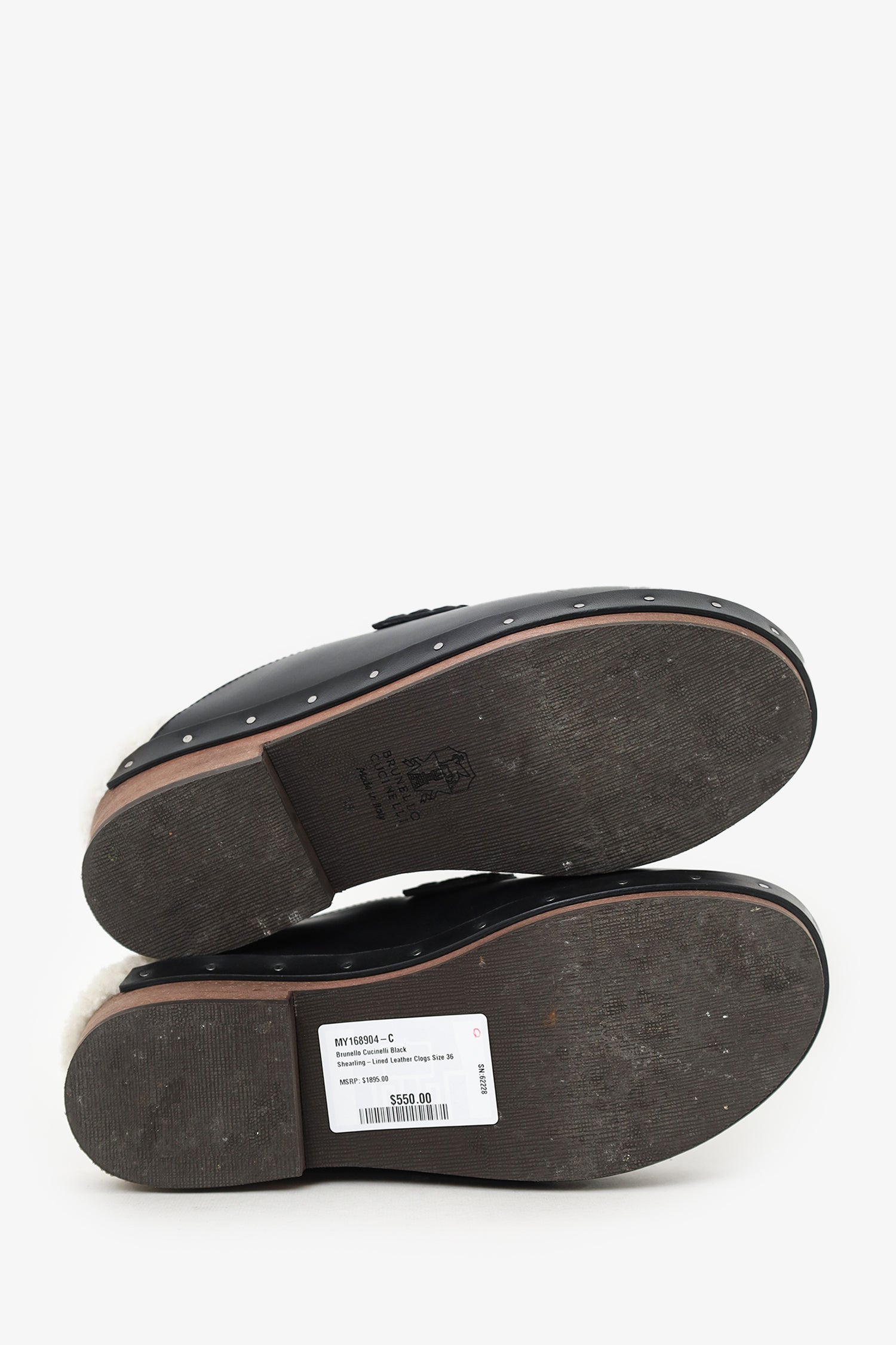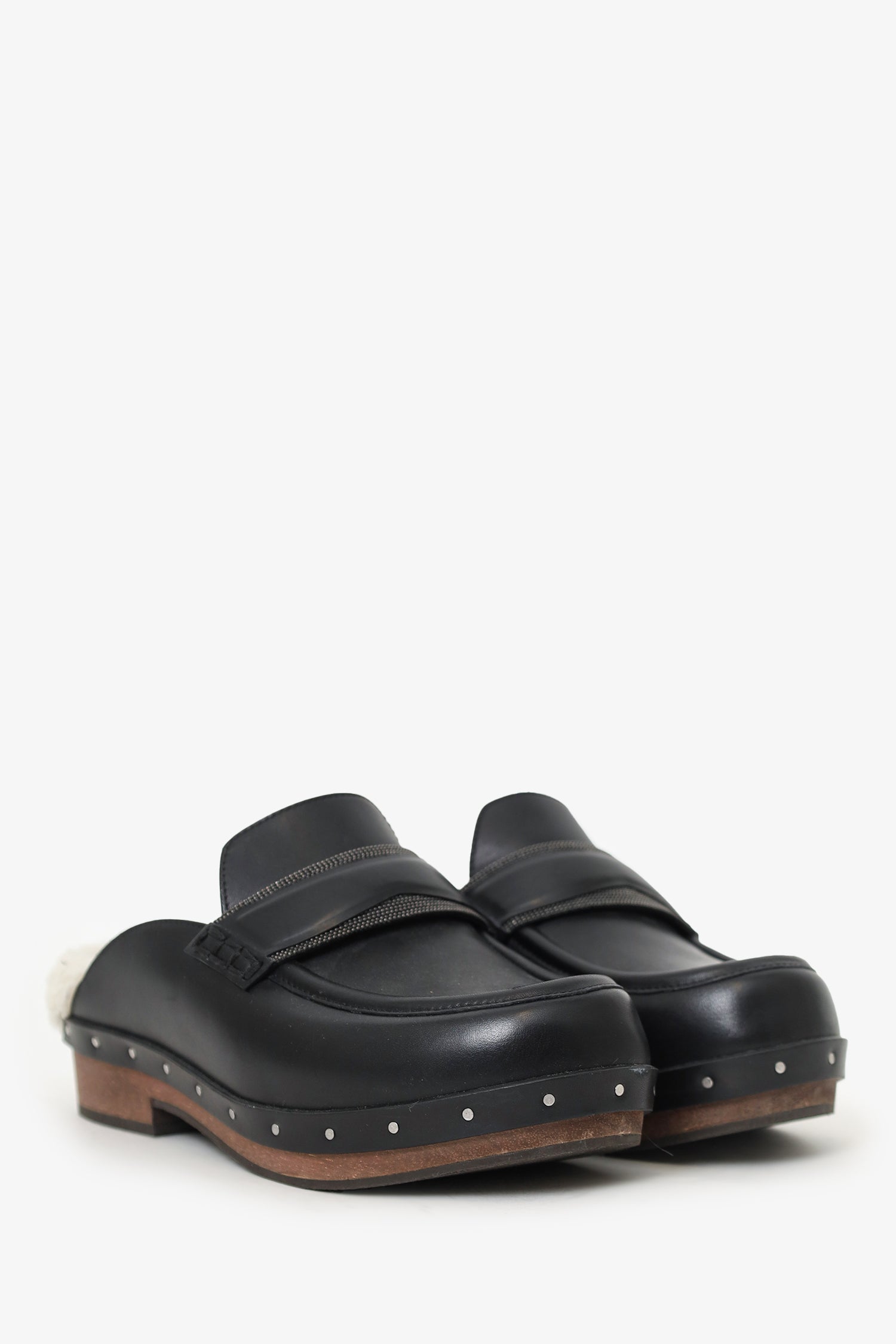 Brunello Cucinelli Black Shearling-Lined Leather Clogs Size 36