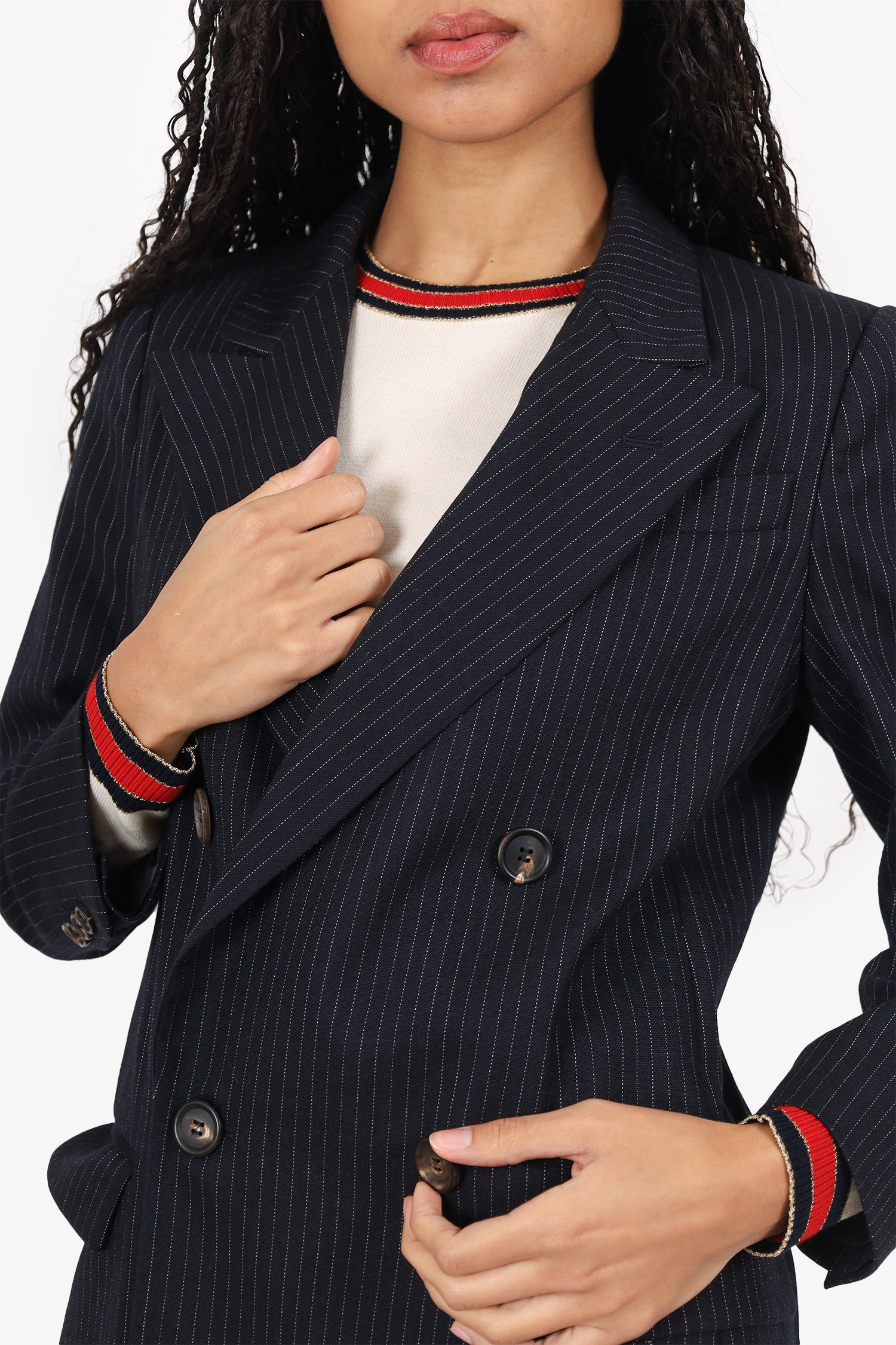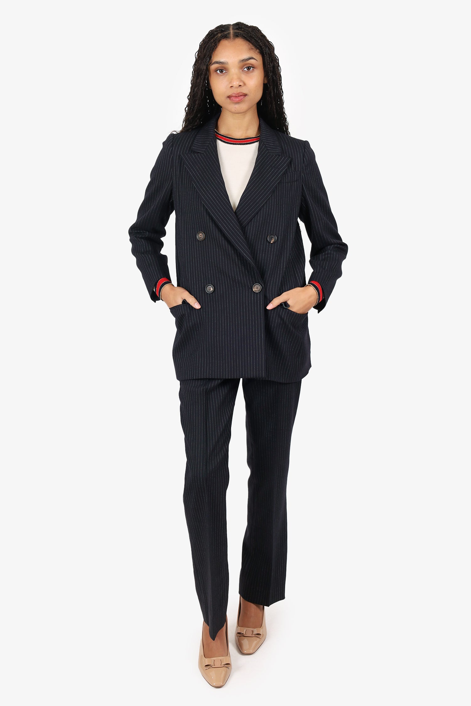 Brunello Cucinelli Black Wool Striped Two Piece Suit Size 38