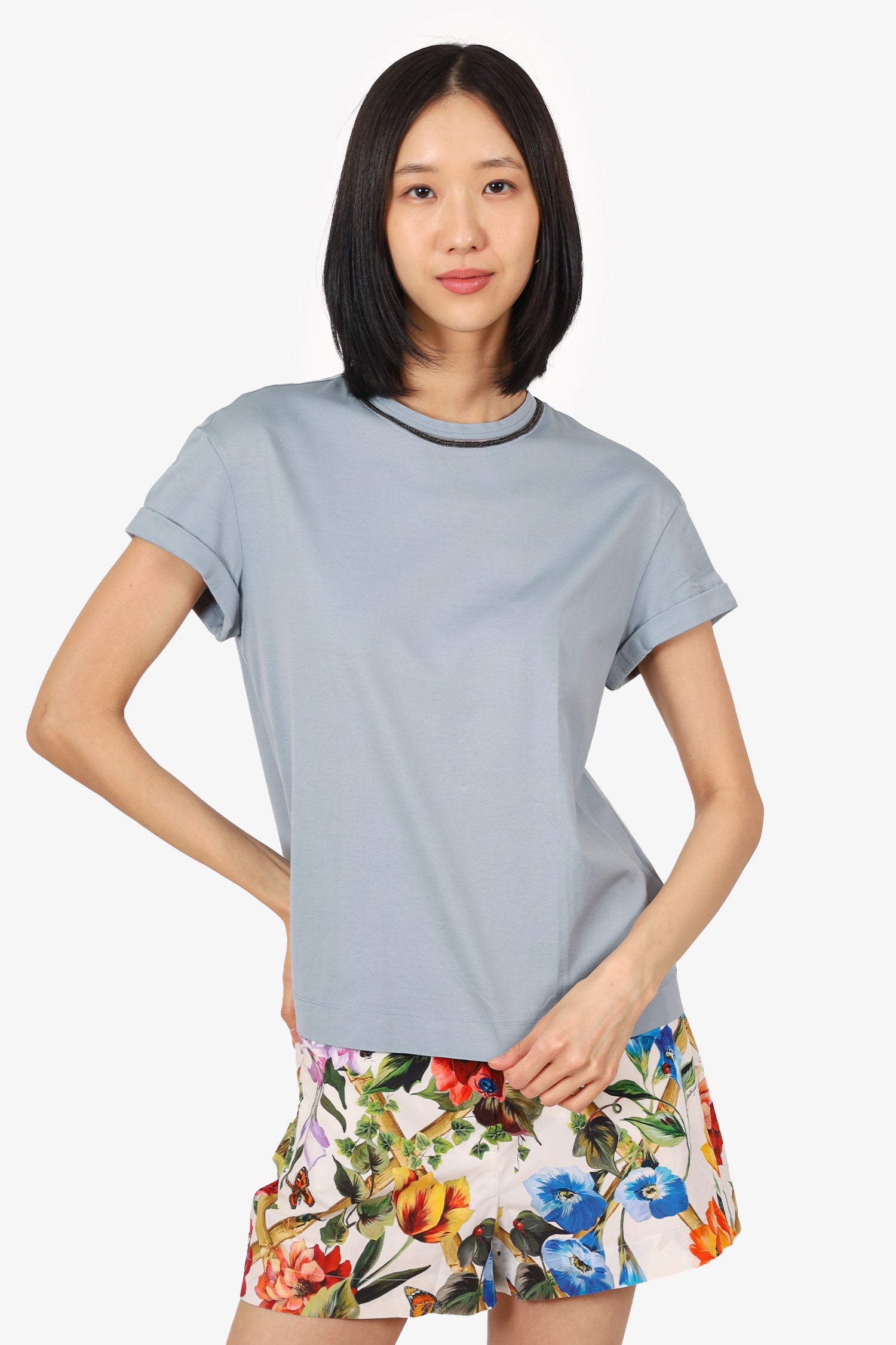 Brunello Cucinelli Blue Beaded Detail Top Size S