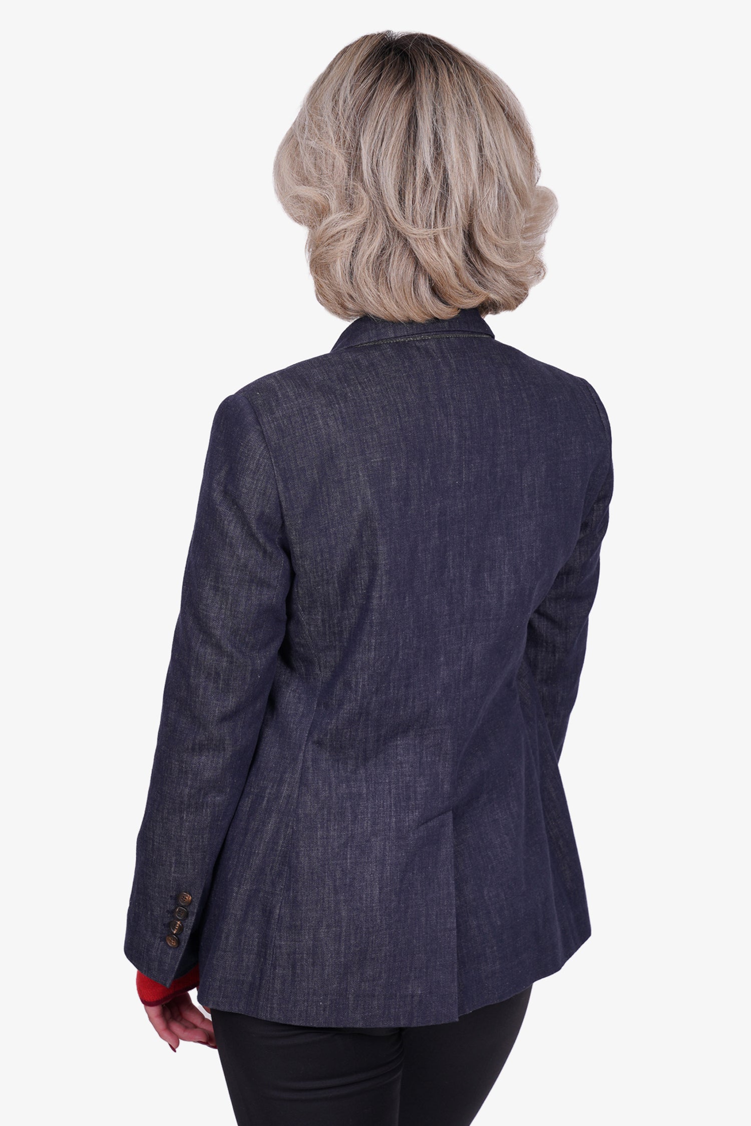Brunello Cucinelli Blue Denim Cotton Blazer Size 42