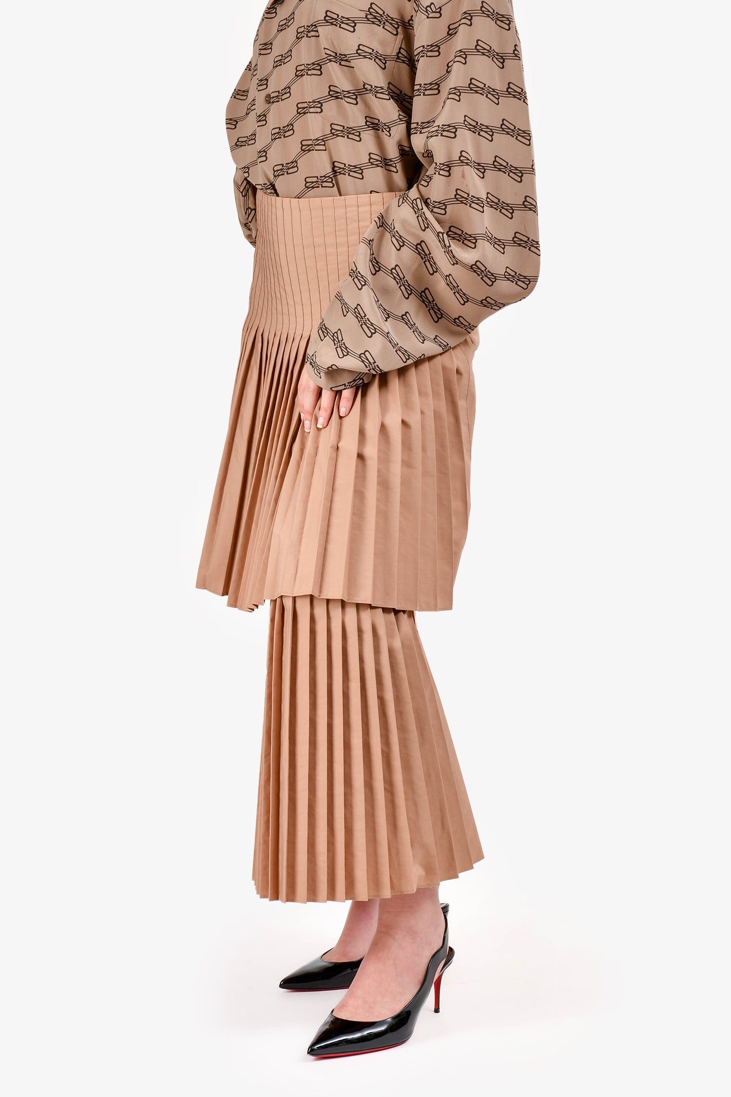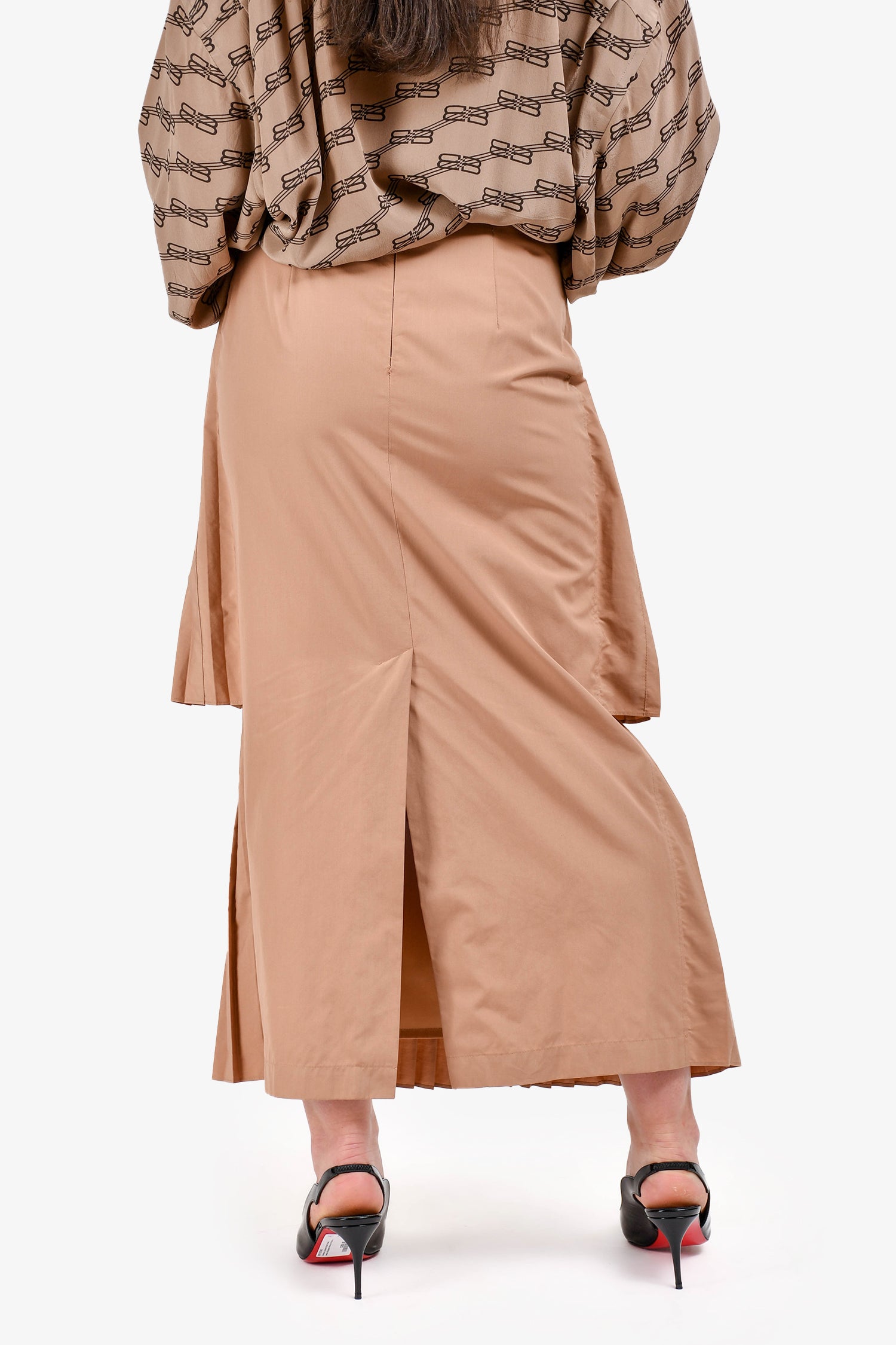 Brunello Cucinelli Blush Pleated Cotton Tiered Midi Skirt Size 6