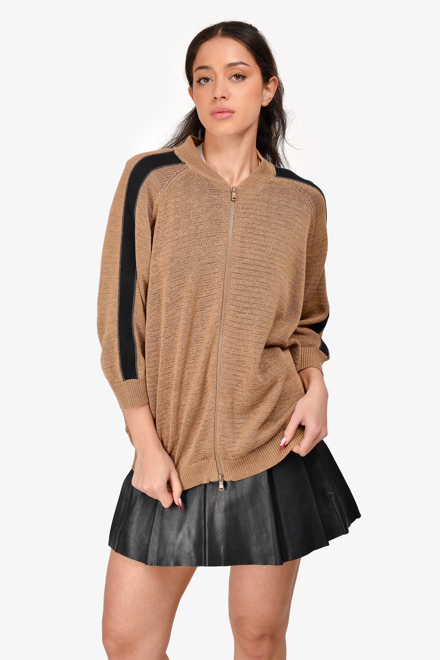 Refresh availabilityBrunello Cucinelli Brown Cotton Knit Zip Up Sweater. Front zip-up closure. Tonal hardware. Ribbed at the collar, hem and sleeves. Tonal stitching.