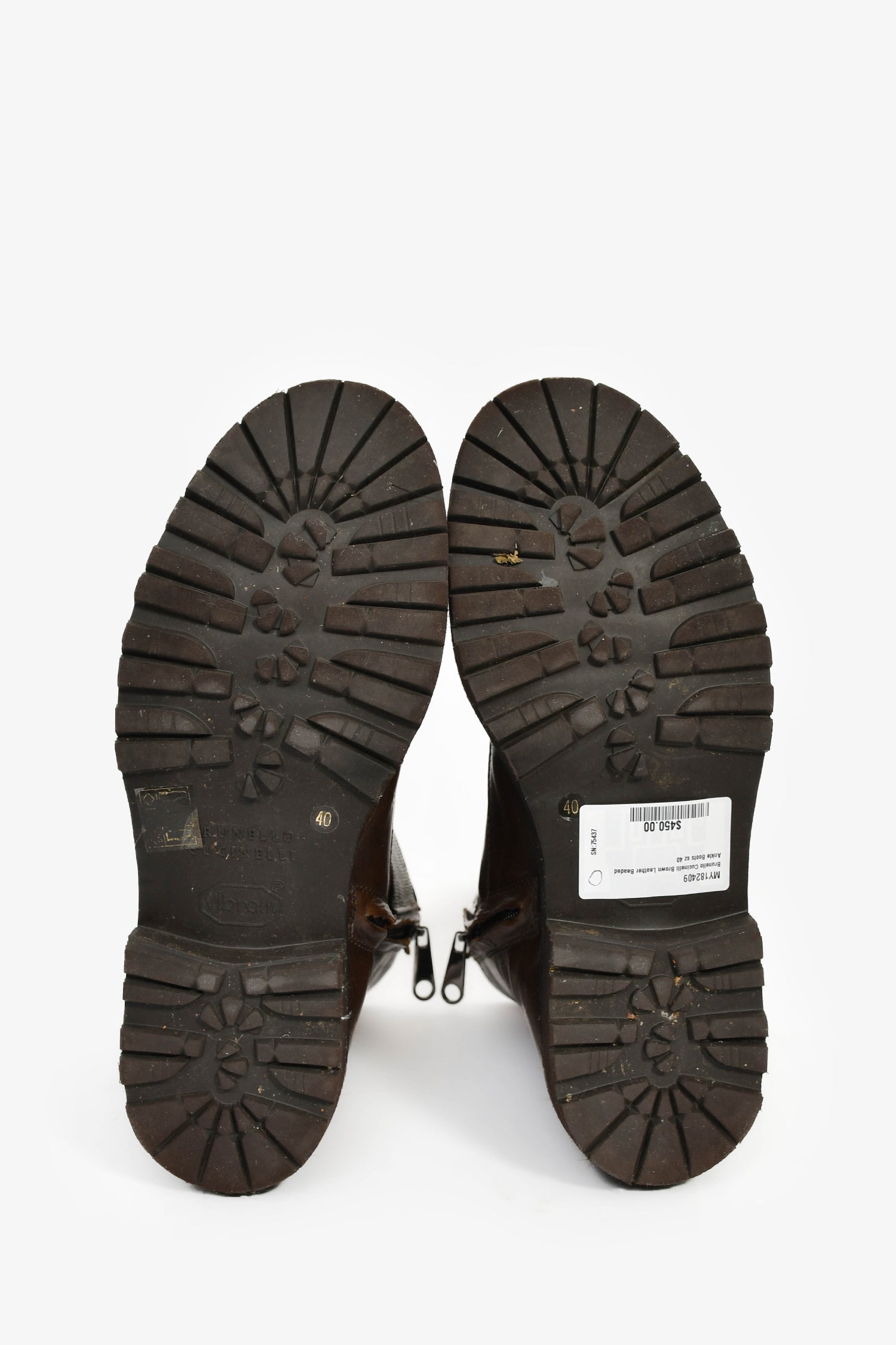 Brunello Cucinelli Brown Leather Beaded Ankle Boots Size 40
