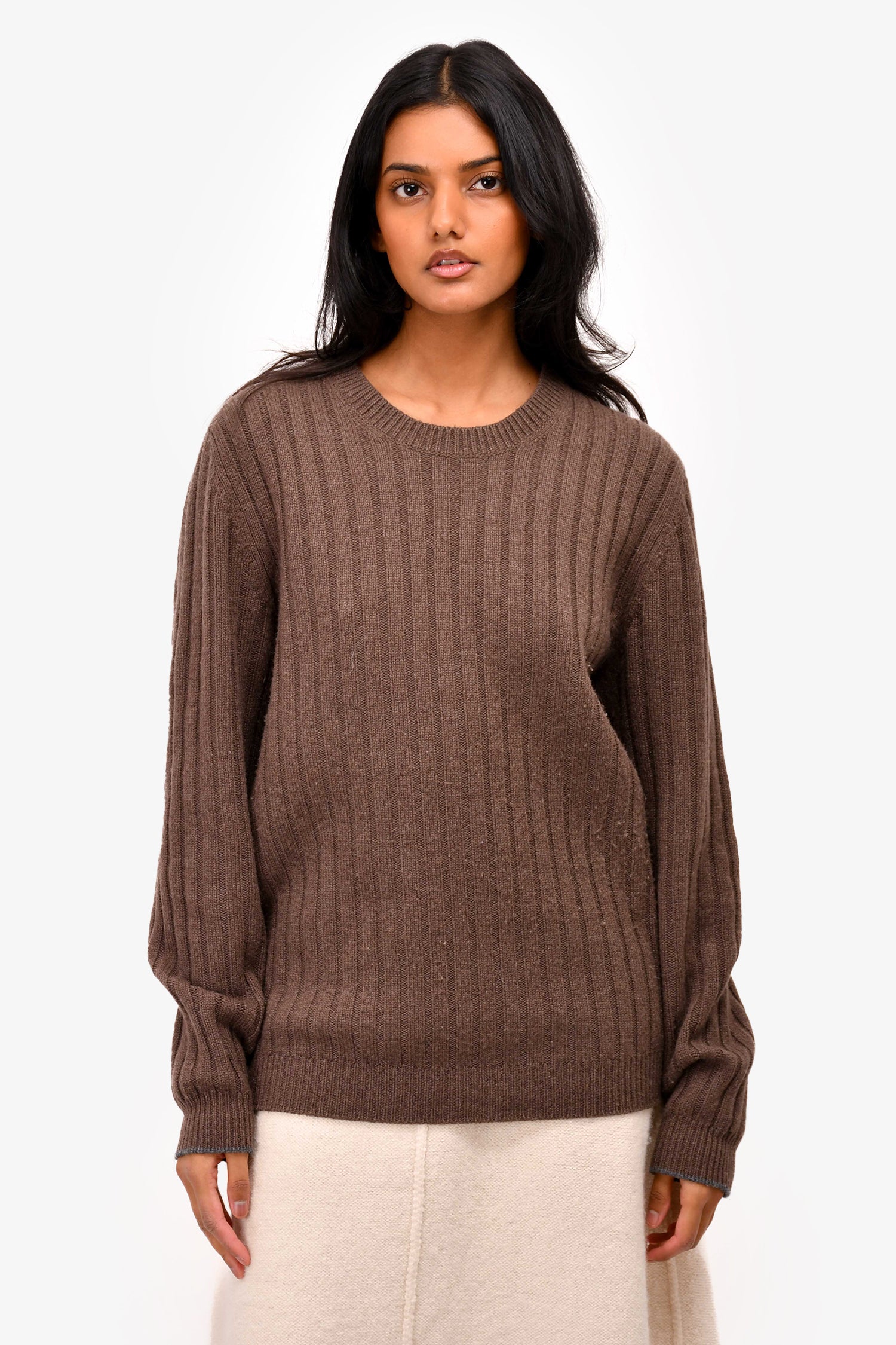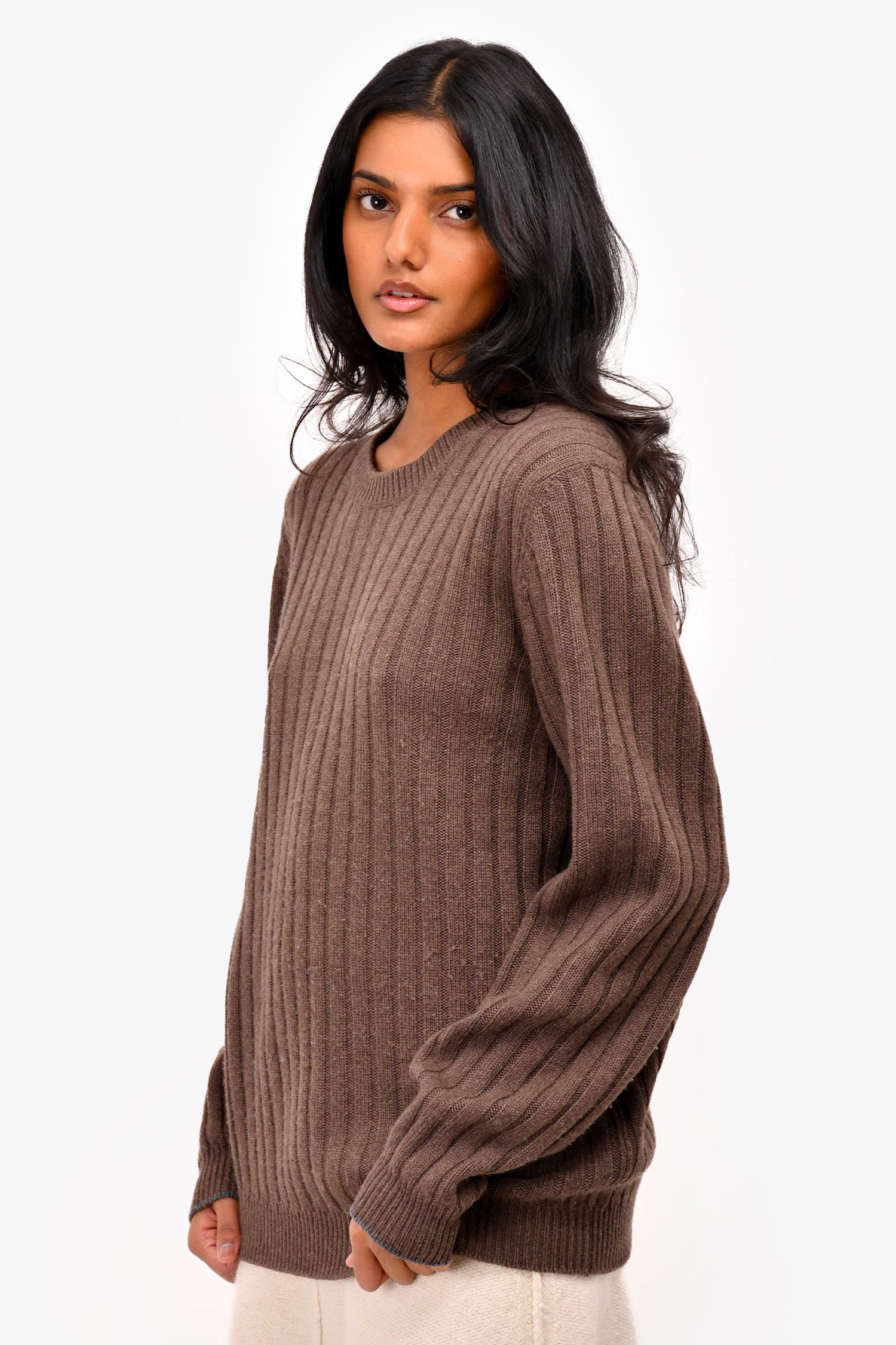 Refresh availabilityBrunello Cucinelli Brown Ribbed Cashmere Sweater. Pull-on. Ribbed neck, cuffs and hem.