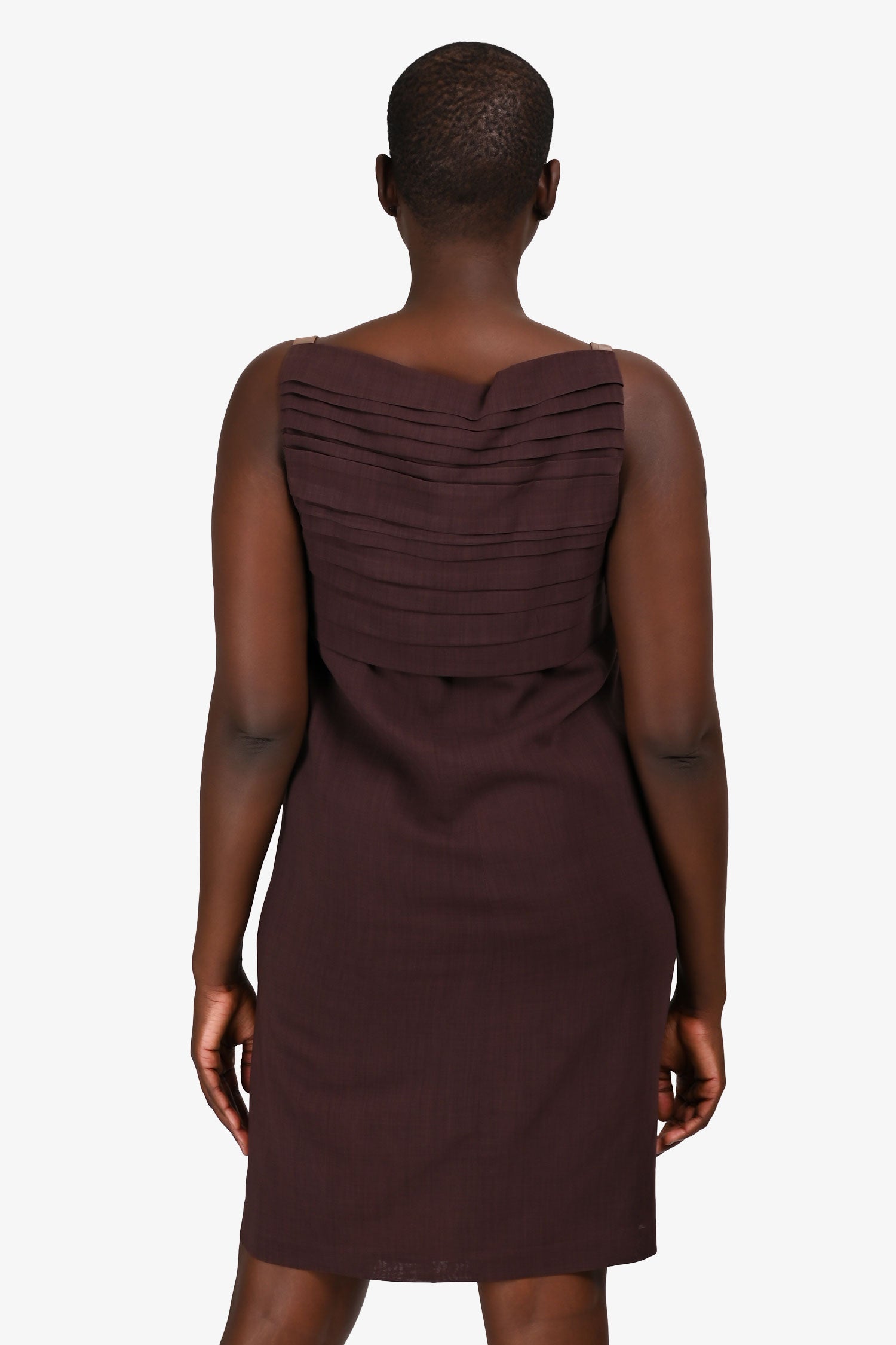 Refresh availabilityBrunello Cucinelli Brown Virgin Wool Pleated Detail Sleeveless Dress. Slip-on. Square neckline. Leather shoulder strap detail. Lined interior. Tonal stitching.