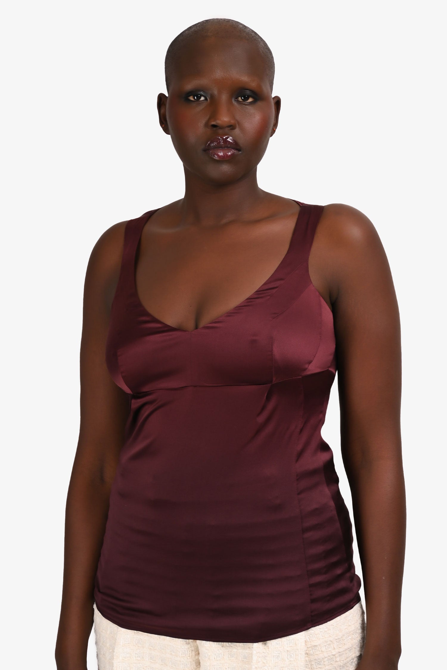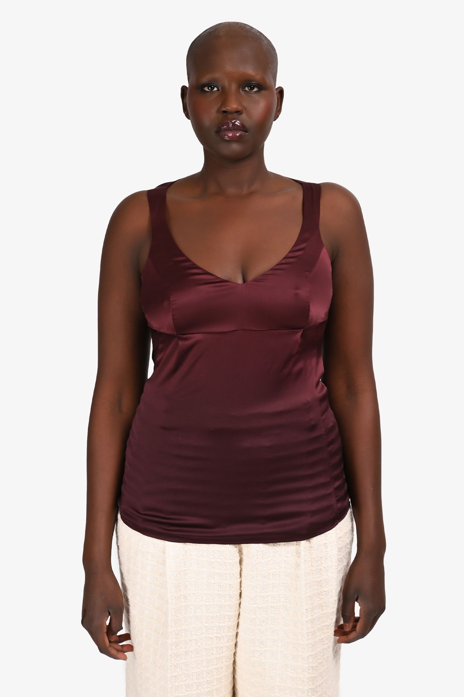 Brunello Cucinelli Burgundy Silk Sleeveless V-Neck Top Size M