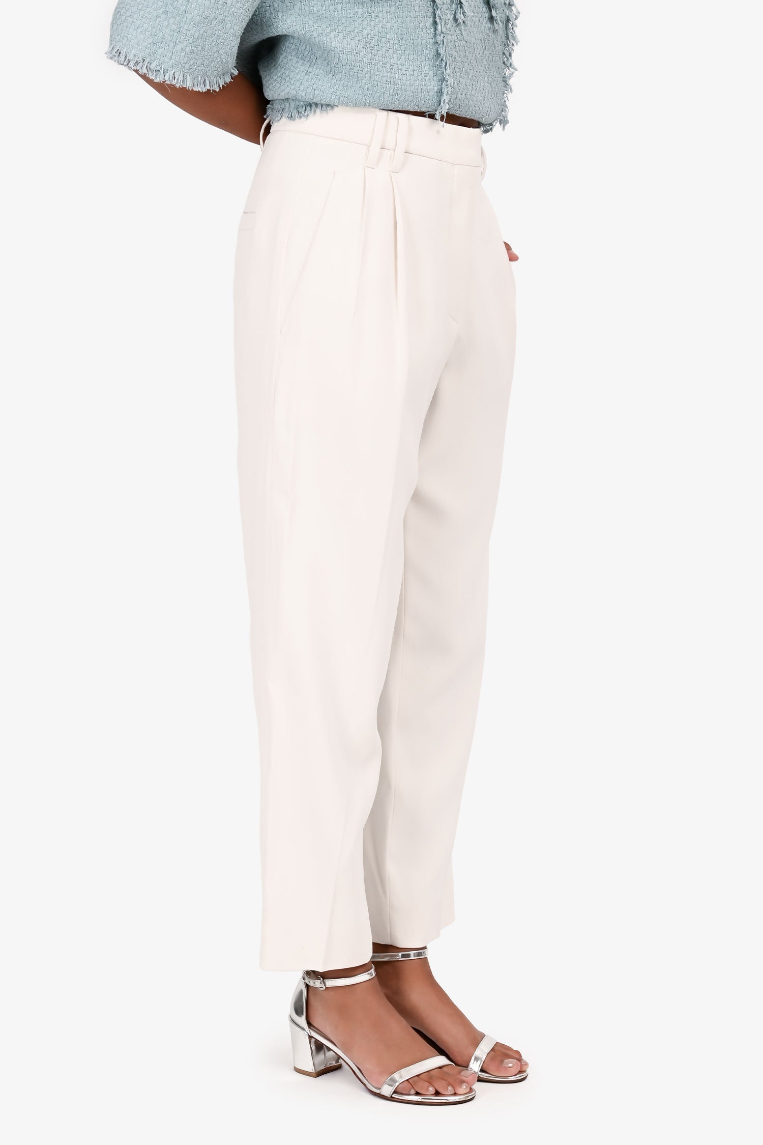 Brunello Cucinelli Cream Pleated Tapered Pants Size 2