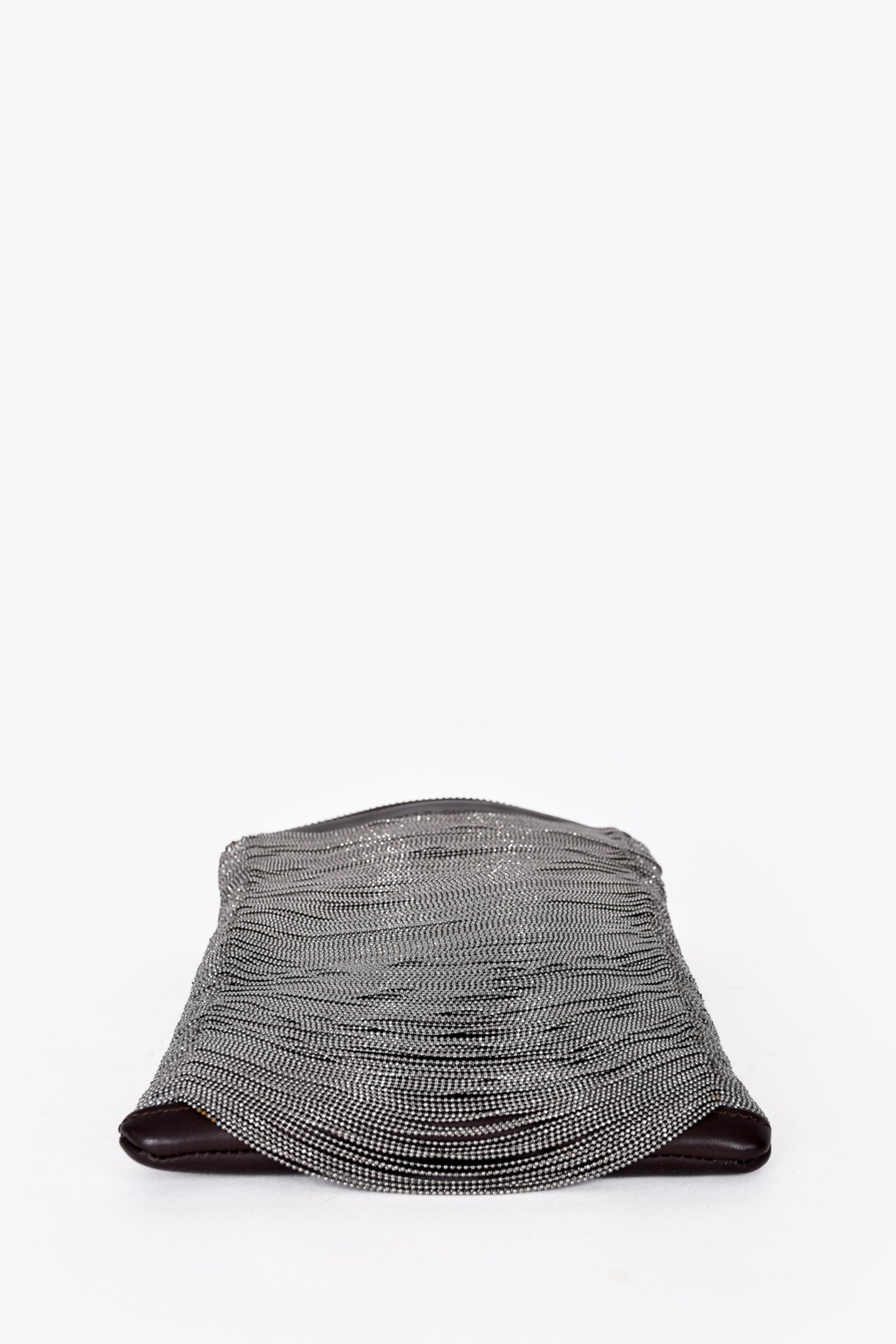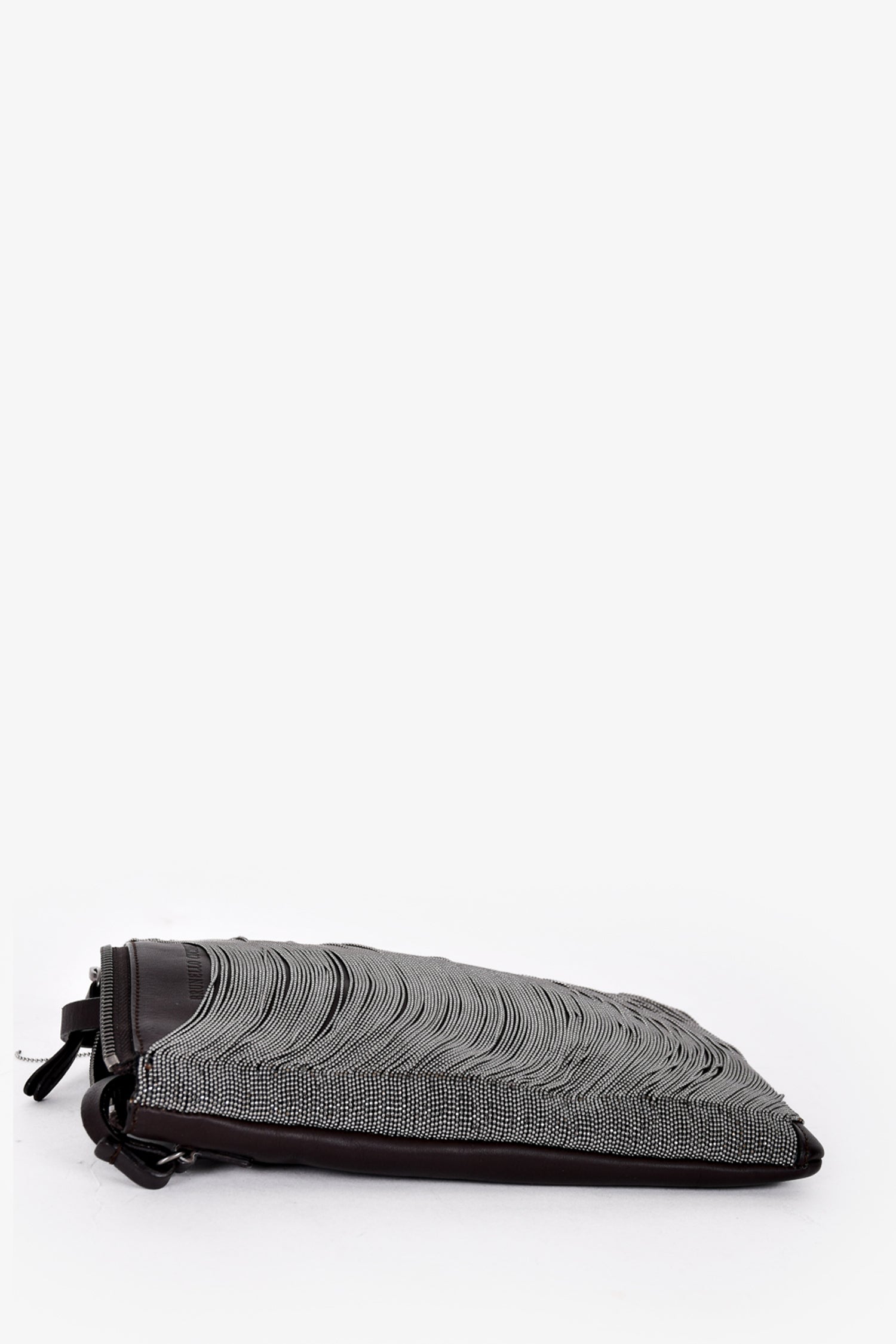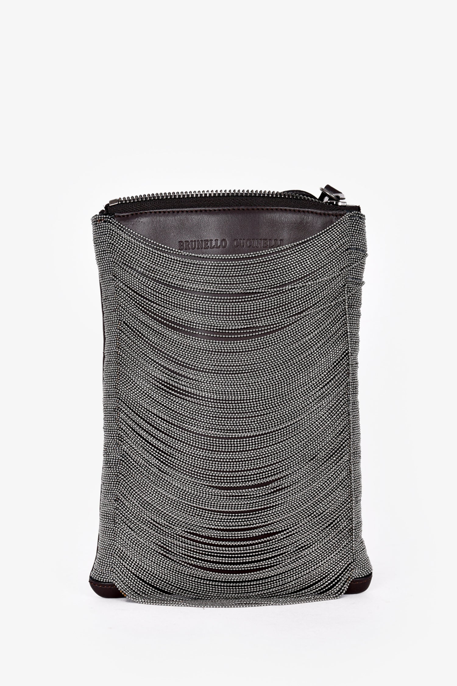 Refresh availabilityBrunello Cucinelli Crossbody Beaded Bag. Top zipper closure. Brown silk interior. Singular interior compartment. Silver-toned hardware. Tonal stitching.