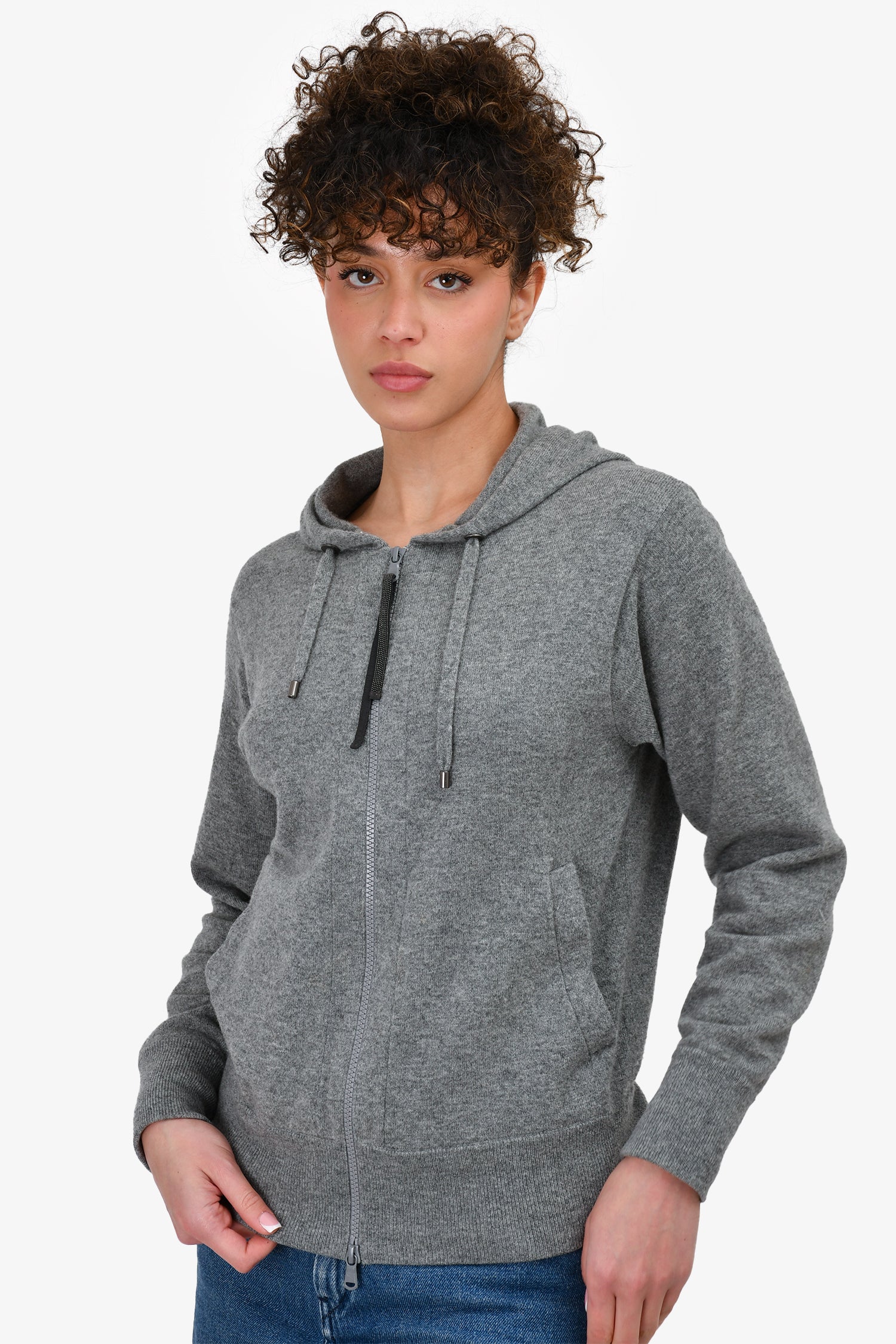 Brunello Cucinelli Grey Cashmere Zip-Up Hoodie Size S