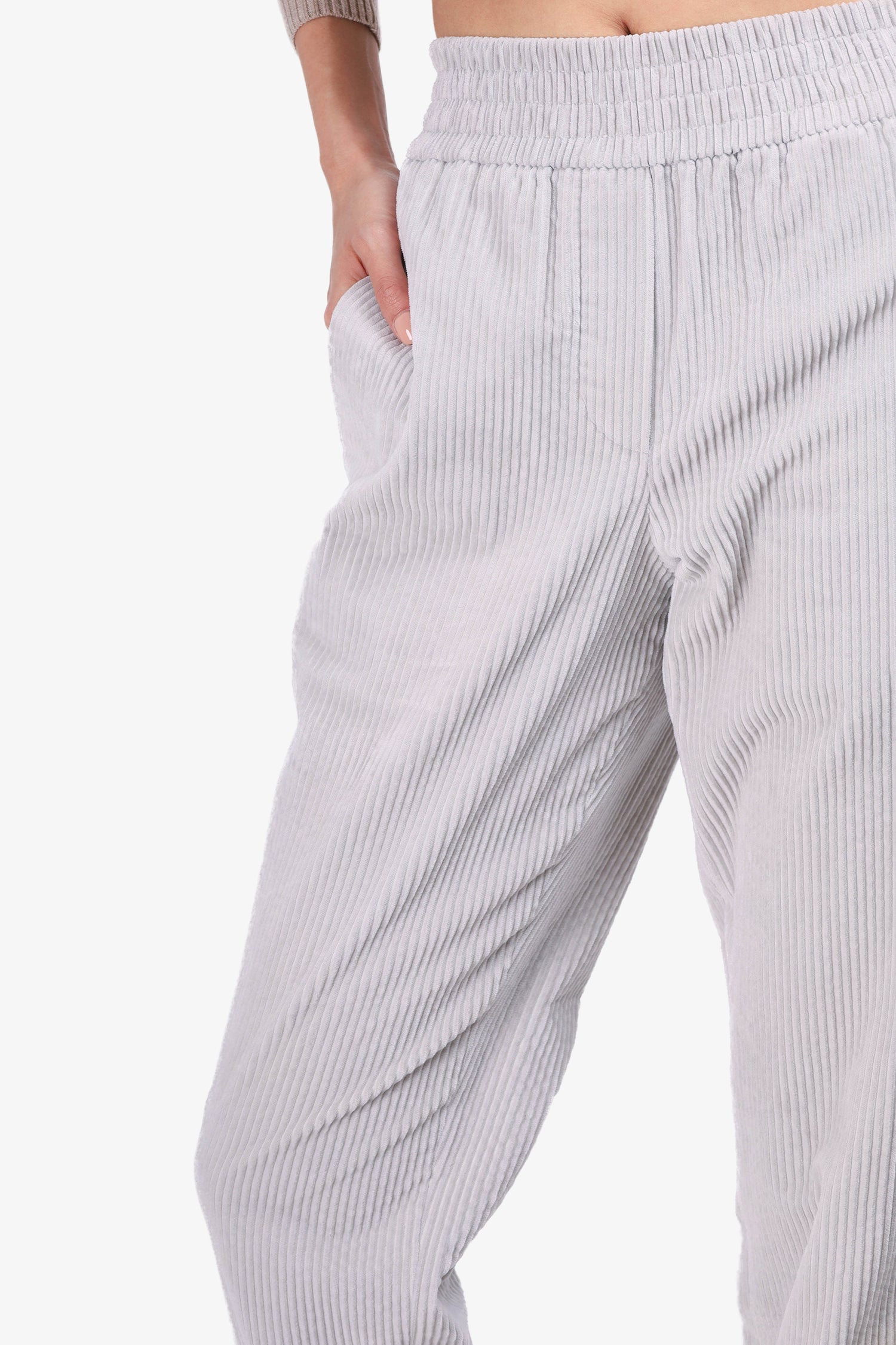 Refresh availabilityBrunello Cucinelli Grey Corduroy Track Pants. Pull-on. Elastic waistline and pant leg cuffs. Front slip pockets and rear non-opening pockets. Unlined. Tonal stitching.