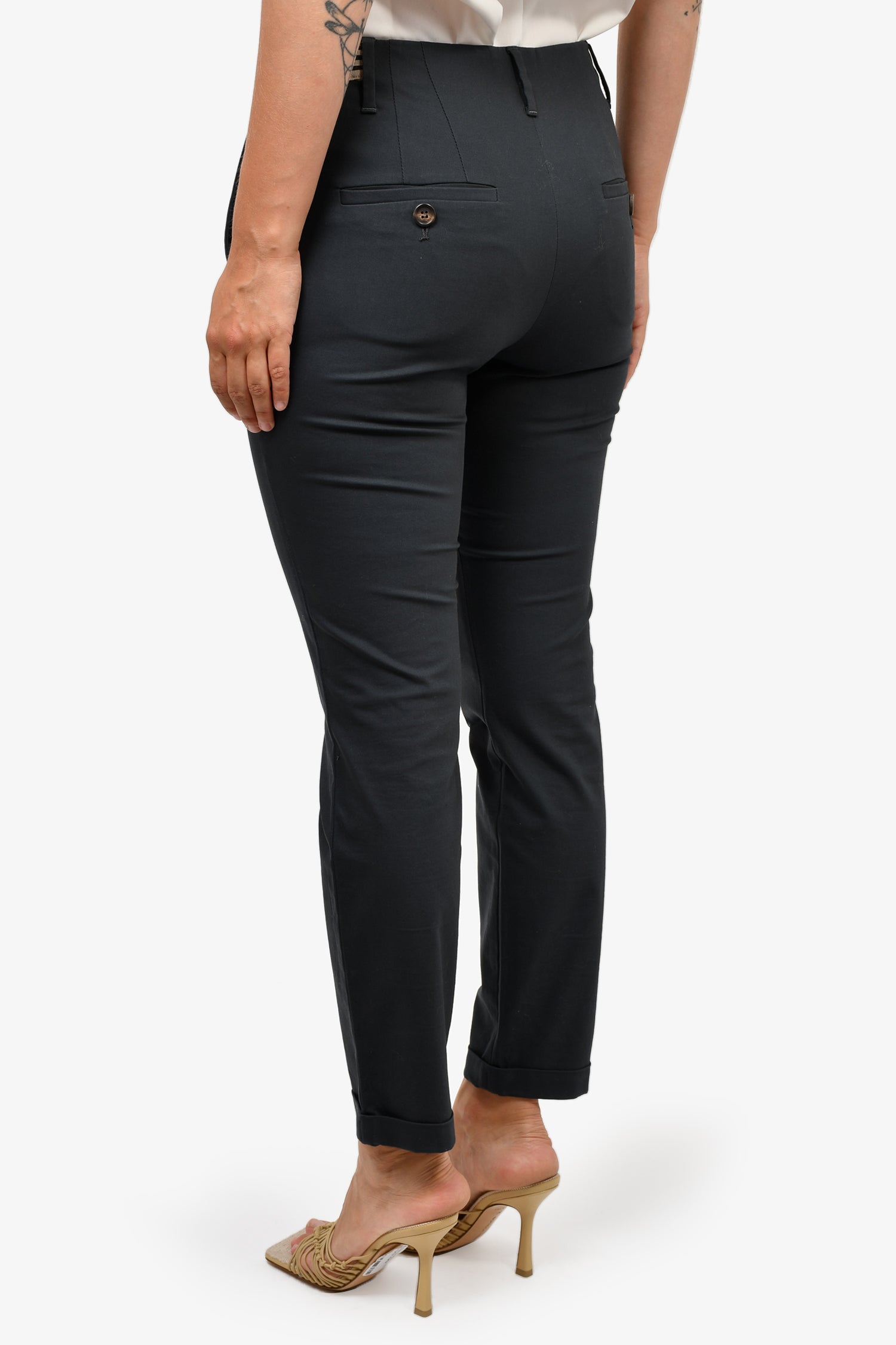 Brunello Cucinelli Grey Cotton Trousers With Striped Waistband Size 6