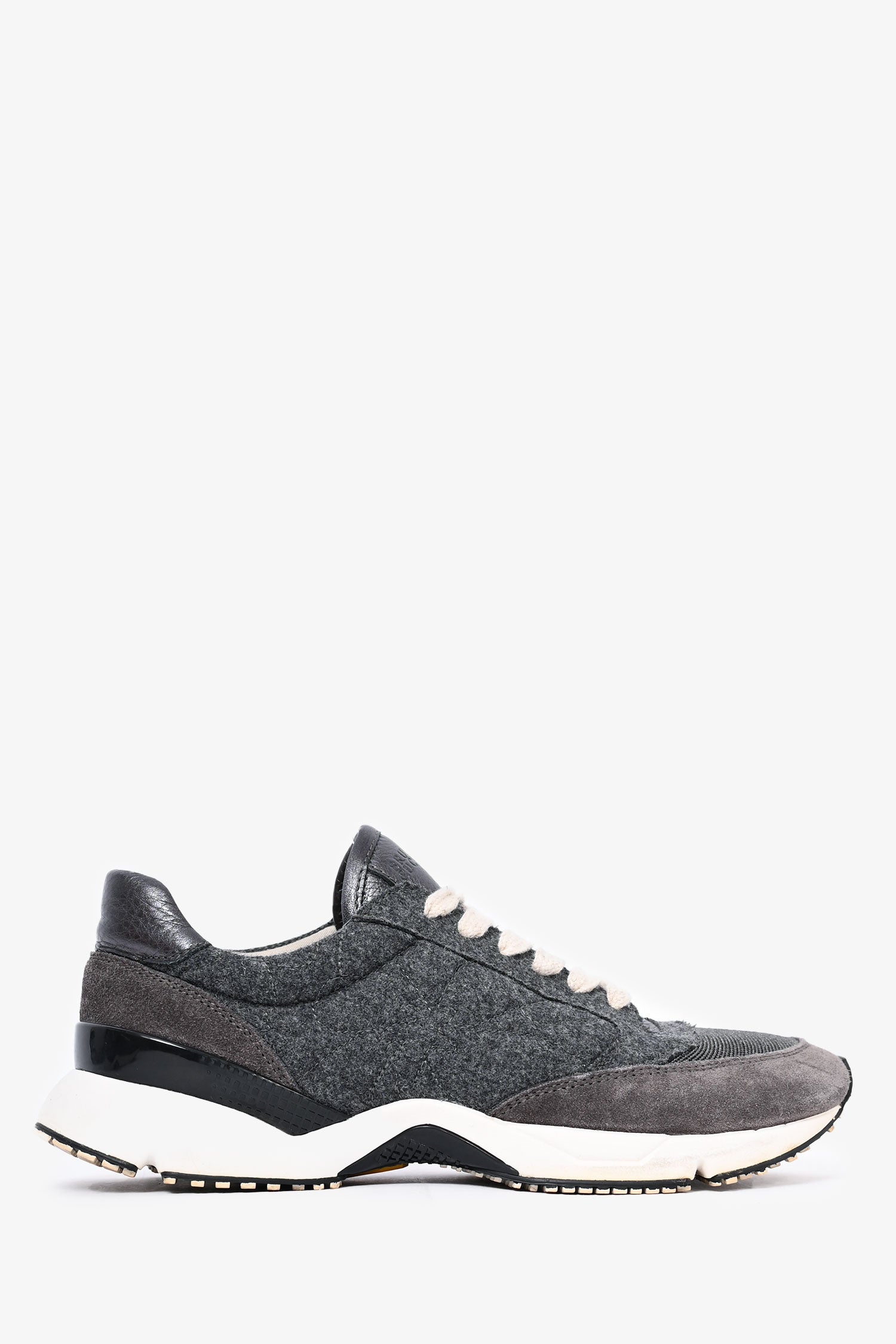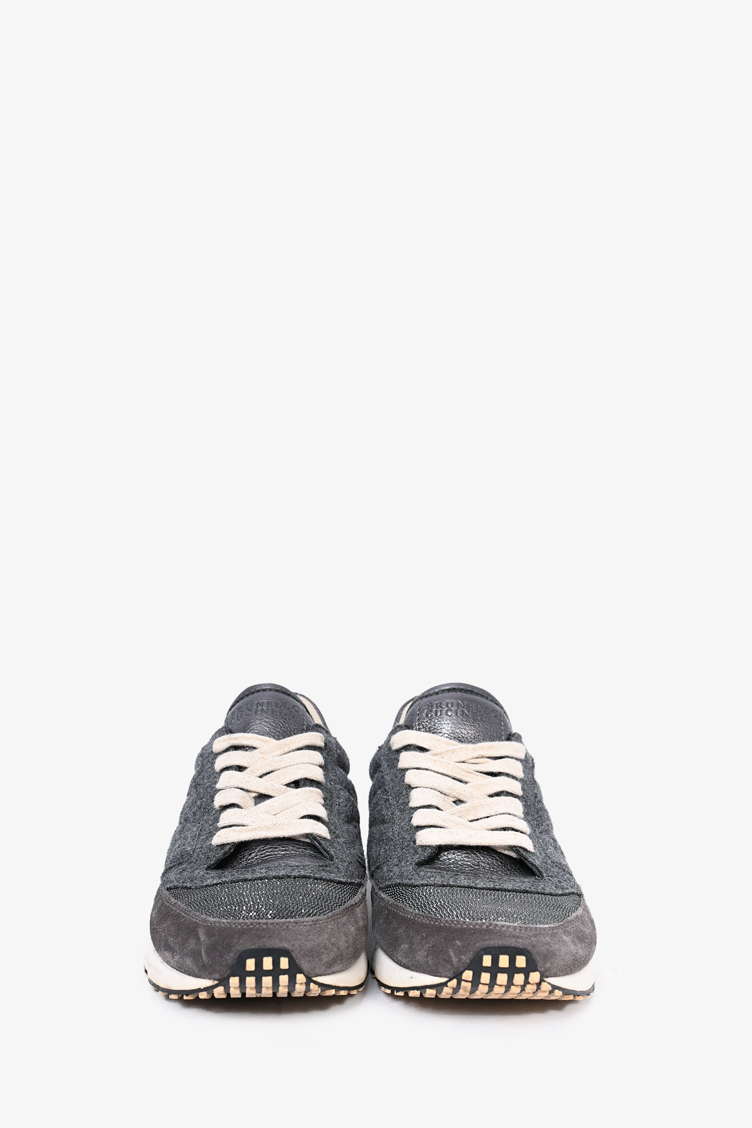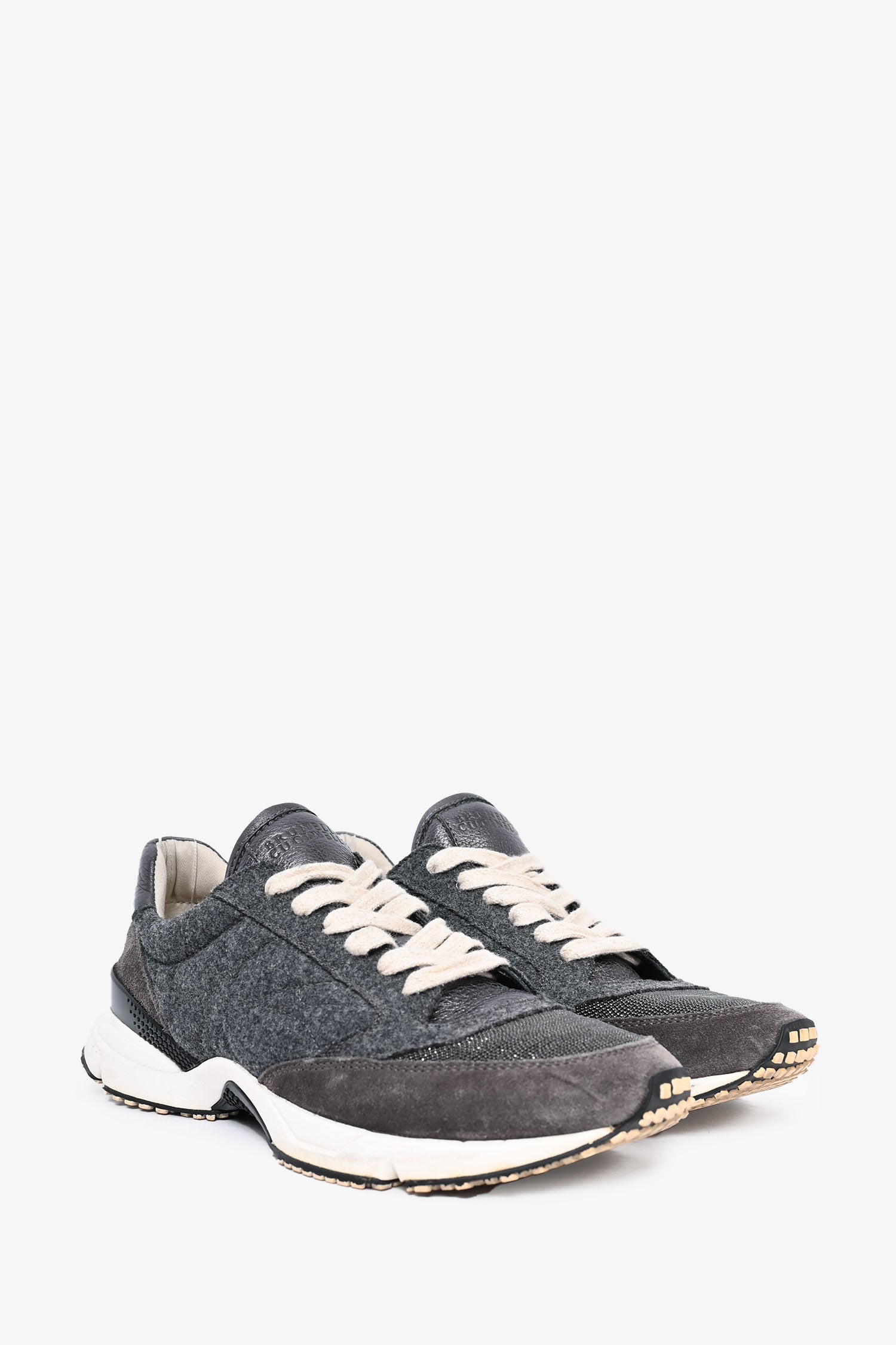 Refresh availabilityBrunello Cucinelli Grey Felted Wool/Beaded Sneakers. Lace-up closure. Tonal stitching.