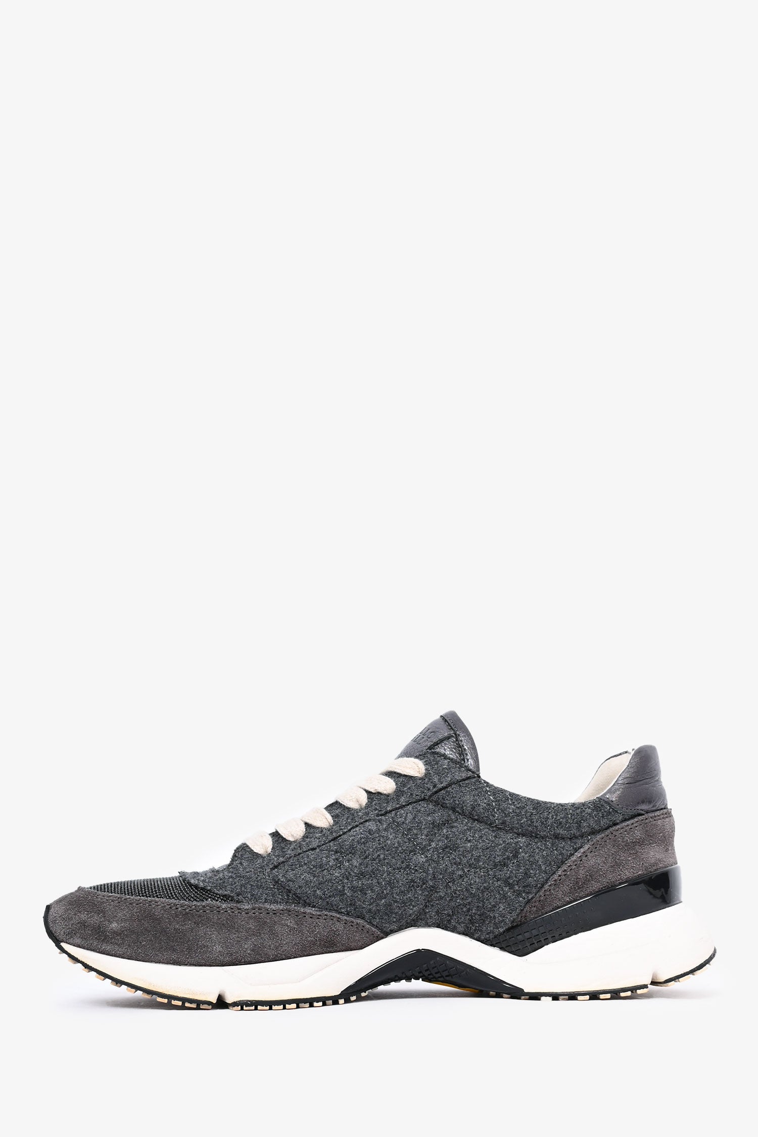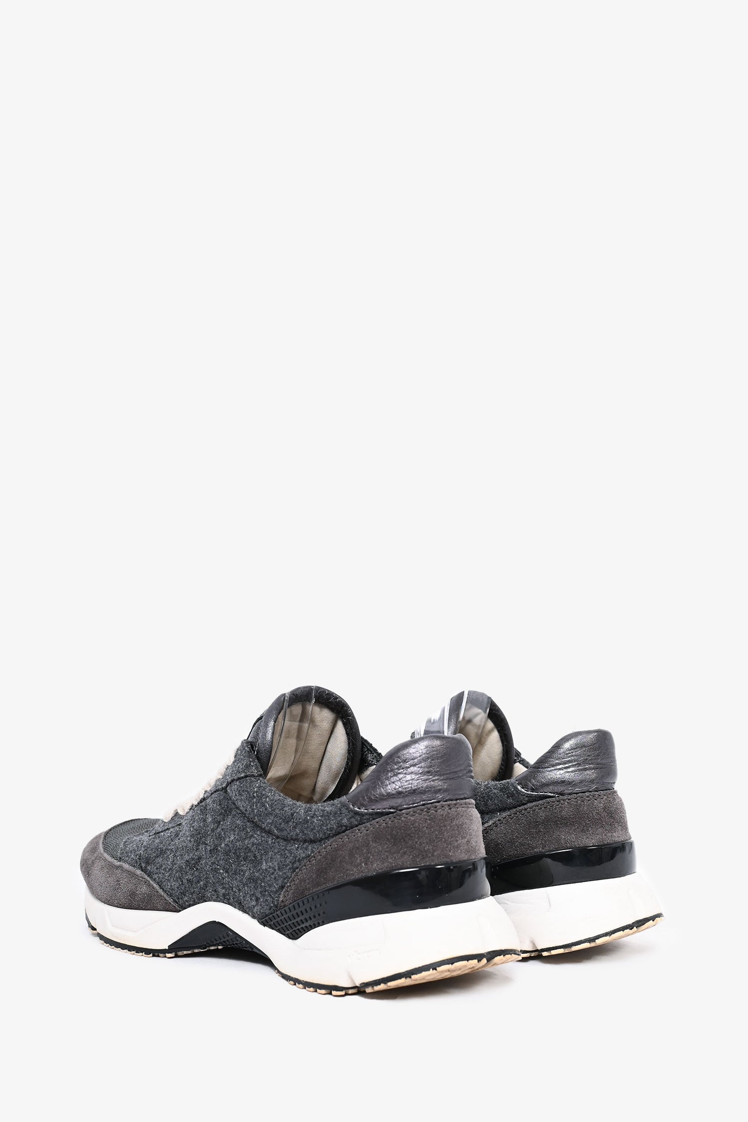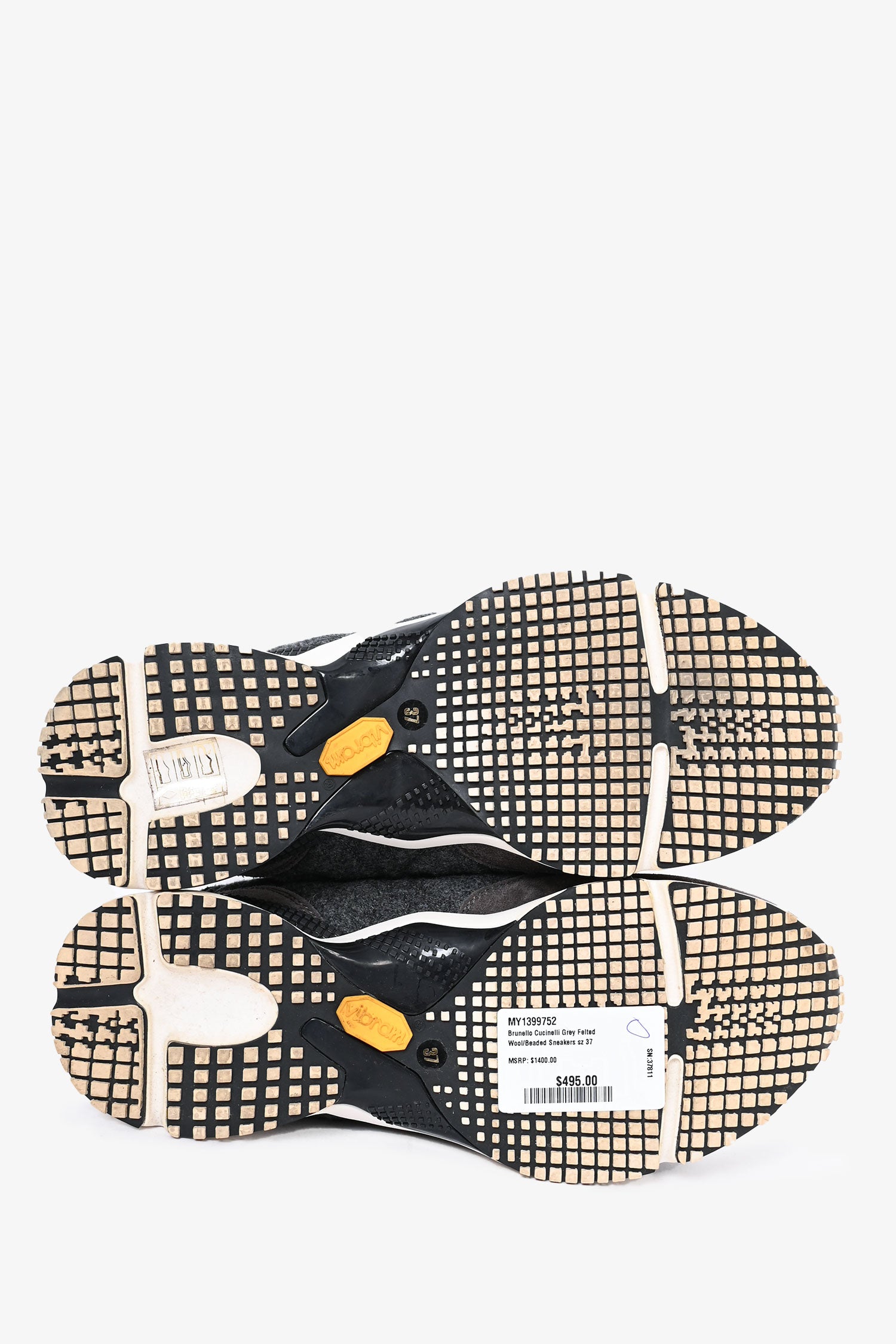 Brunello Cucinelli Grey Felted Wool/Beaded Sneakers Size 37
