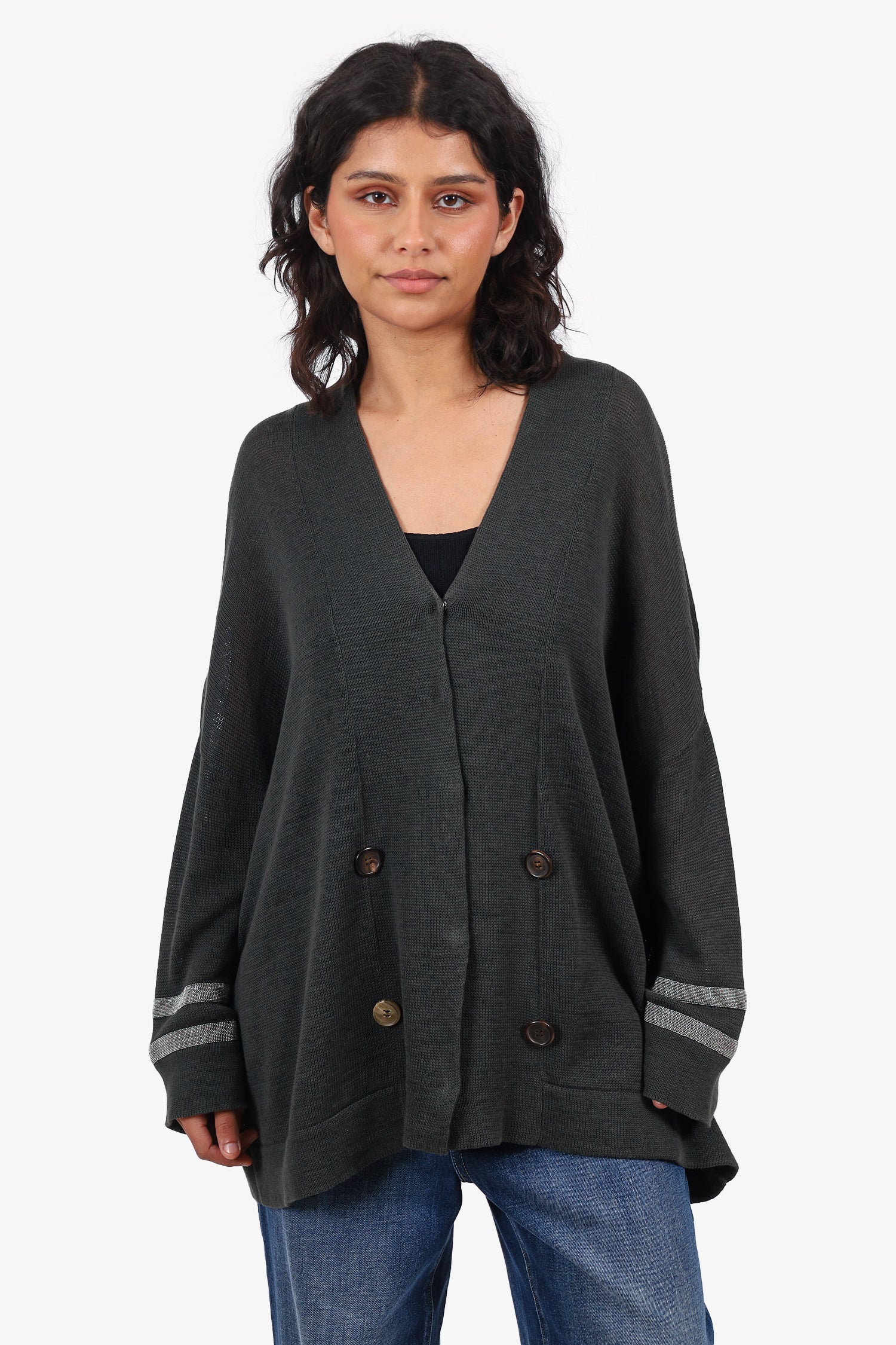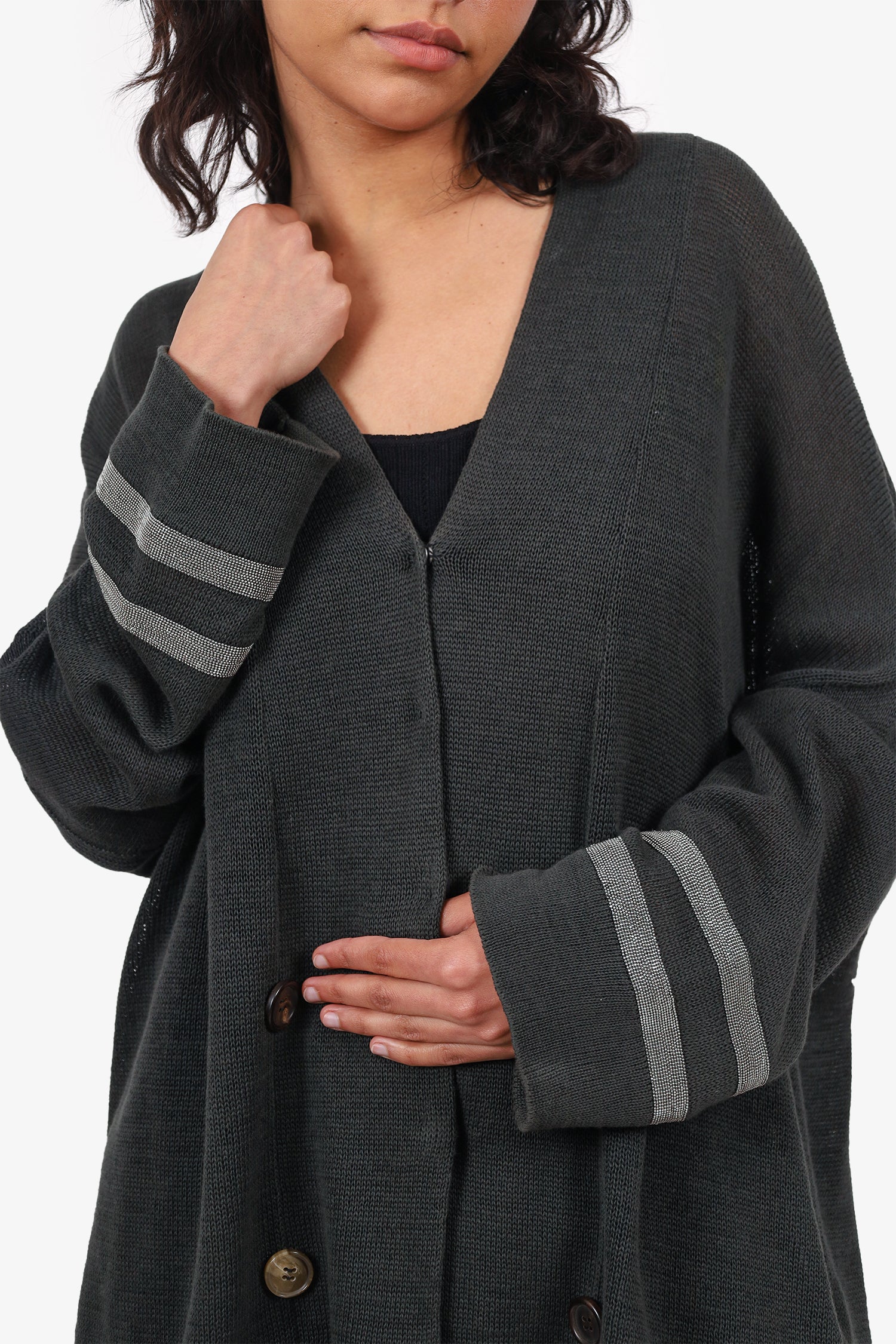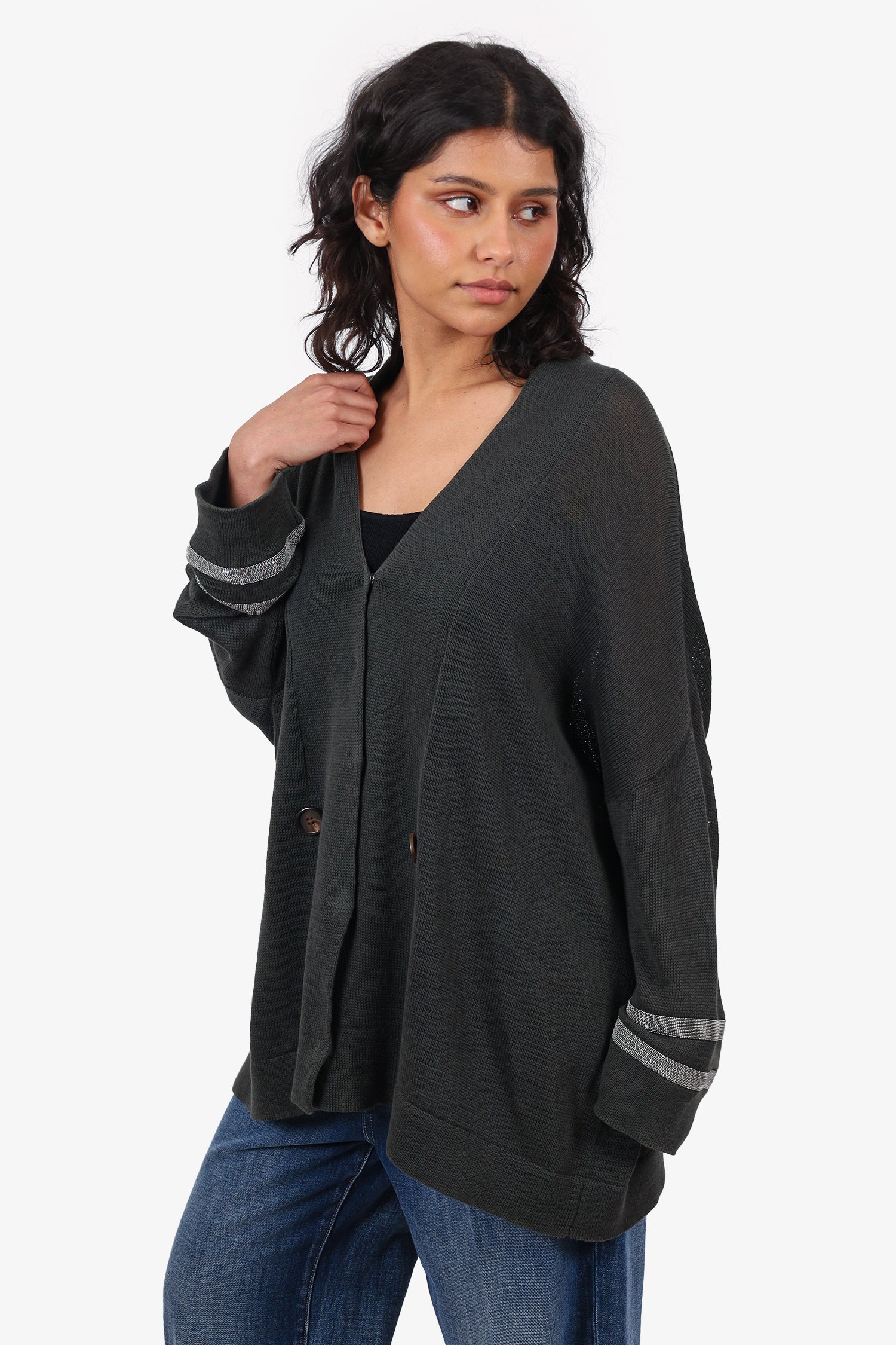 Brunello Cucinelli Grey Knitted Beaded Detail Cardigan Size L