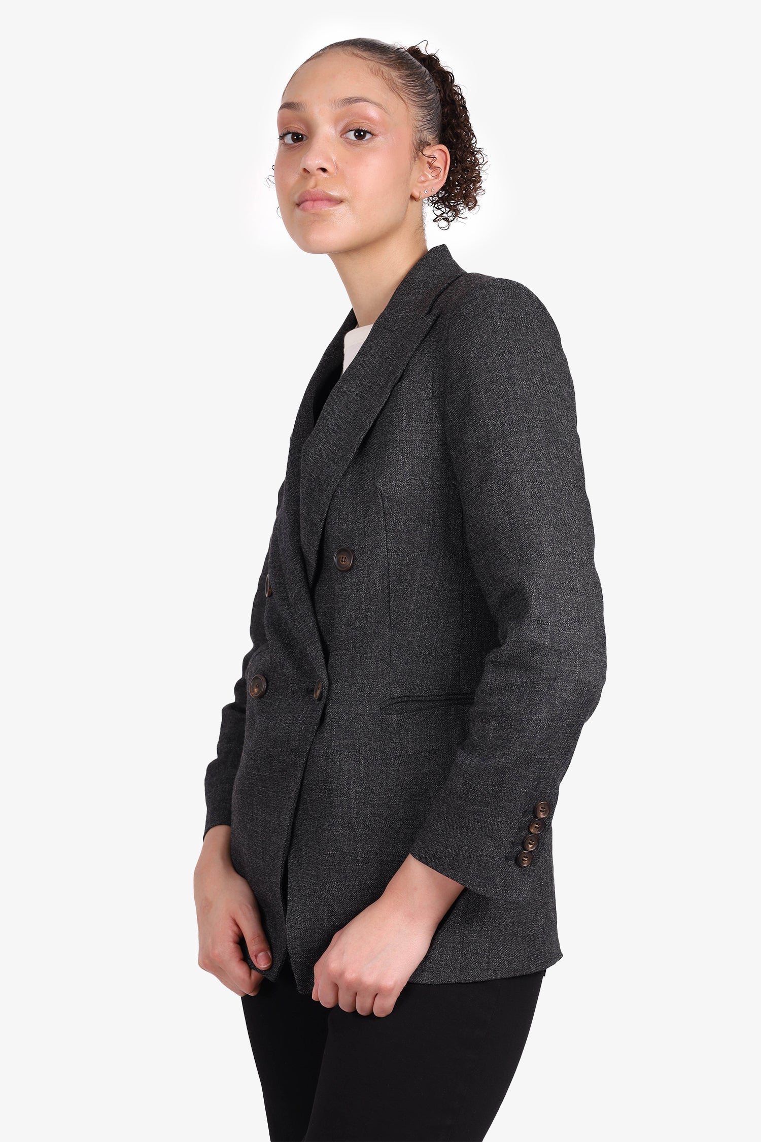 Brunello Cucinelli Grey Linen Double Breasted Blazer Size 36