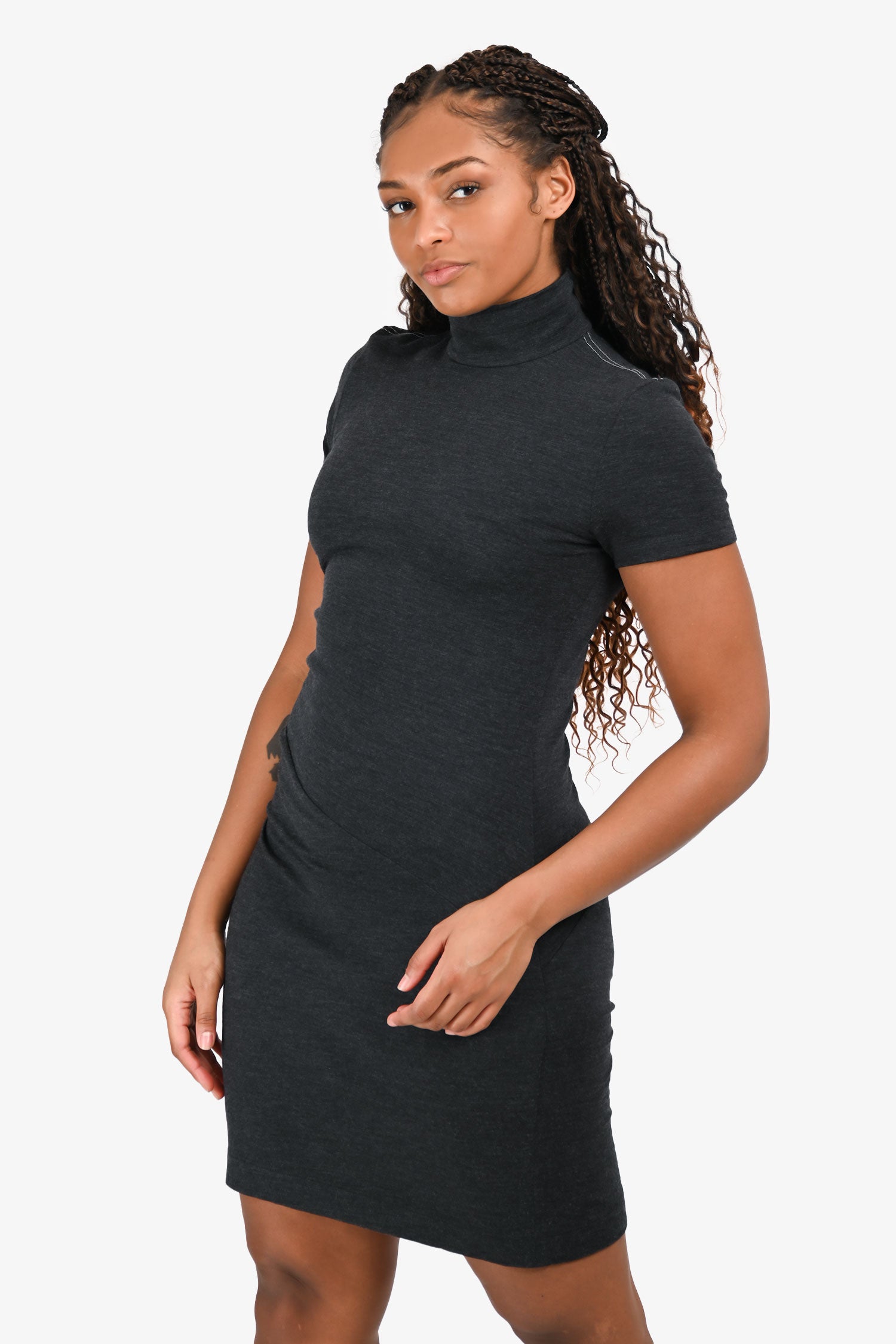 Refresh availabilityBrunello Cucinelli Grey Monili Beaded Detail Mock Neck Midi Dress. Pull-on. Mock neckline. Ruched side seam. Unlined. Tonal stitching.