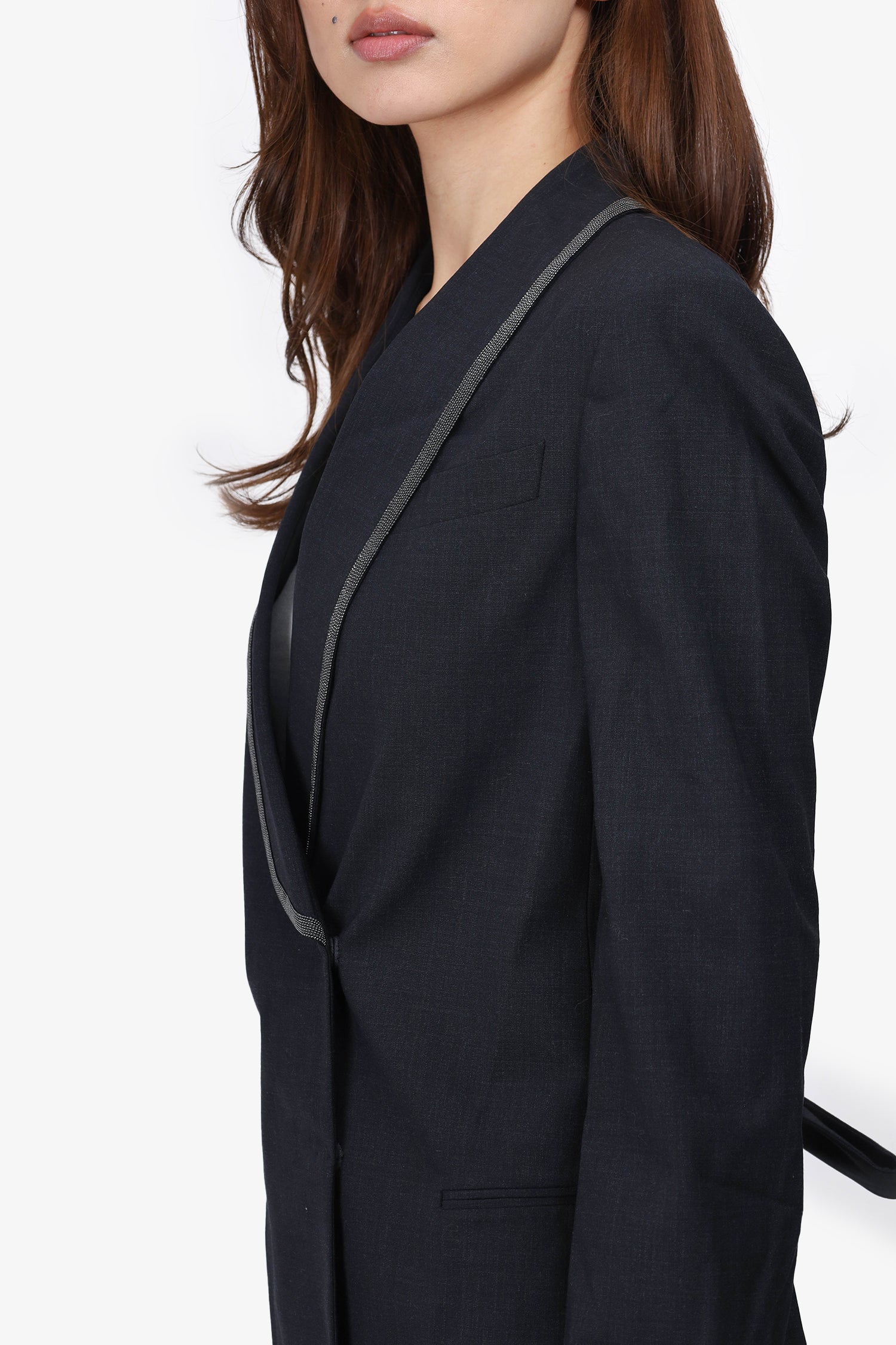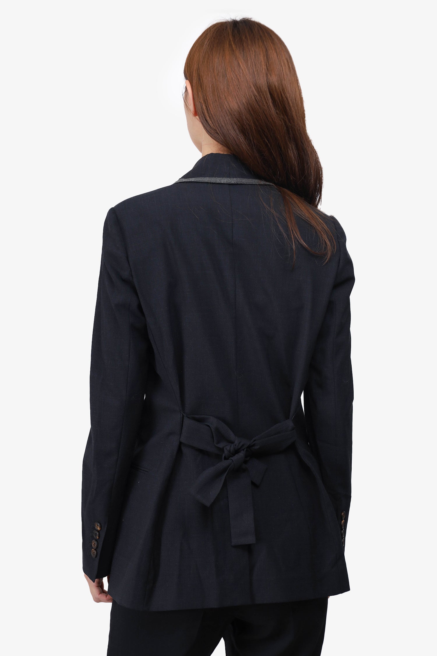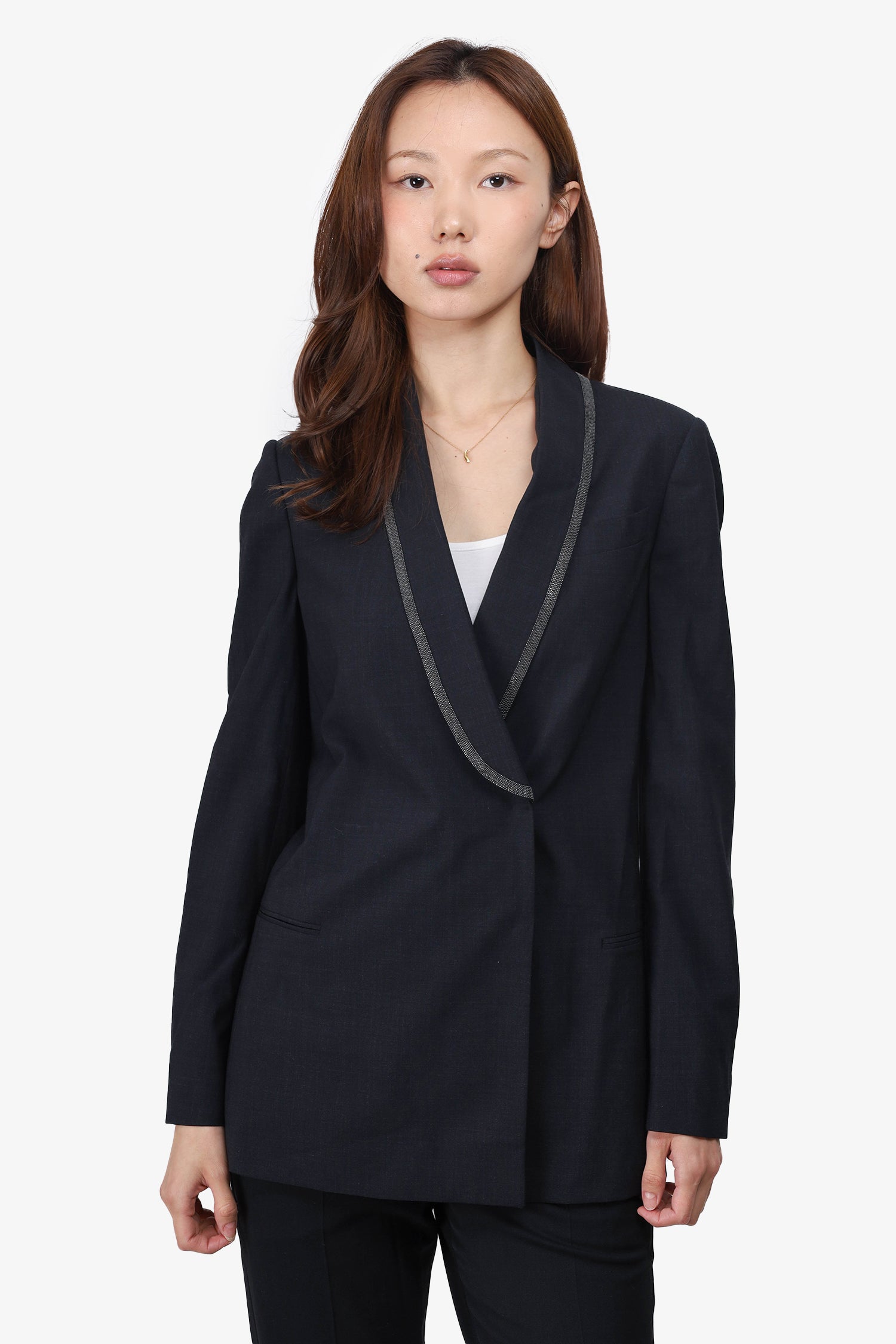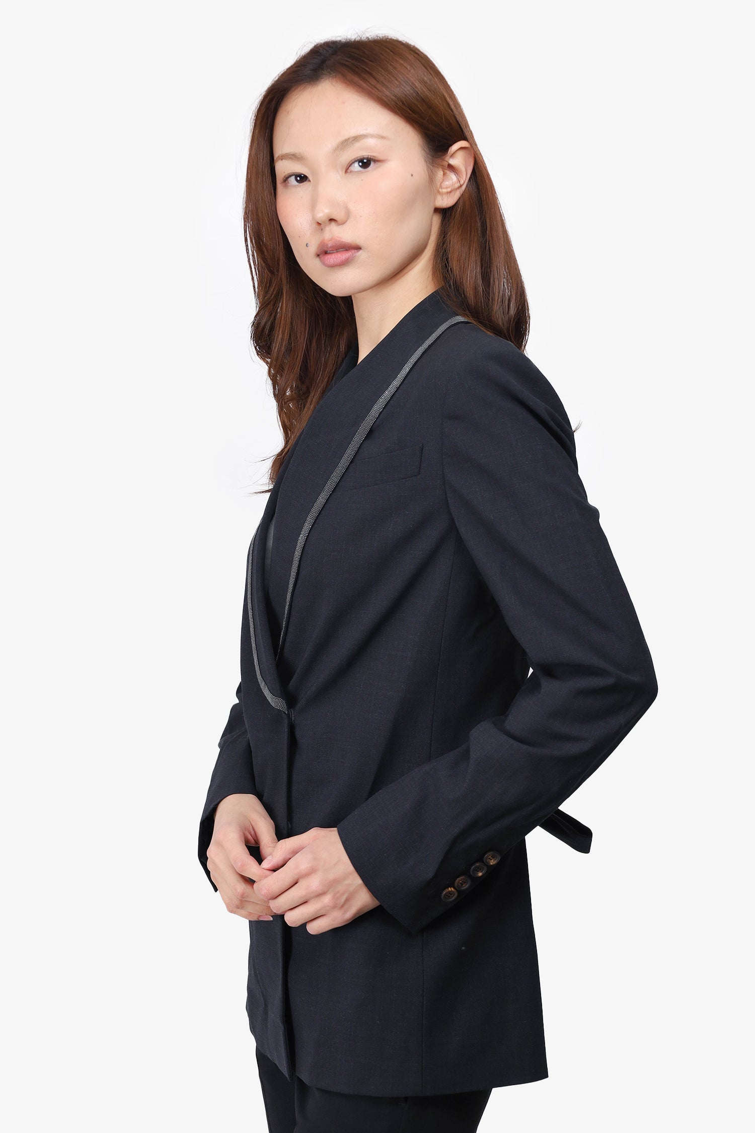 Brunello Cucinelli Grey Wool Beaded Collar Blazer Size 40