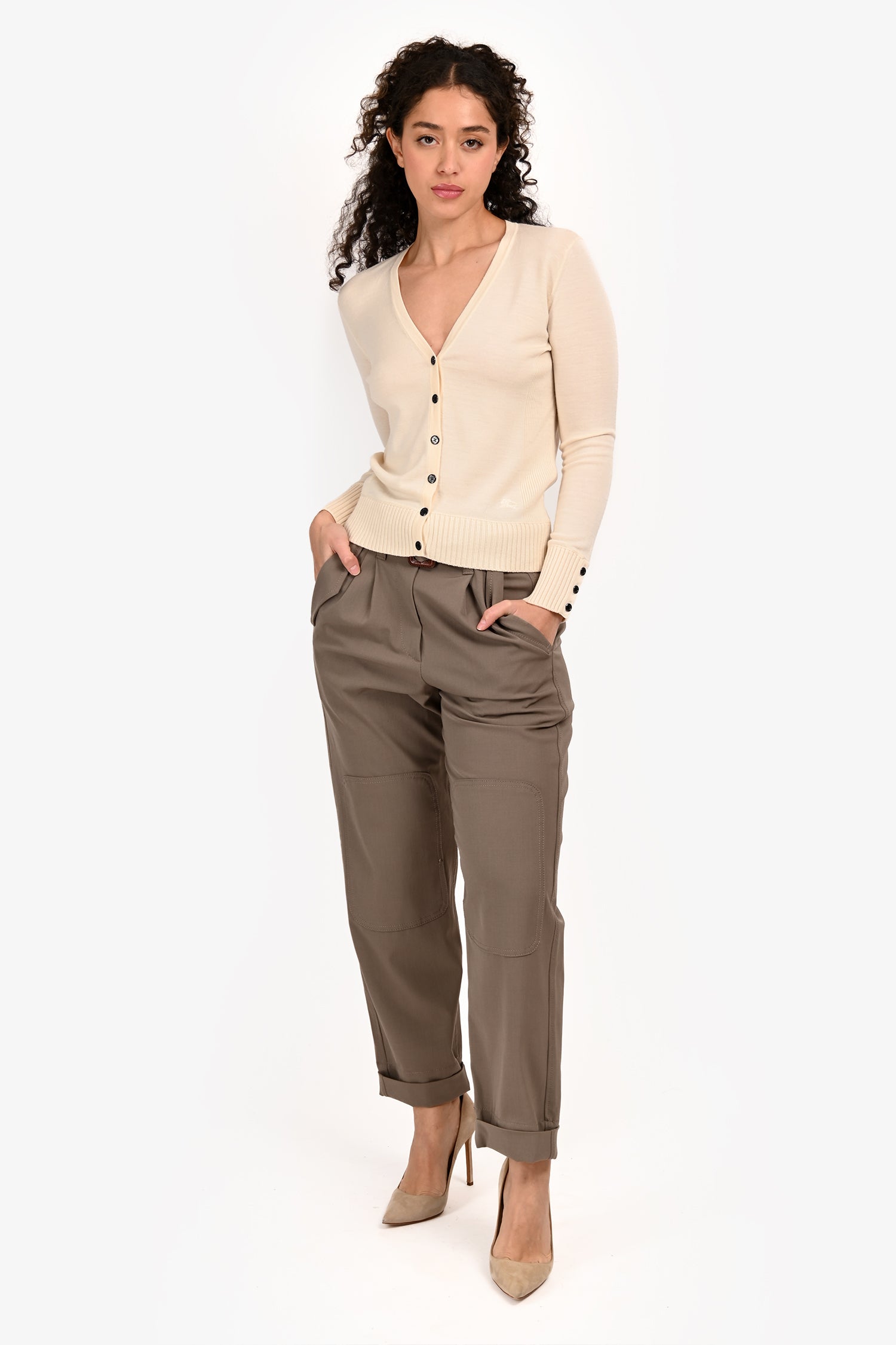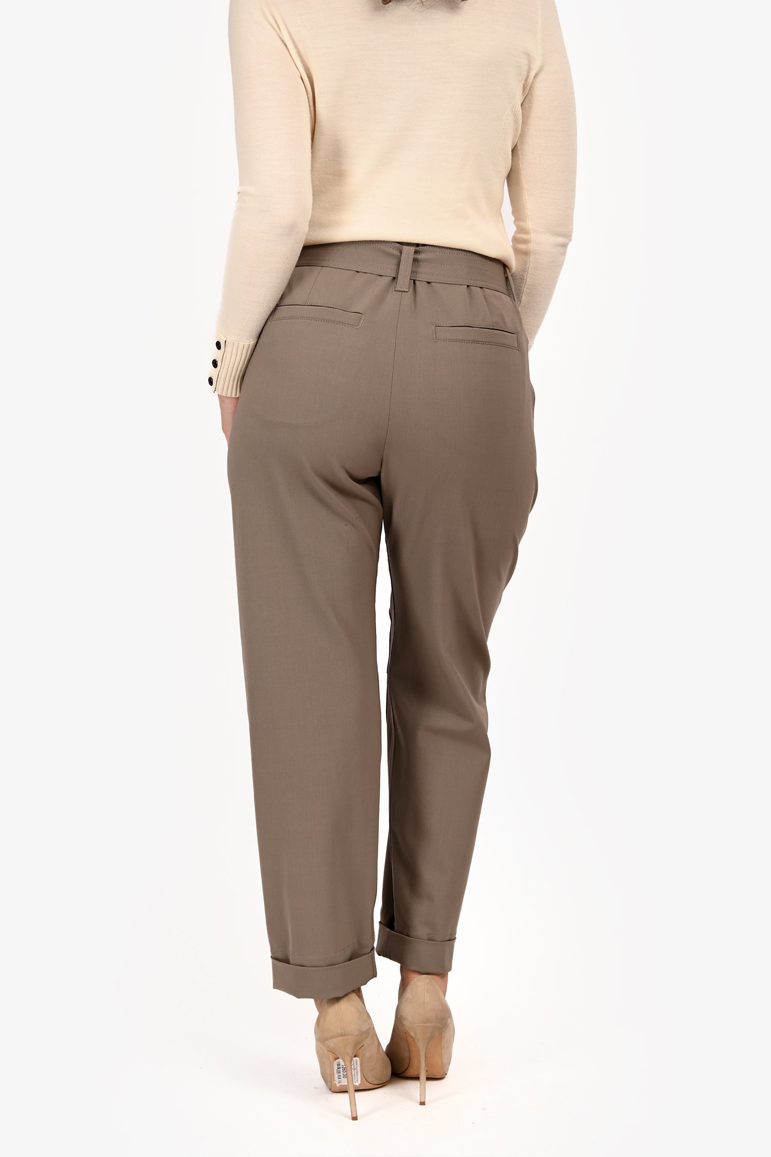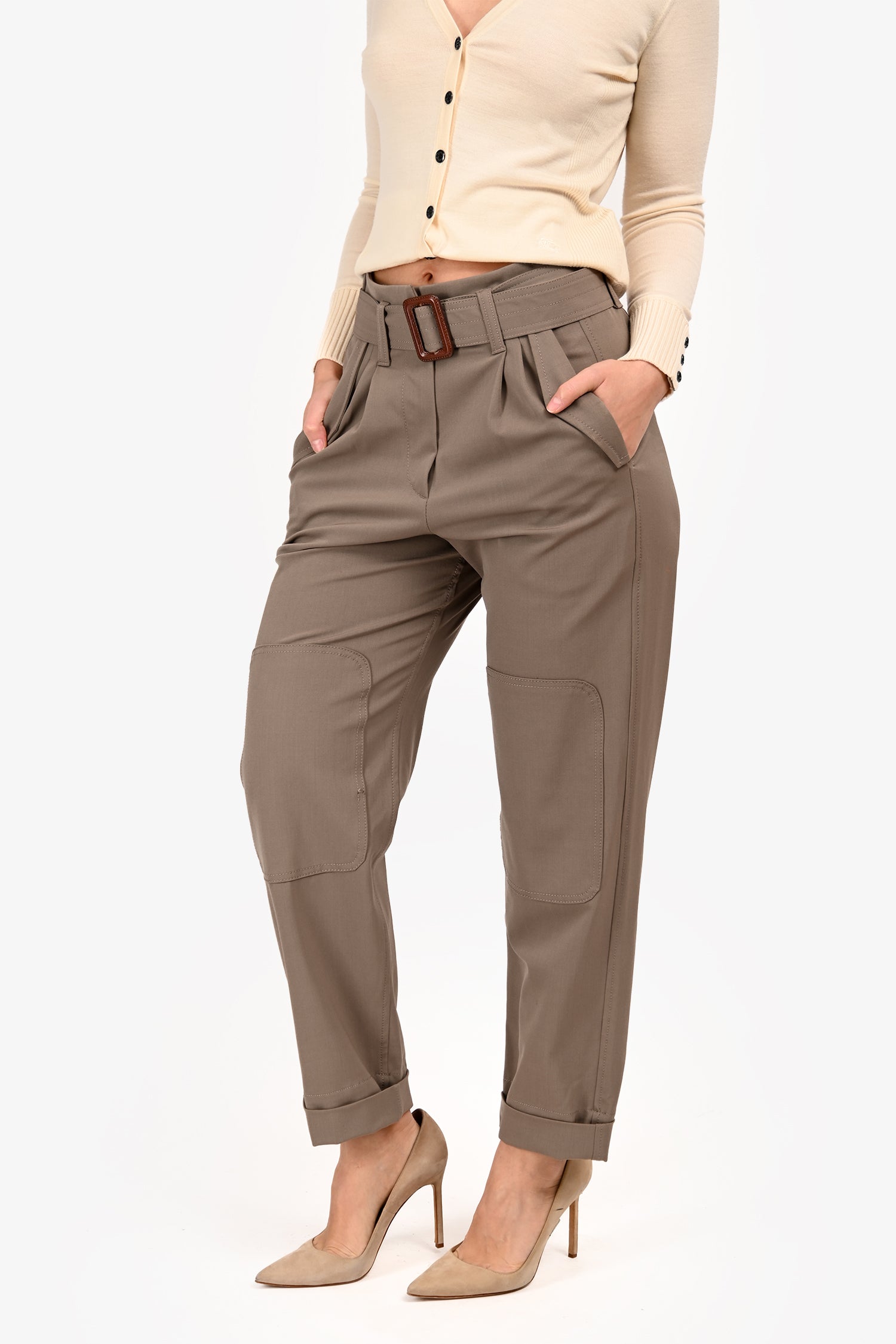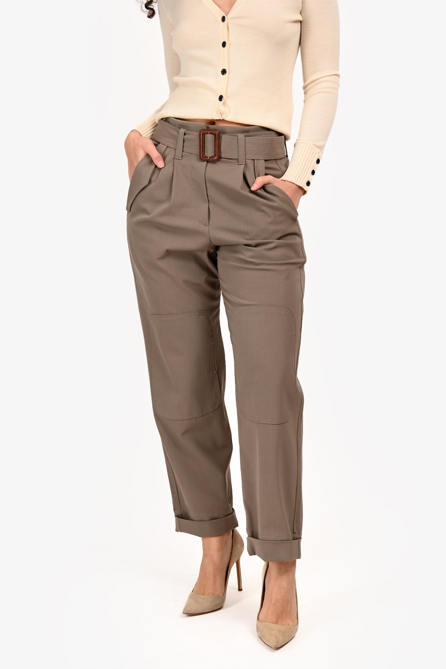 Brunello Cucinelli Khaiki Green Wool Belted Pants Size 2