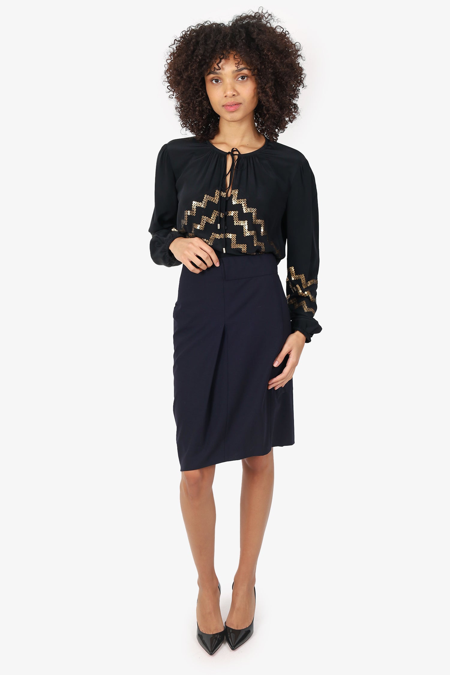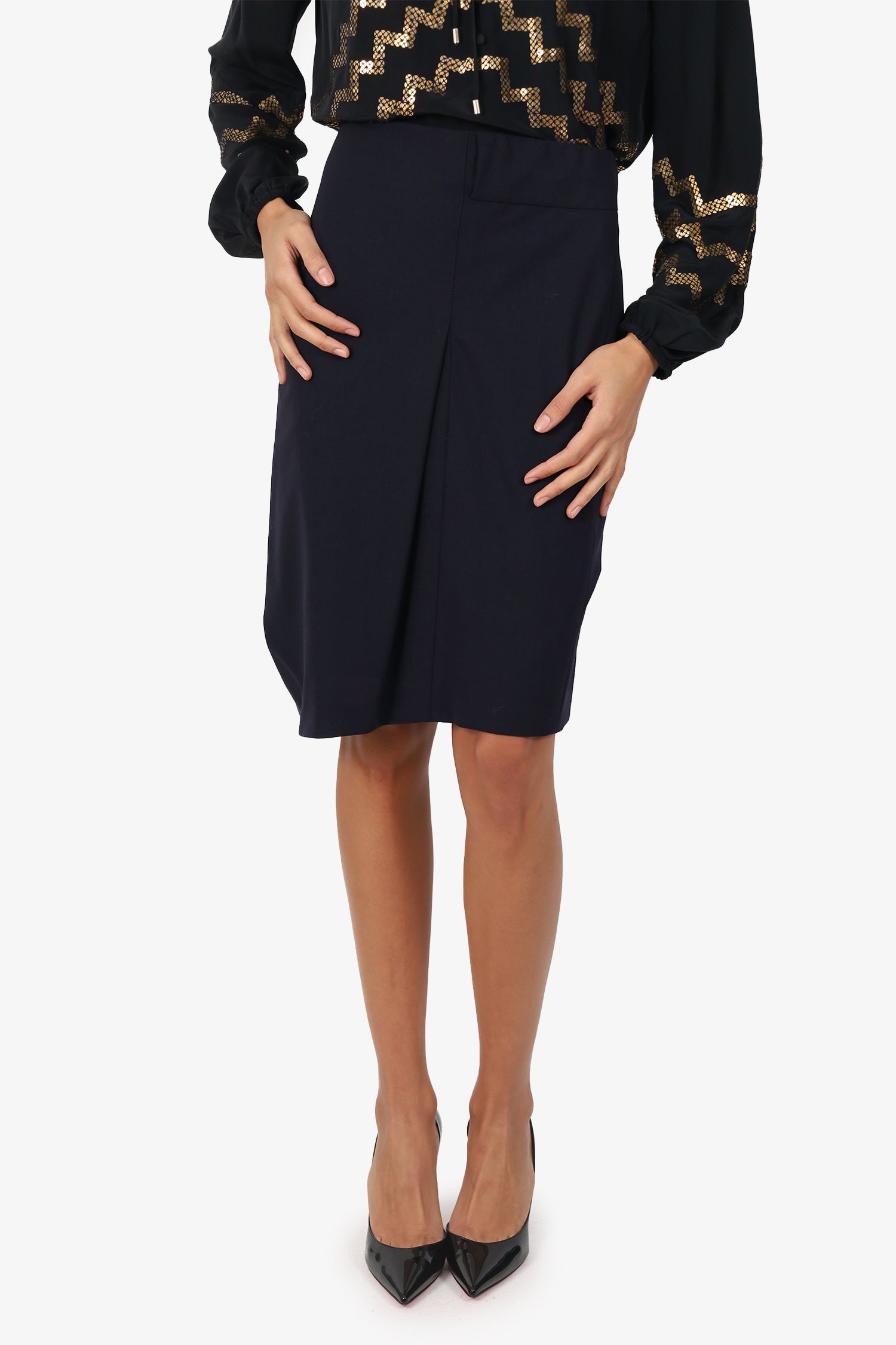 Brunello Cucinelli Navy Wool Draped Midi Skirt Size 10
