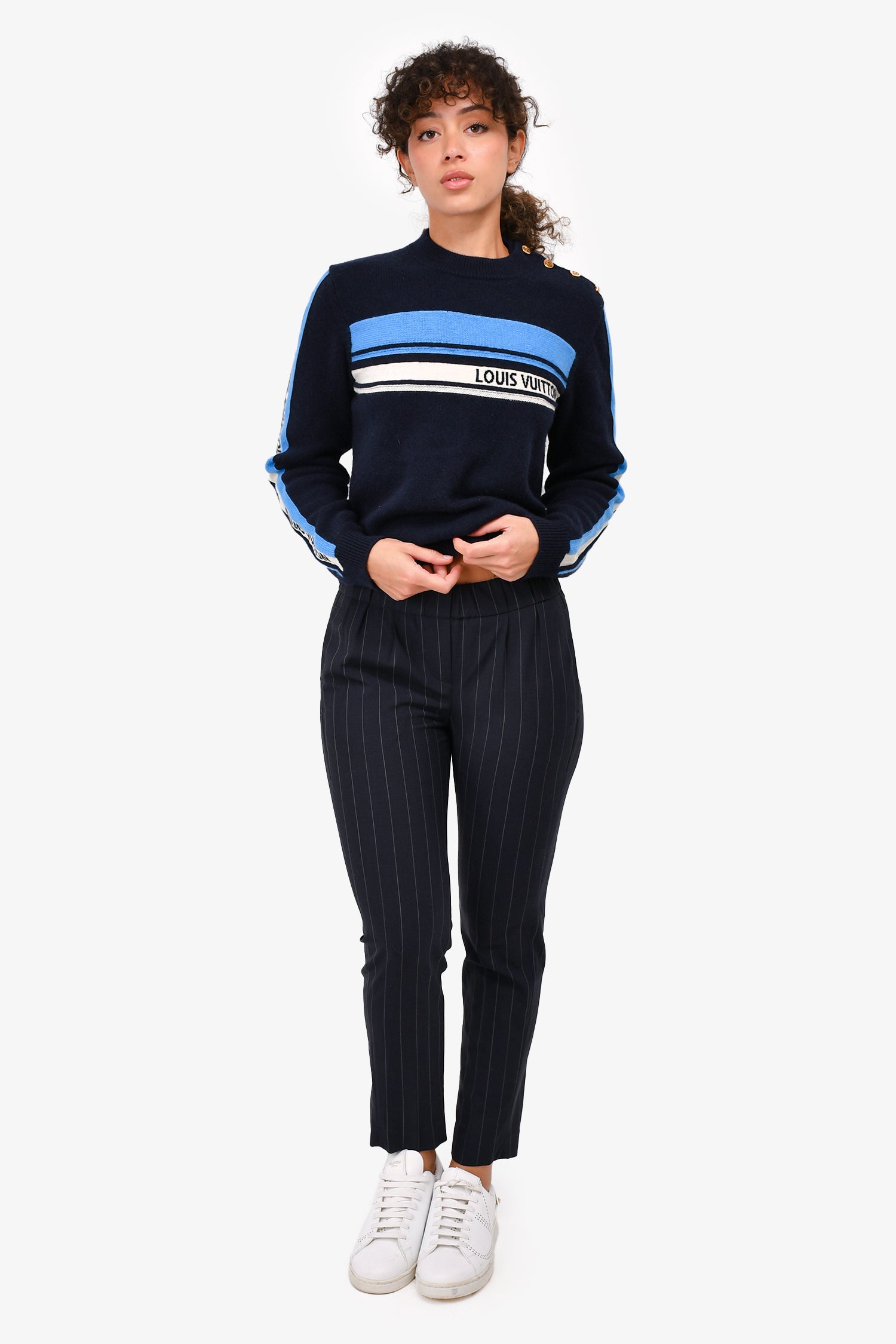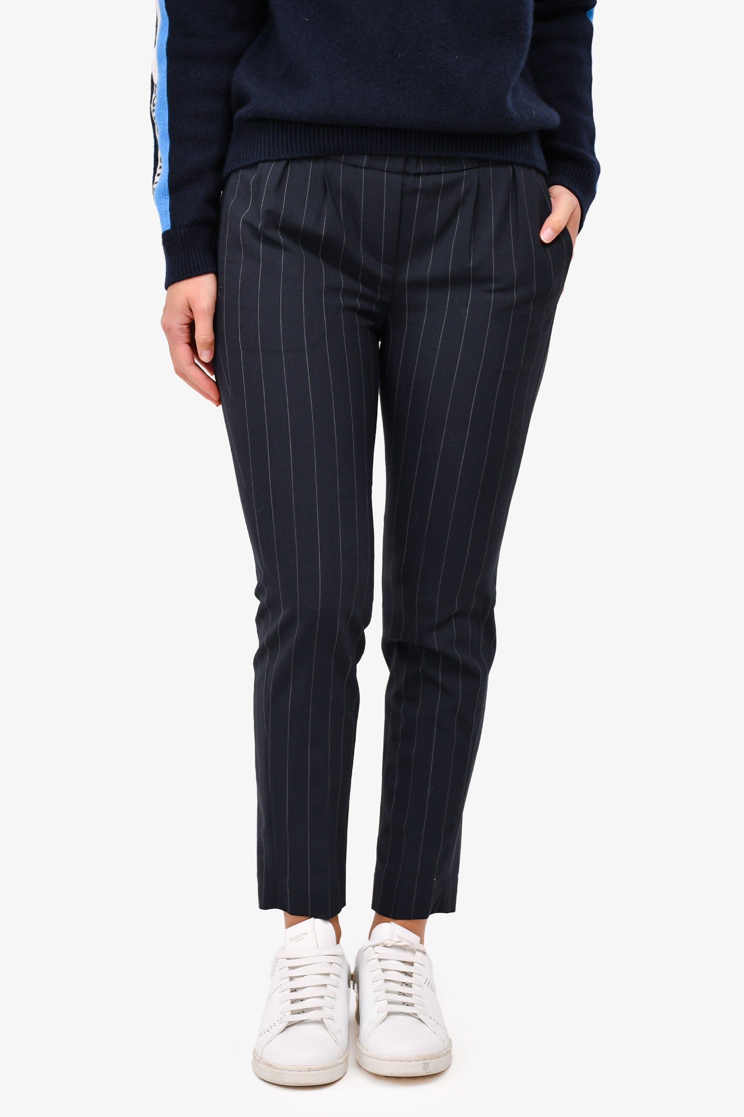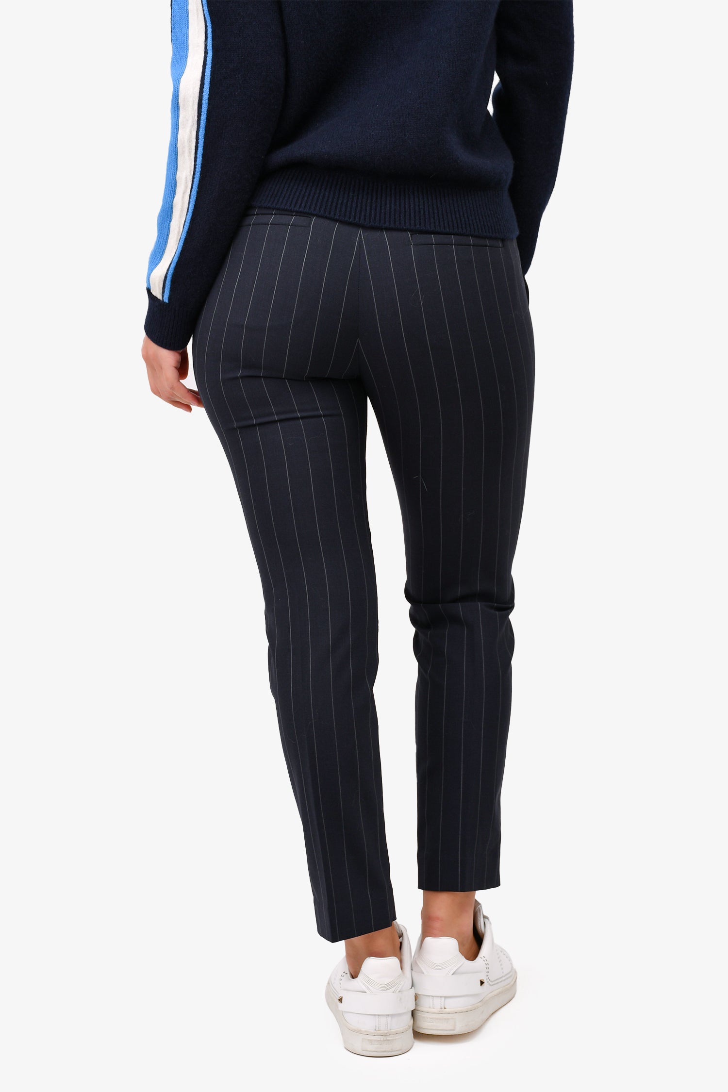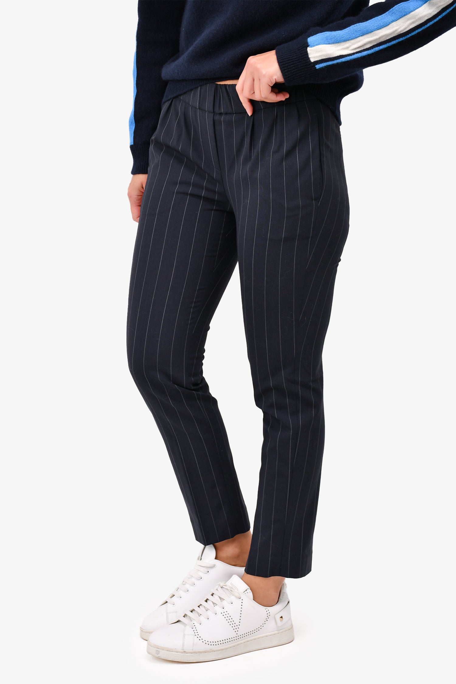Brunello Cucinelli Navy Wool Pinstripe Slim Trousers Size 4