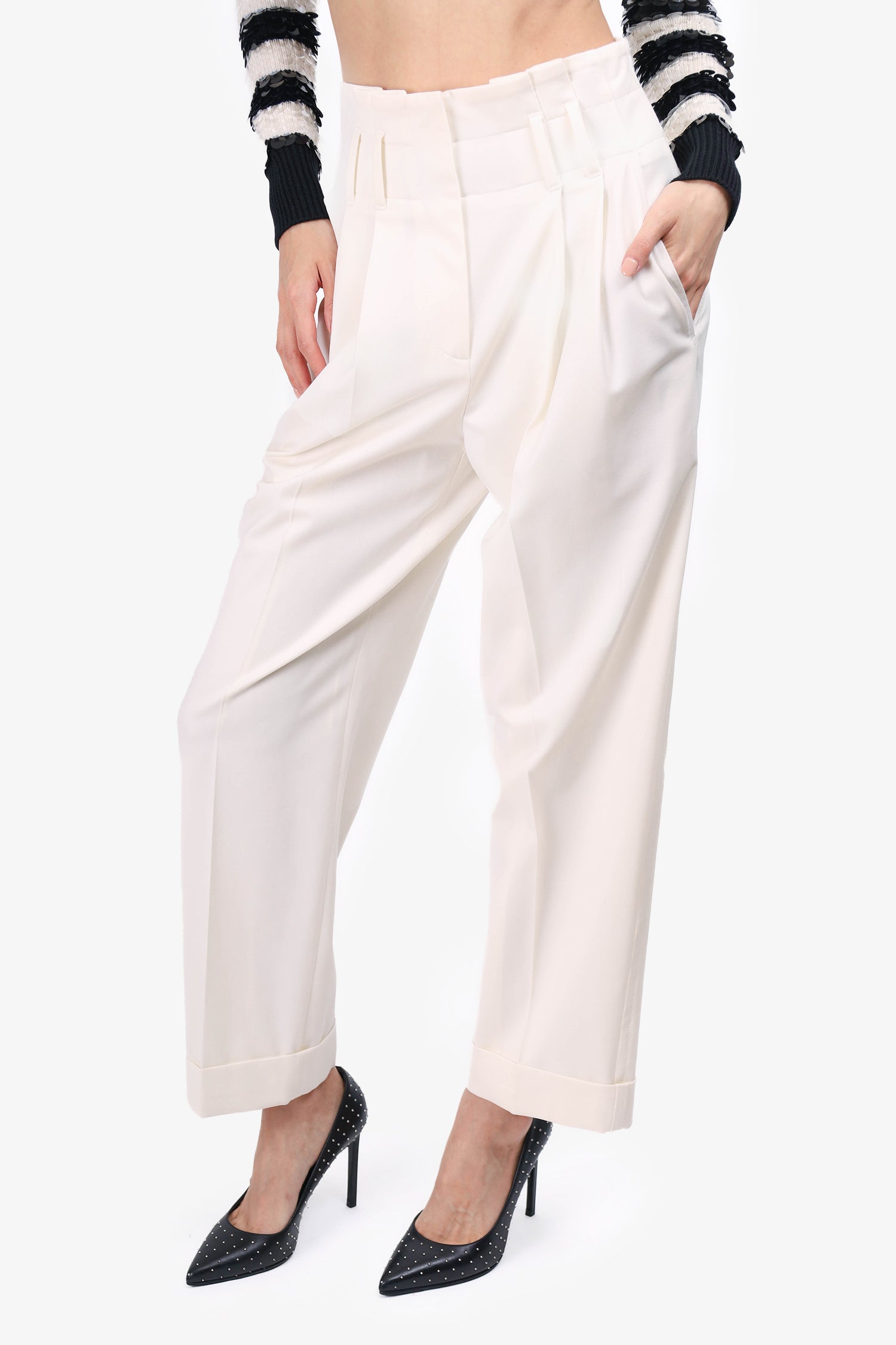 Brunello Cucinelli Off White Wool Trousers Size 2
