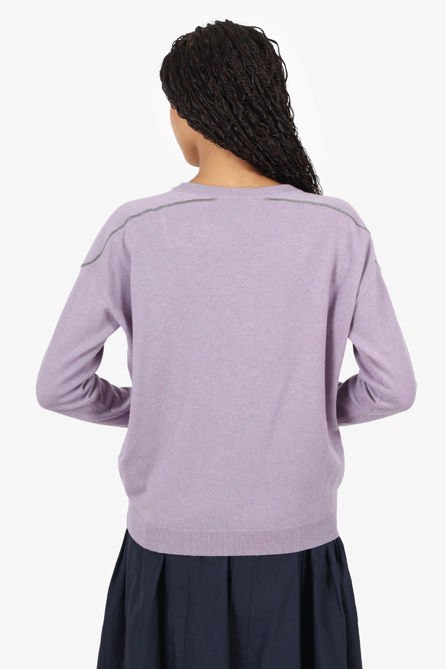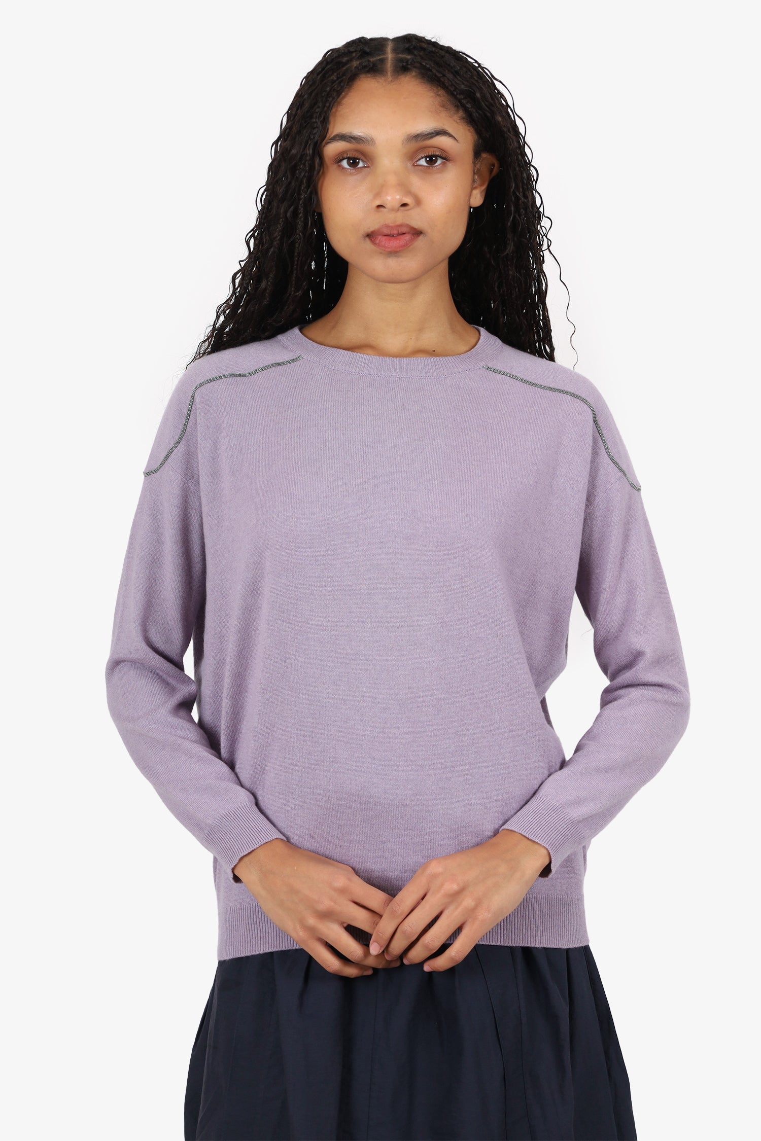 Brunello Cucinelli Purple Cashmere Beaded Sweater Size XS