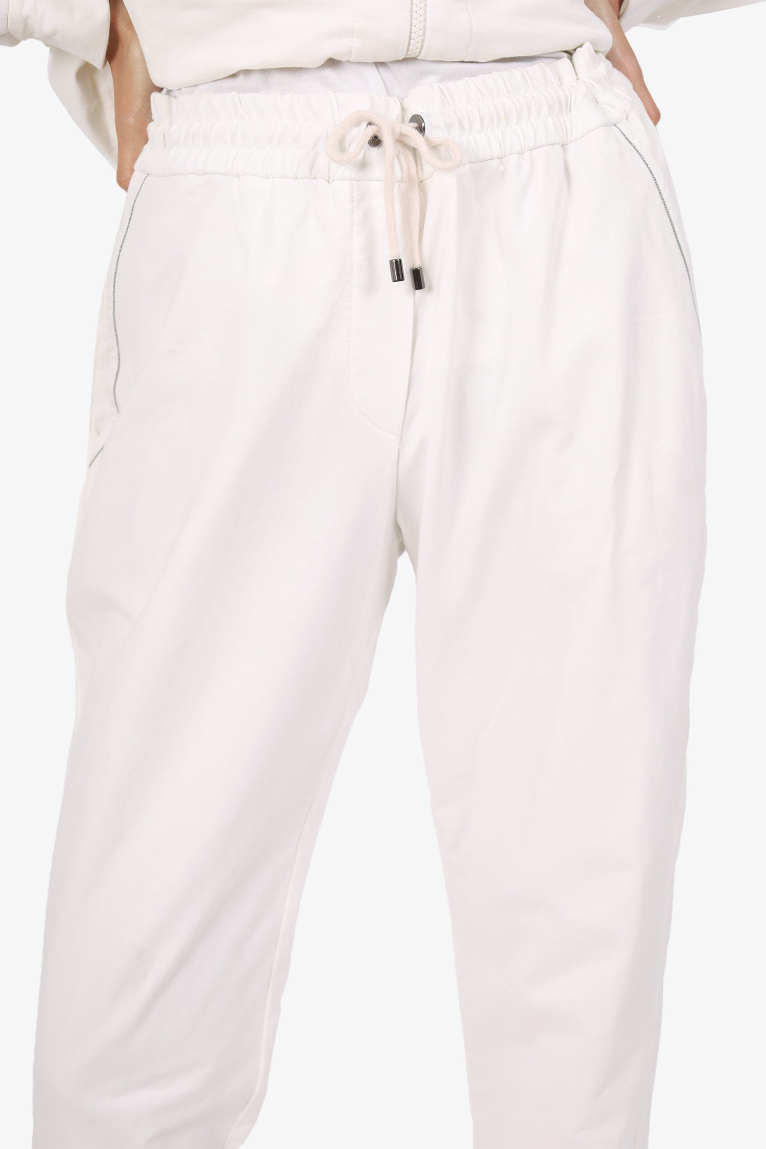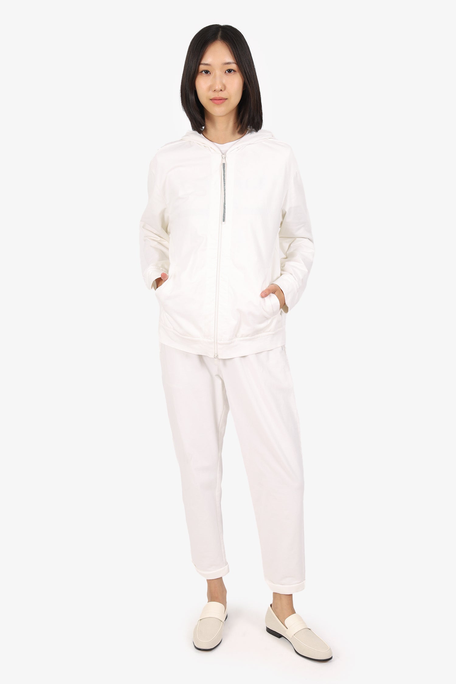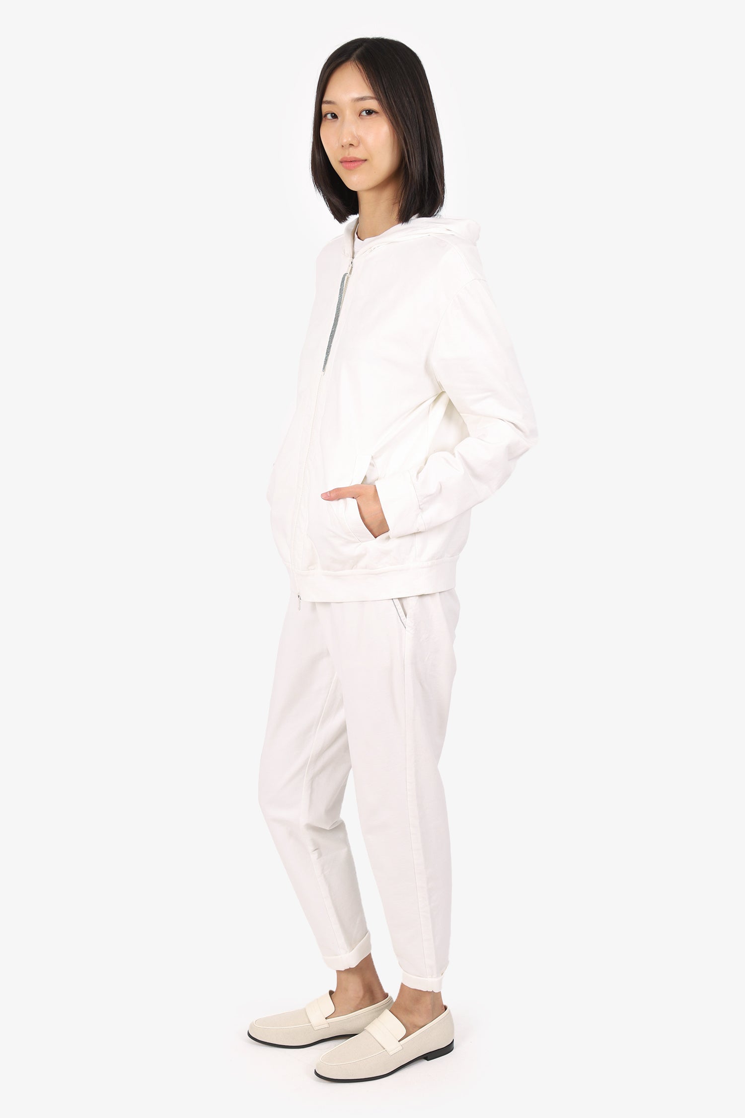 Brunello Cucinelli White Beaded Detail Joggers + Zip Up Hoodie Size XL