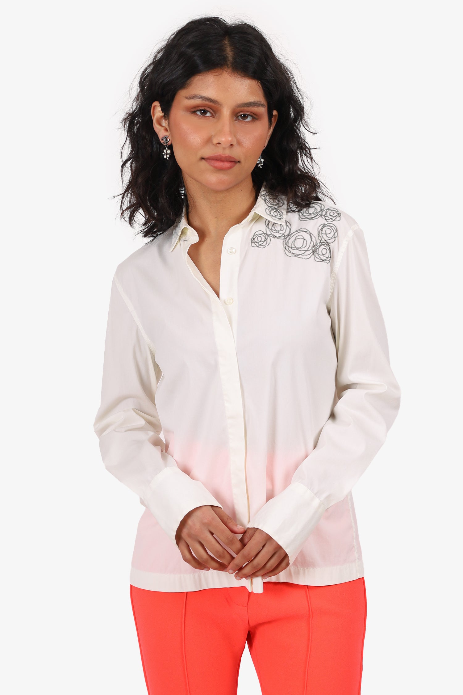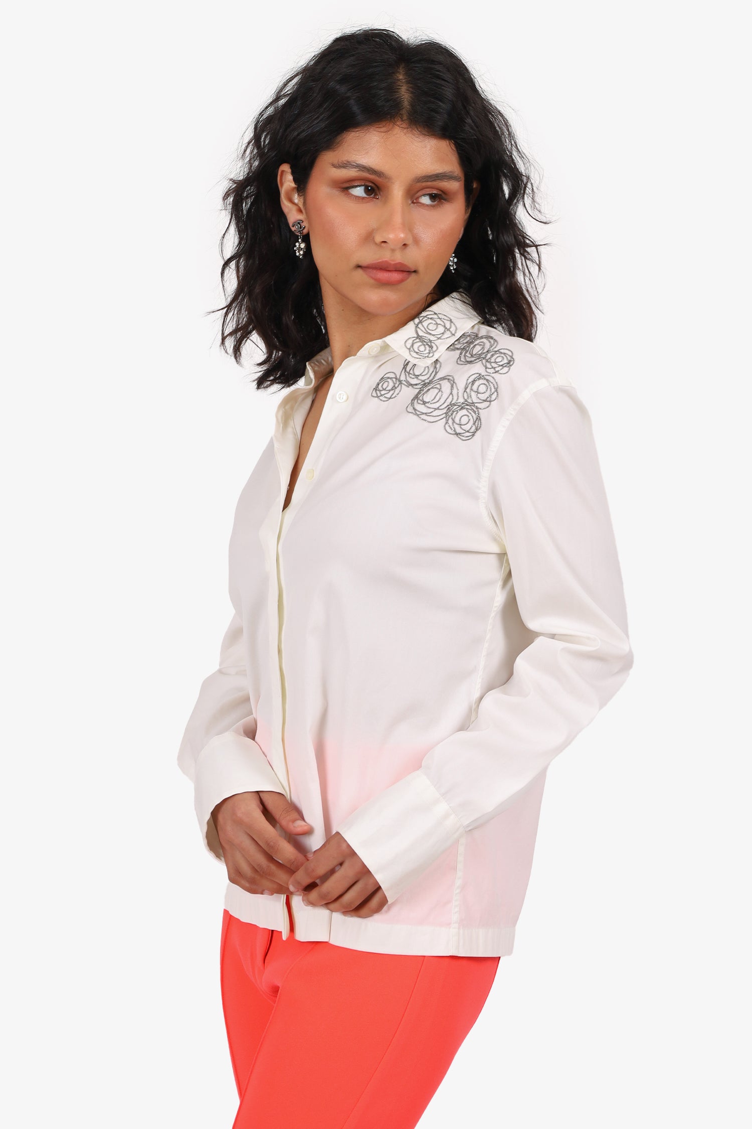 Brunello Cucinelli White Beaded Flower Shirt Size S