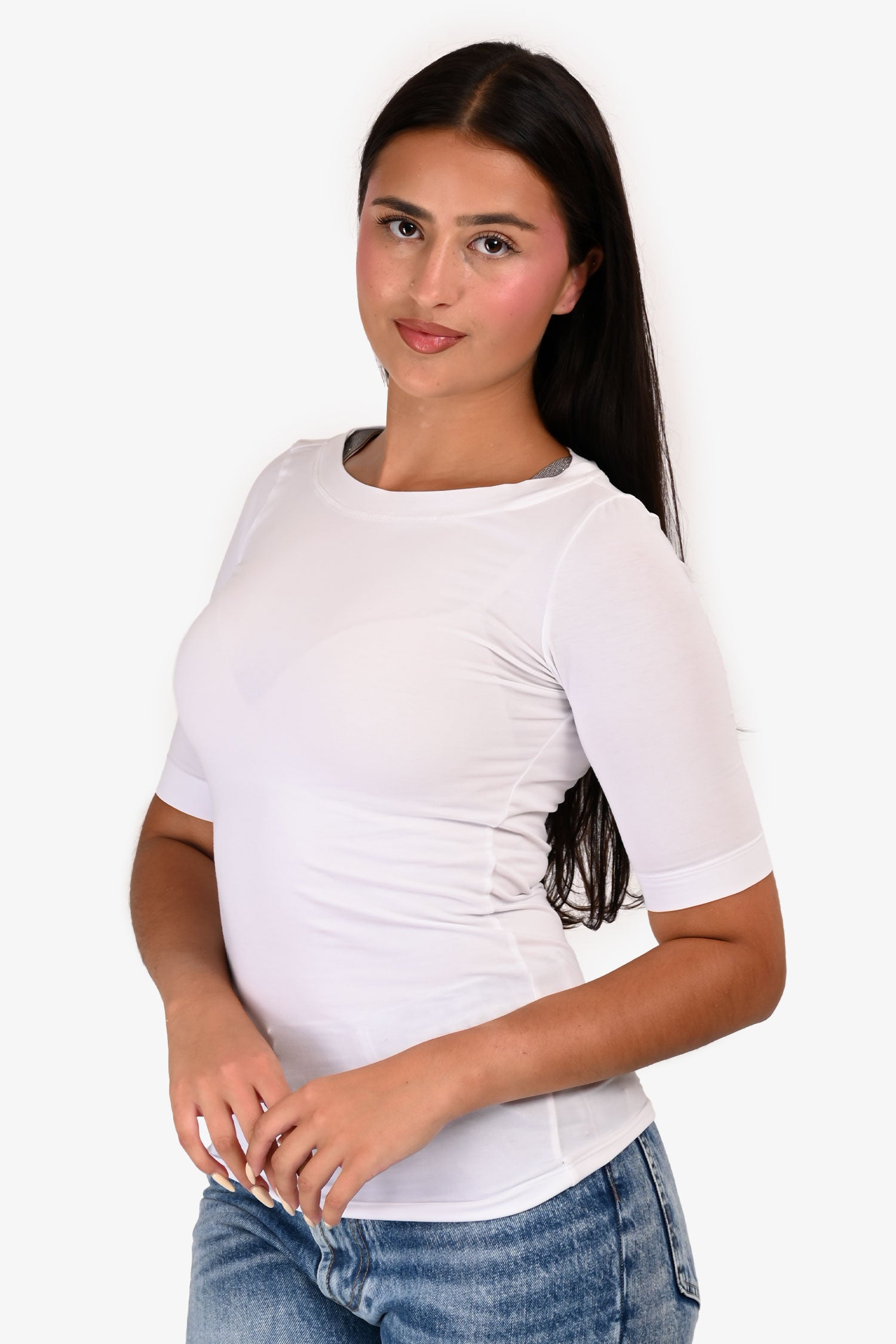 Refresh availabilityBrunello Cucinelli White Beaded Shoulder T-Shirt. Pull-on. Round neckline. Tonal stitching.