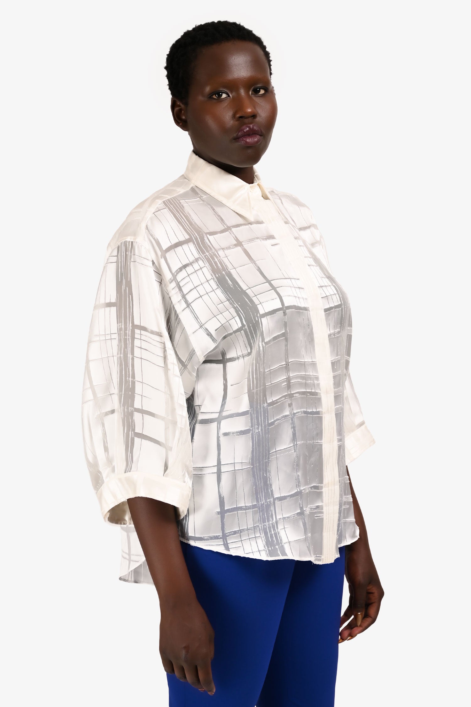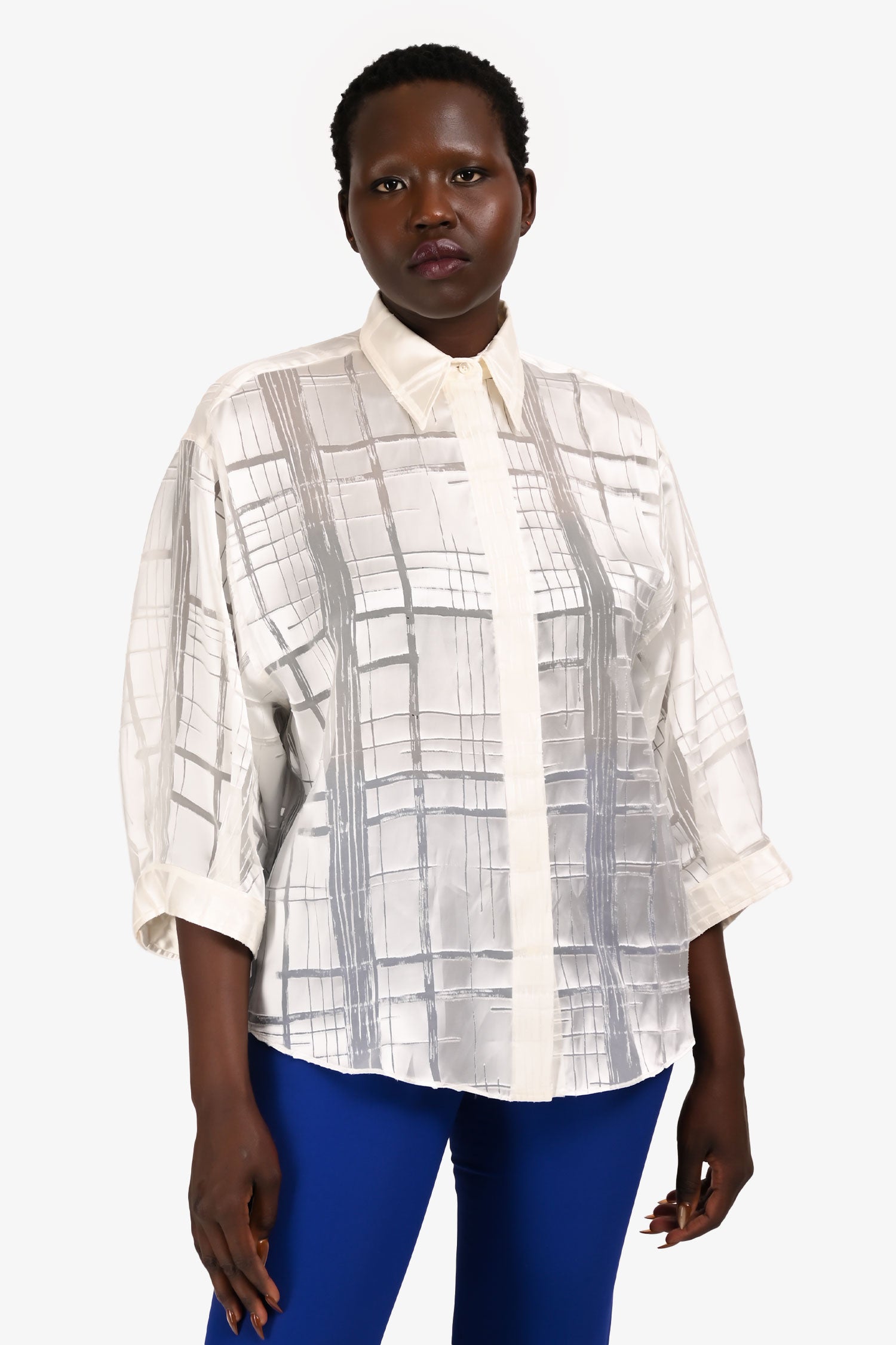 Brunello Cucinelli White Silk Blend Sheer Button Down Size XS
