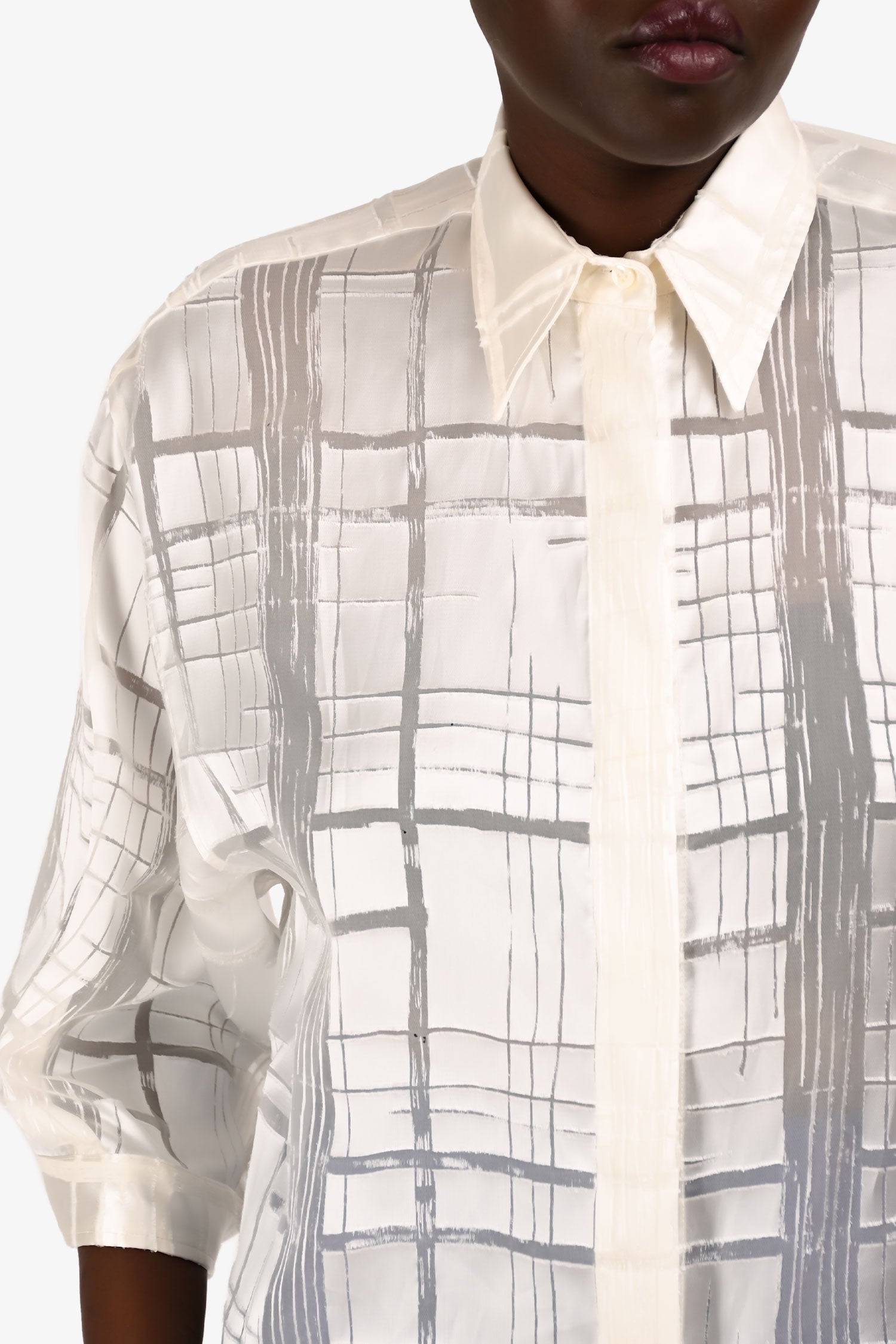Refresh availabilityBrunello Cucinelli White Silk Blend Sheer Button Down. Collared neckline. Front button-down closure. Tonal stitching.