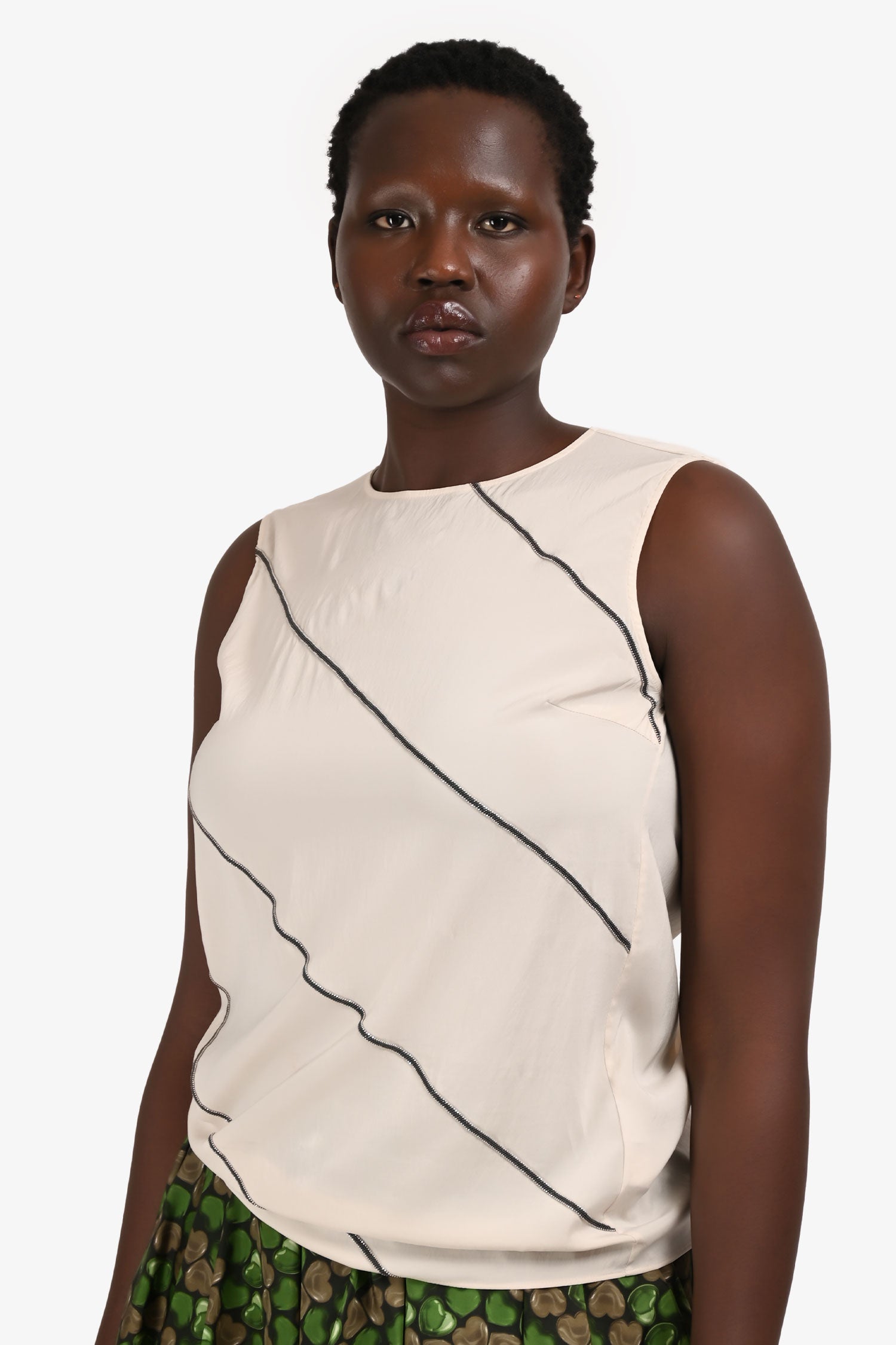 Brunello Cucinelli White Silk Sleeveless Bead Detail Top Size M