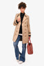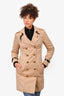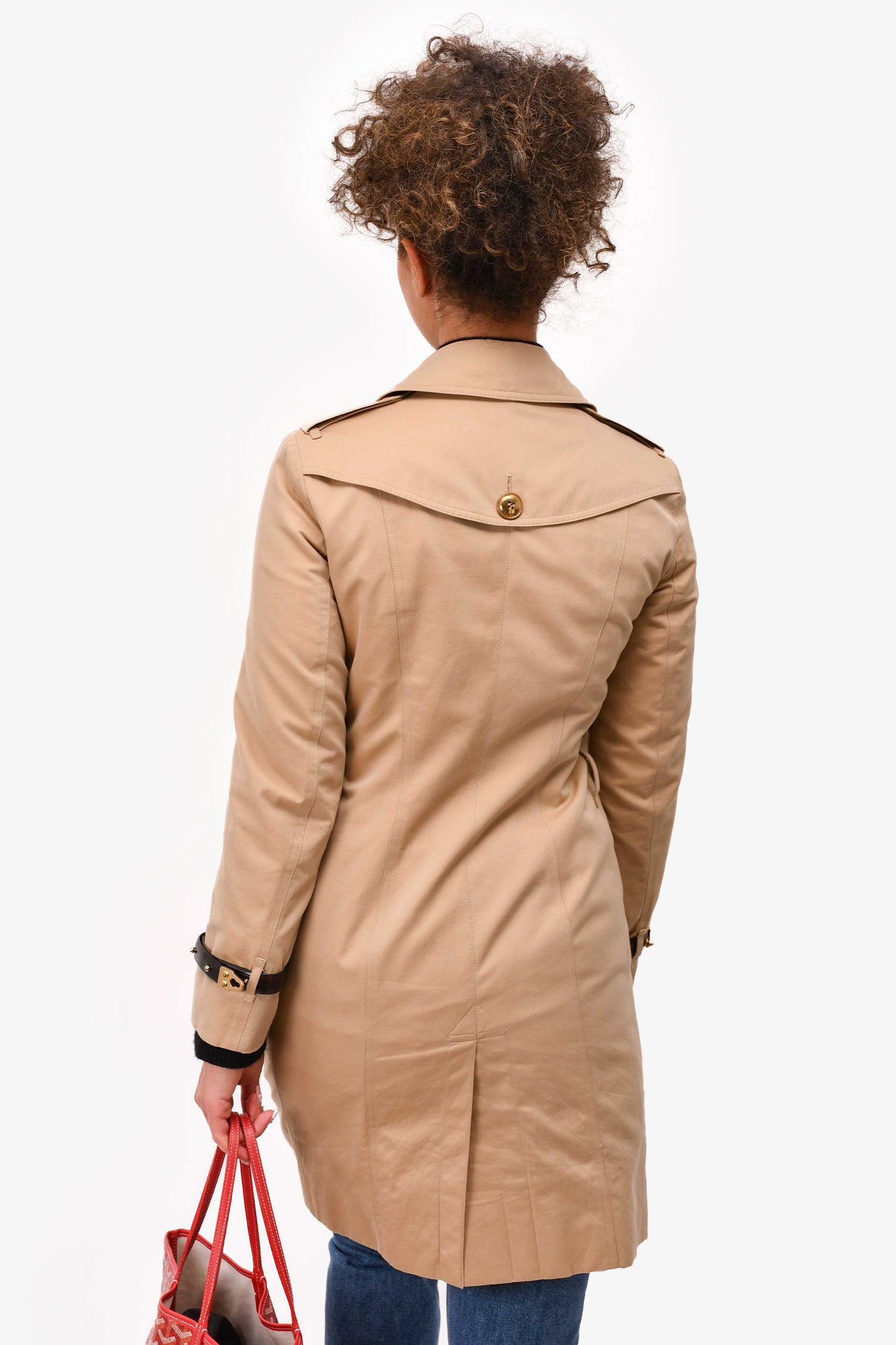 Burberry Beige Double Breasted Leather Detailed Trench Coat Size 4 US (As Is)