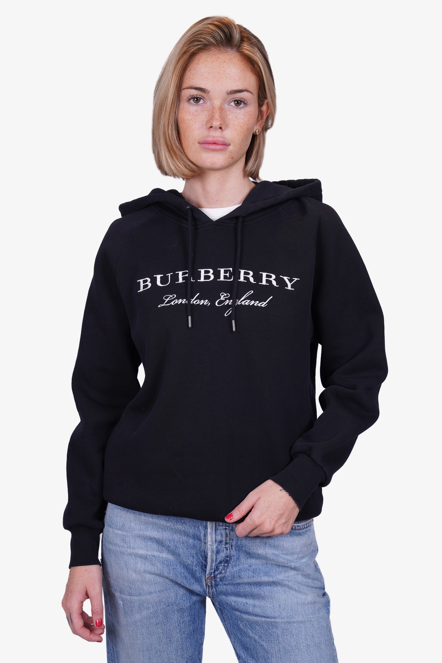 Refresh availabilityBurberry Black Cotton Logo Embroidery Hoodie. Hooded neckline. Tonal stitching.