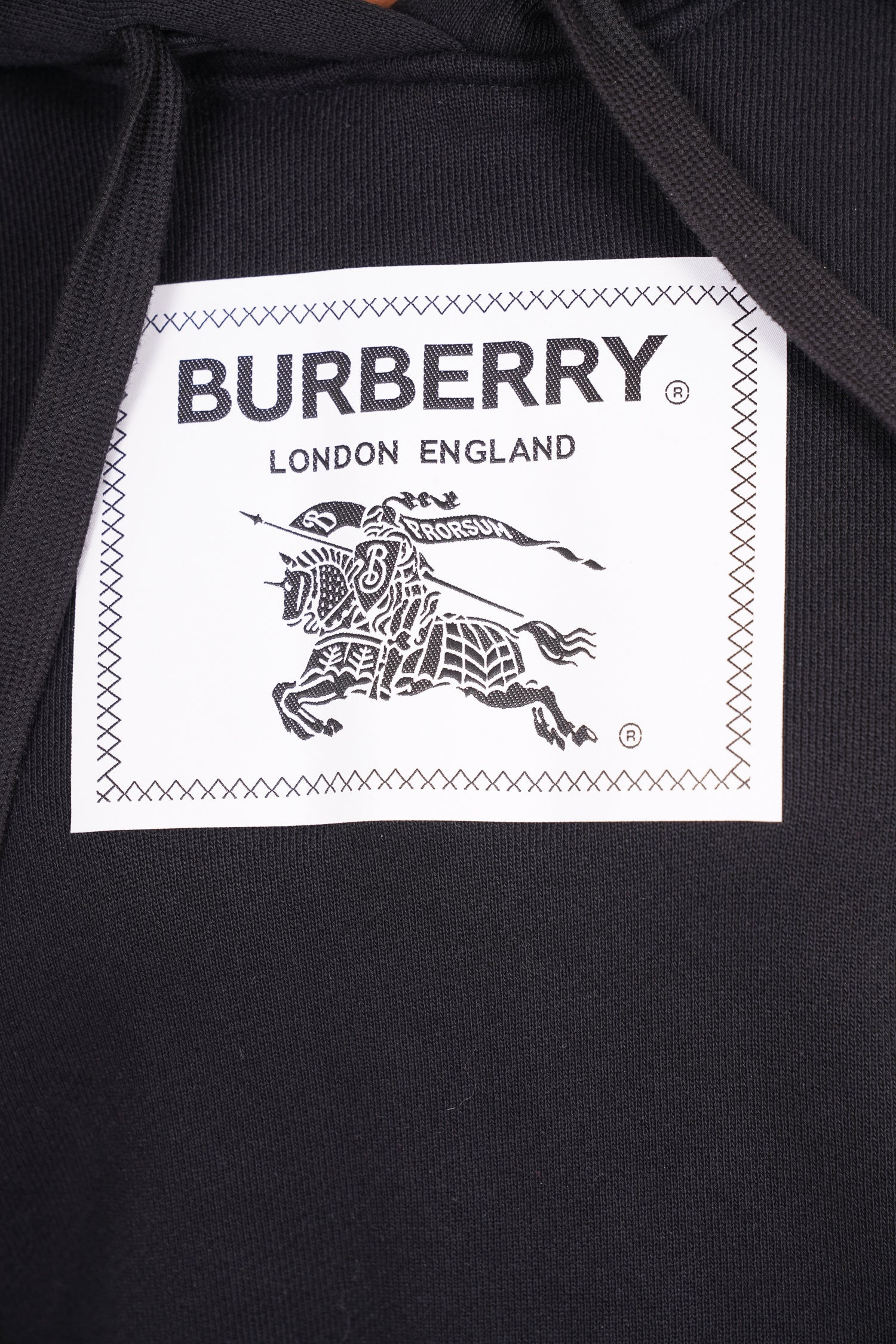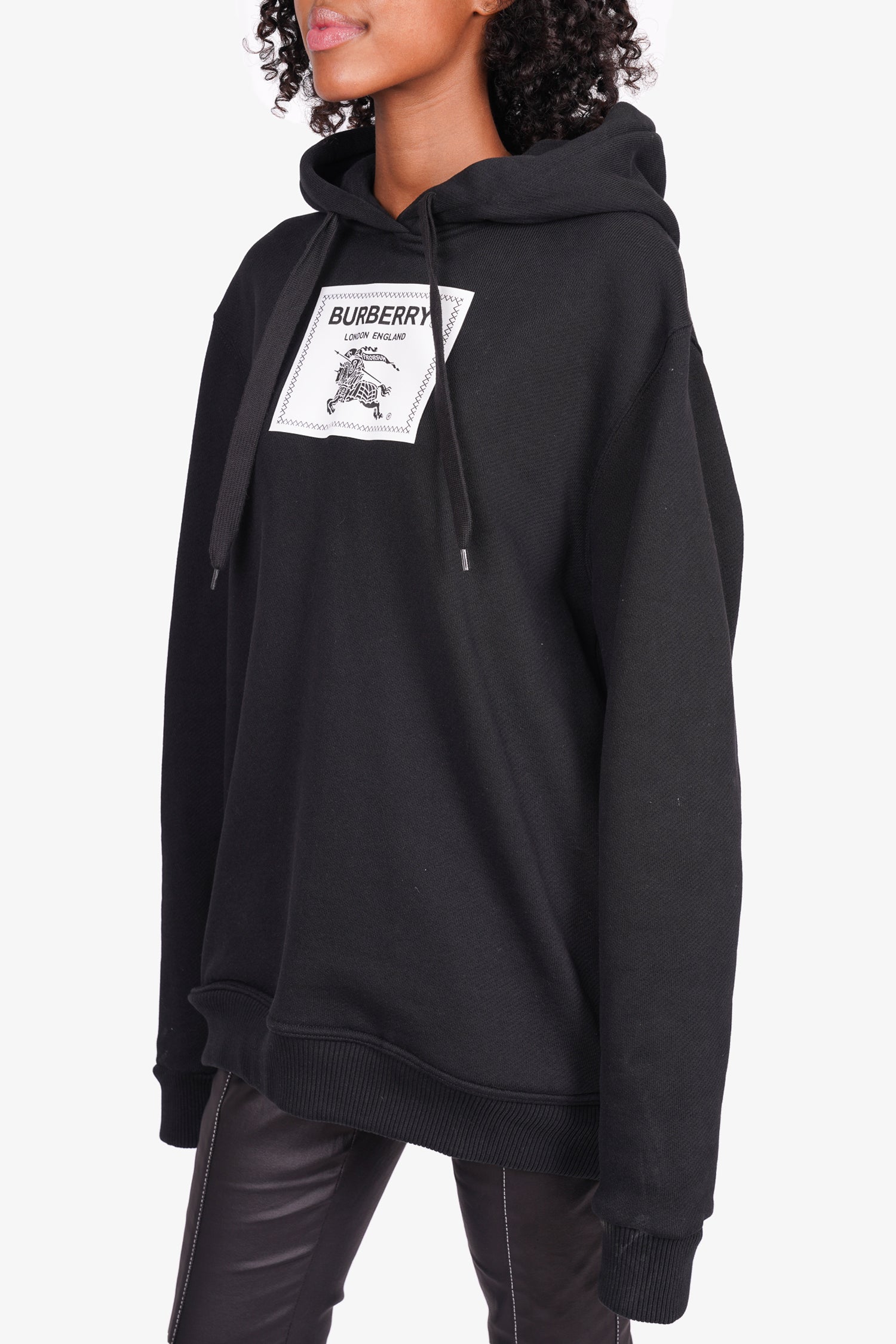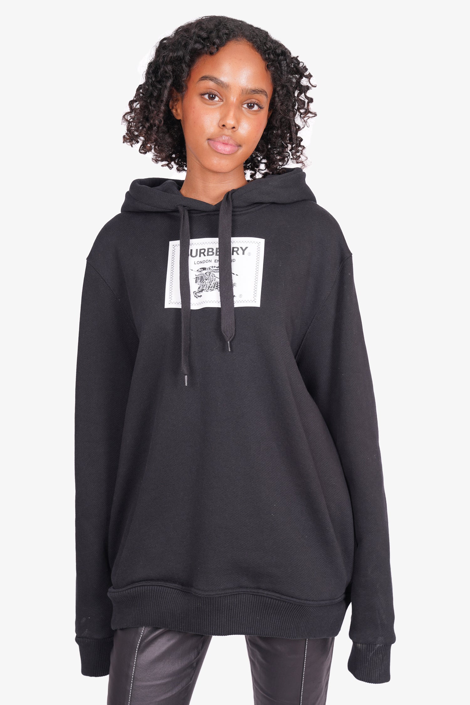 Refresh availabilityBurberry Black Cotton Logo Print Hoodie. Ribbed cuffs and sleeves. Singular front pocket. Tonal stitching.