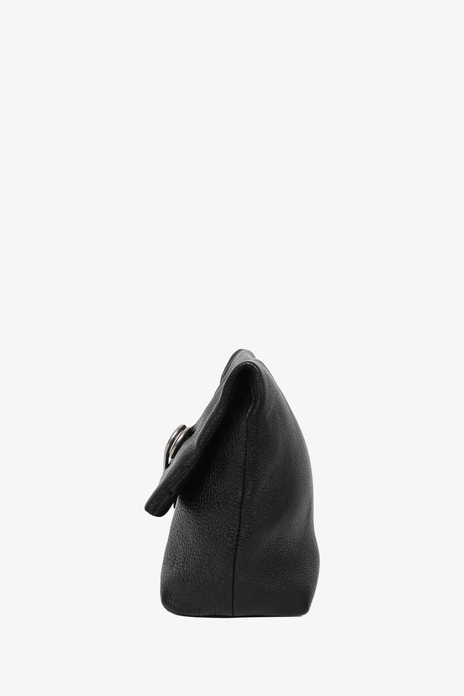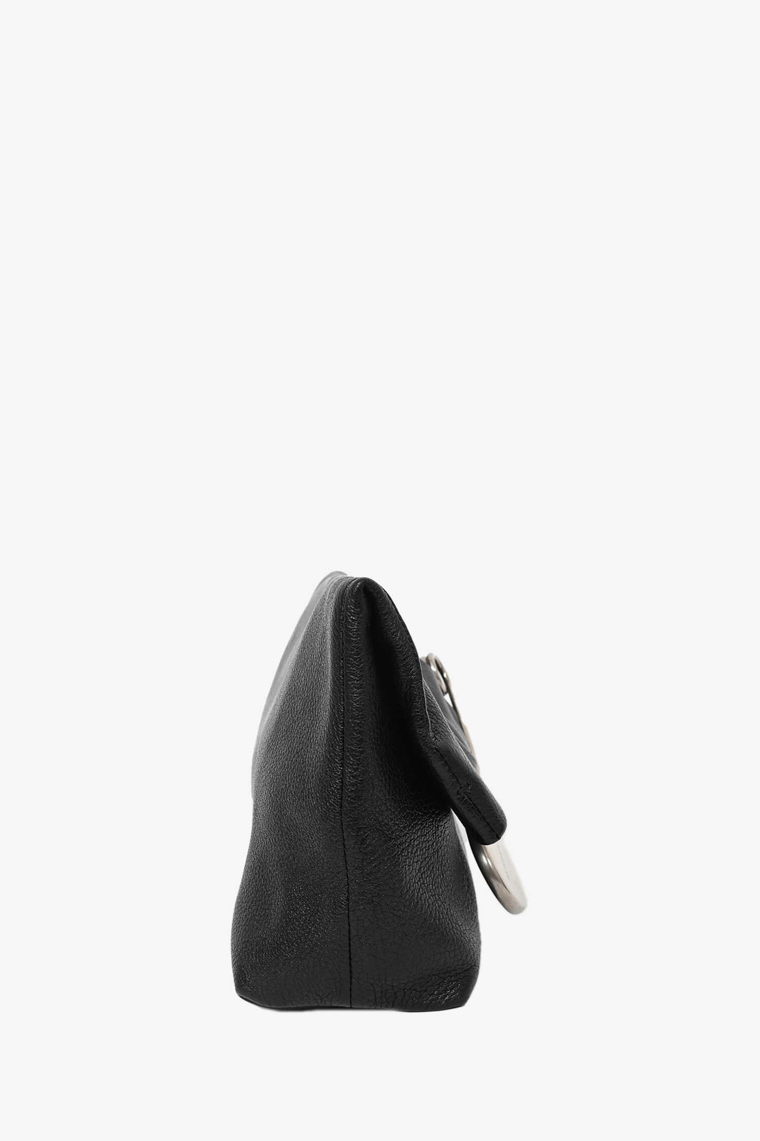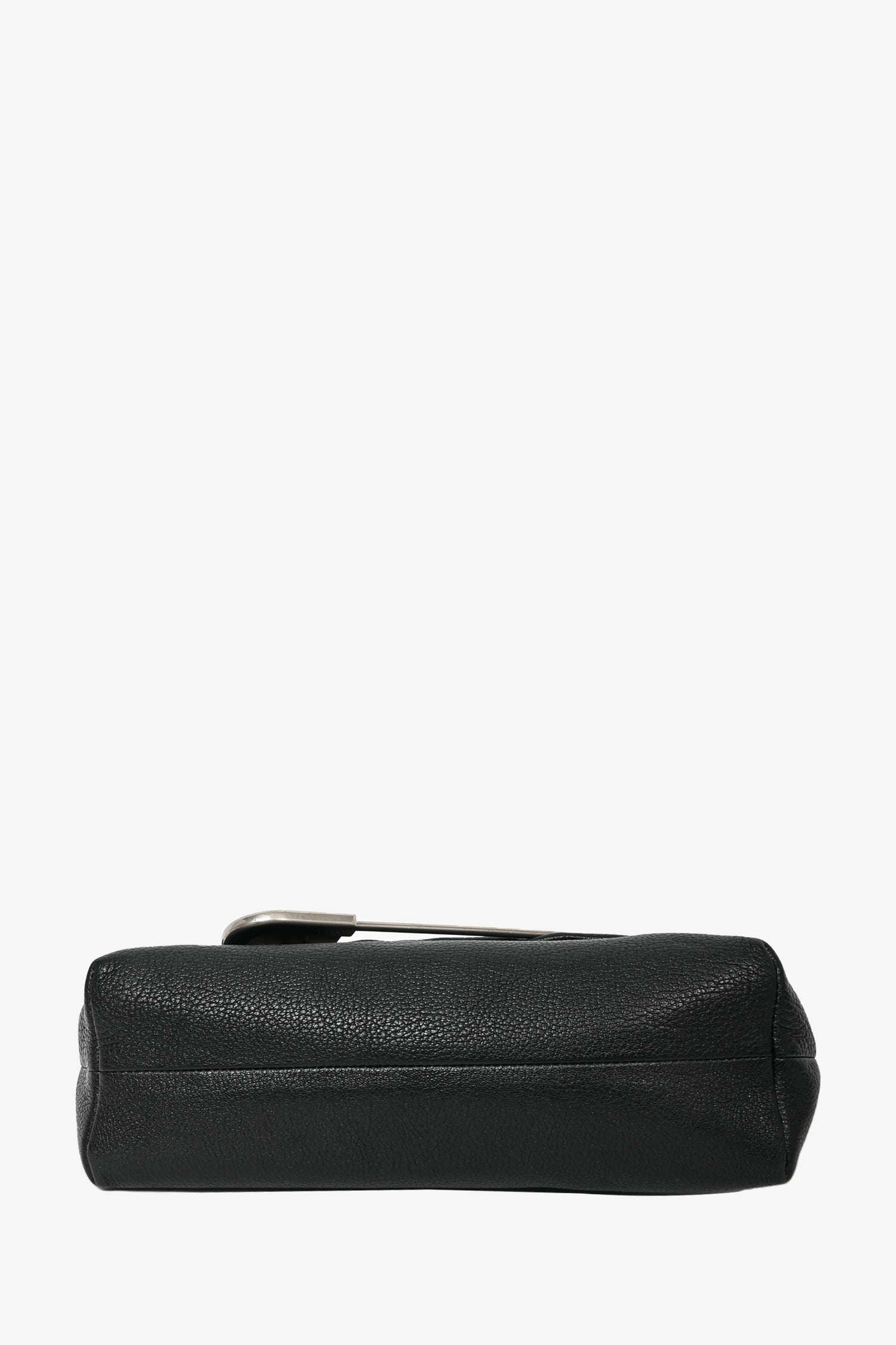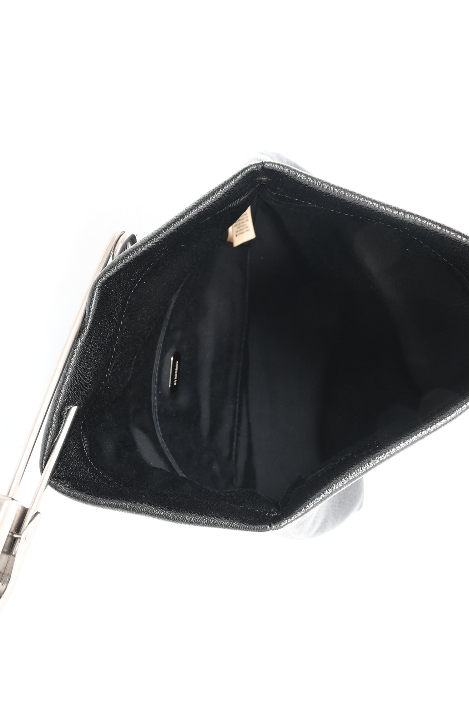 Refresh availabilityBurberry Black Leather Pin Clutch. Fold over flap with magnetic closure. 1 interior slip pocket. Silver-tone hardware. Tonal stitching.