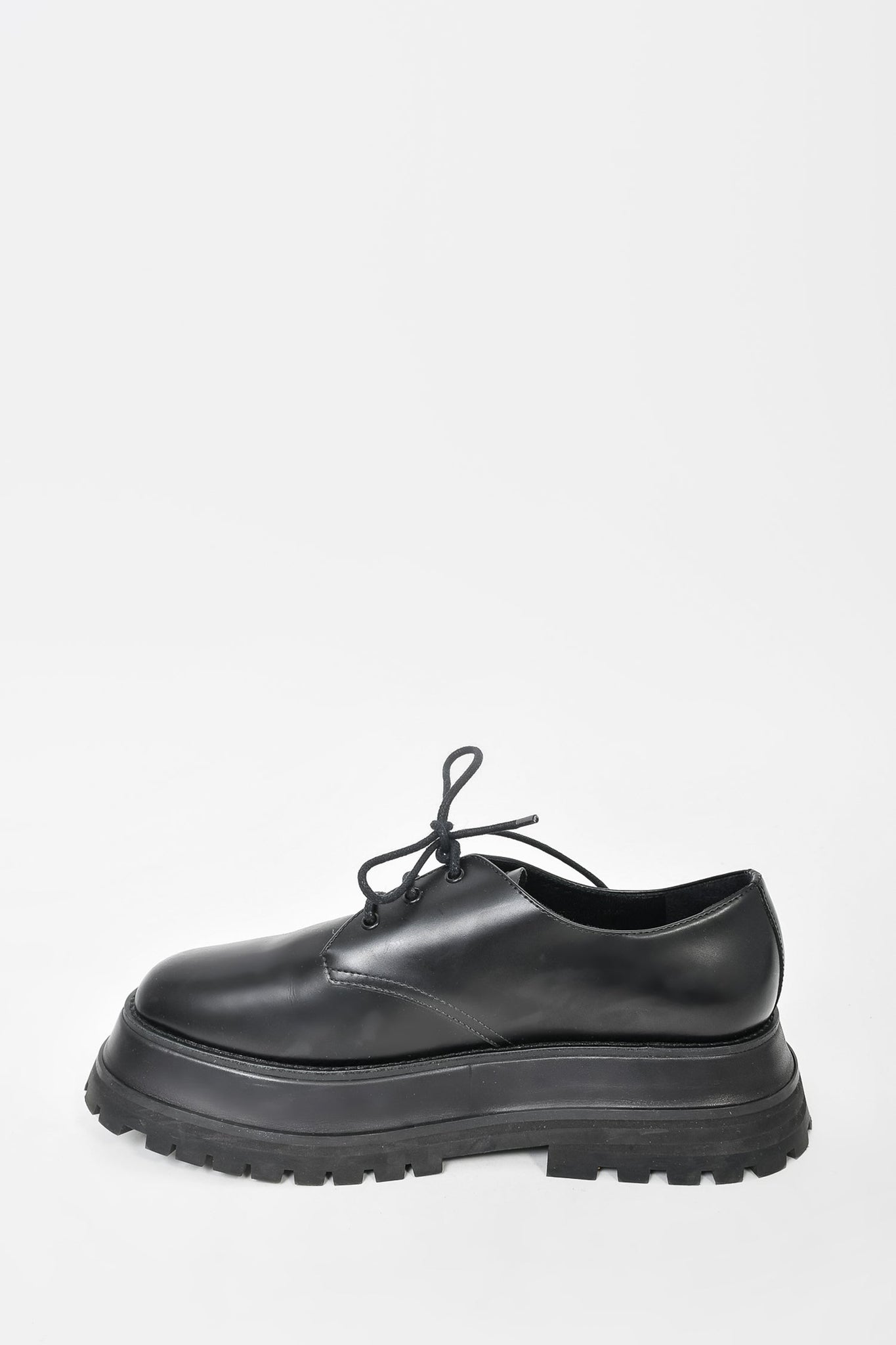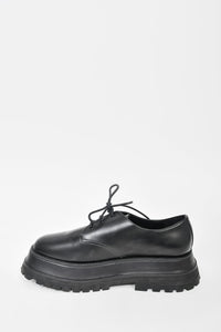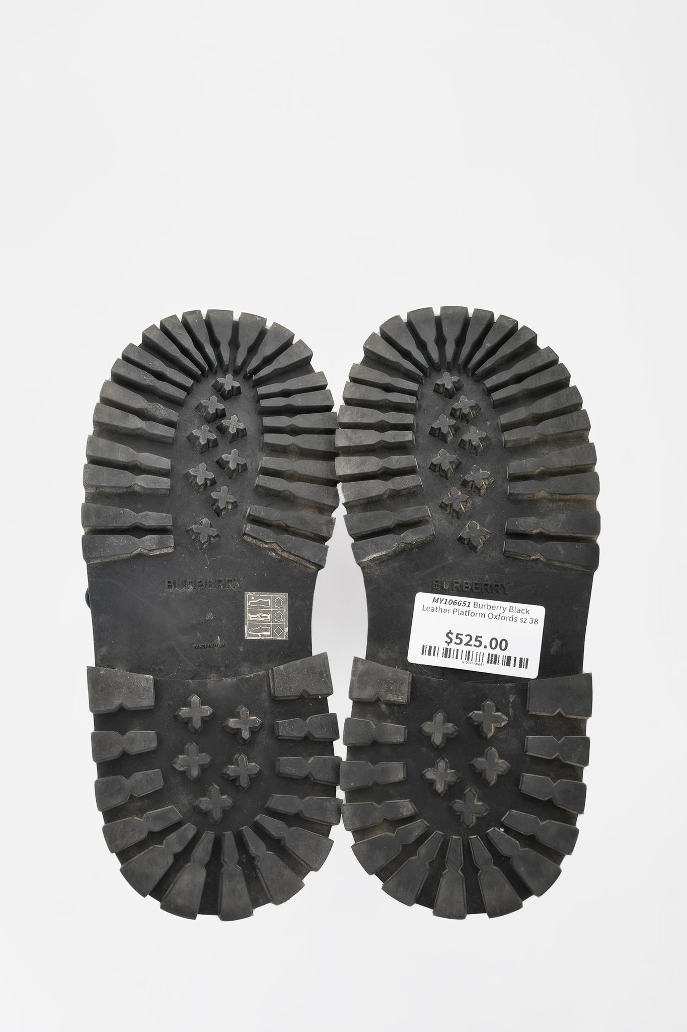 Refresh availabilityBurberry Black Leather Platform Oxfords. Round toe. Lace-up closure. Treaded bottoms. Tonal stitching.