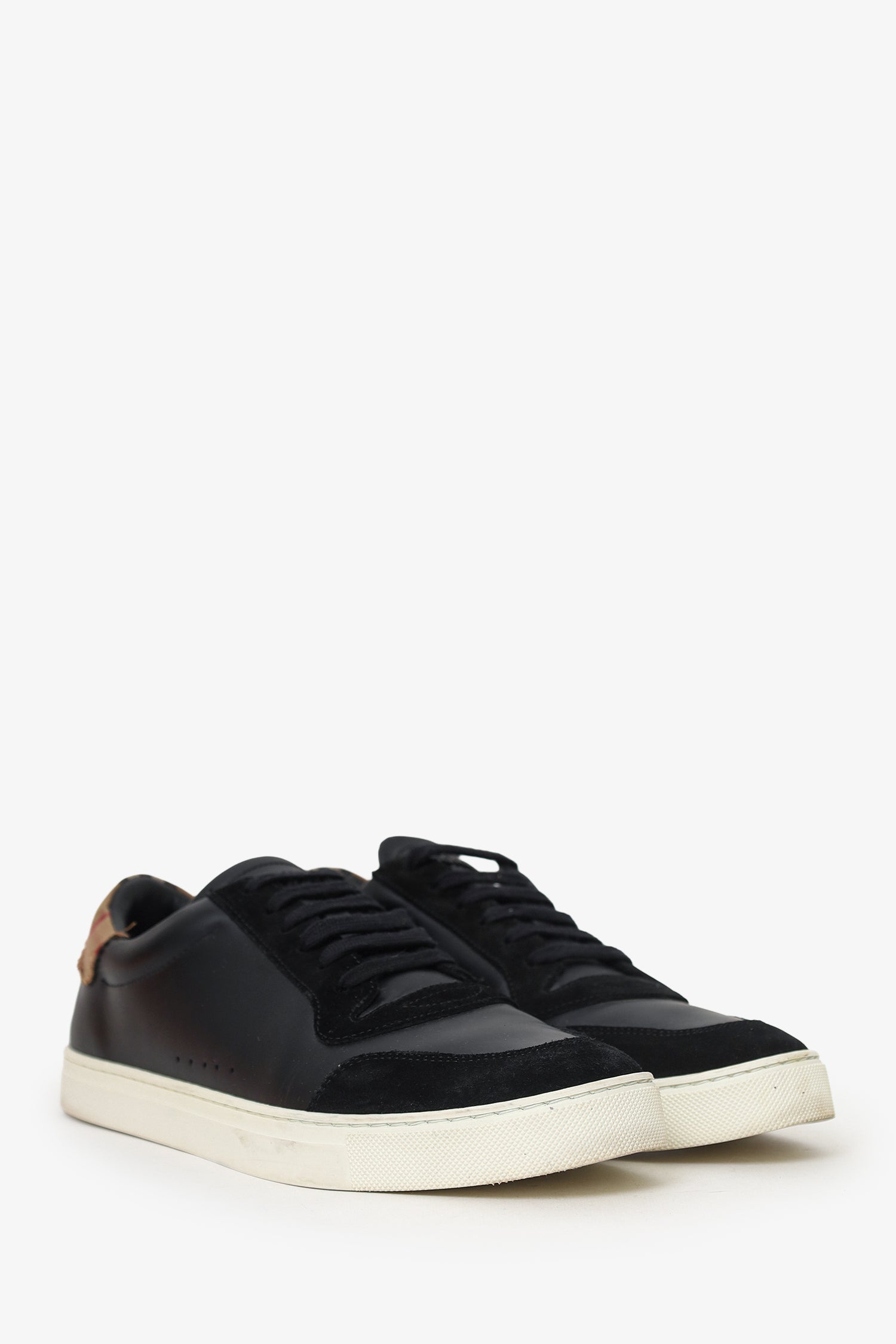 Refresh availabilityBurberry Black Leather/Suede Nova Check Low Top Sneakers. Slip-on. Round toe. Front lace-up closure. Tonal stitching.