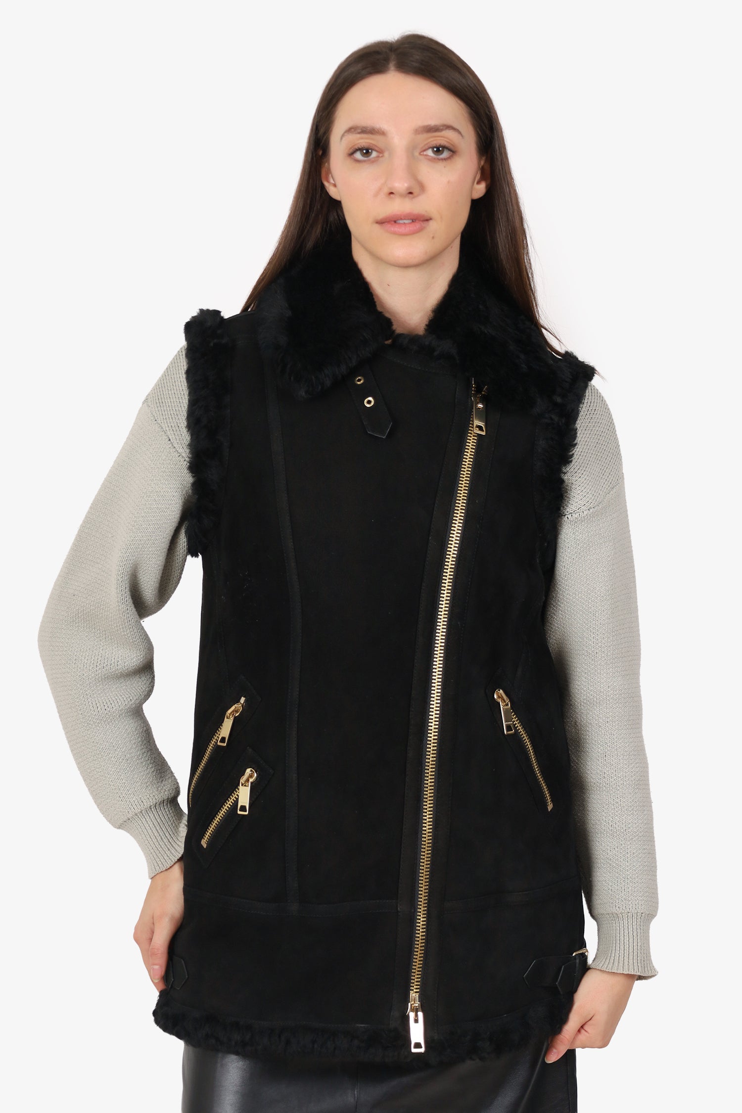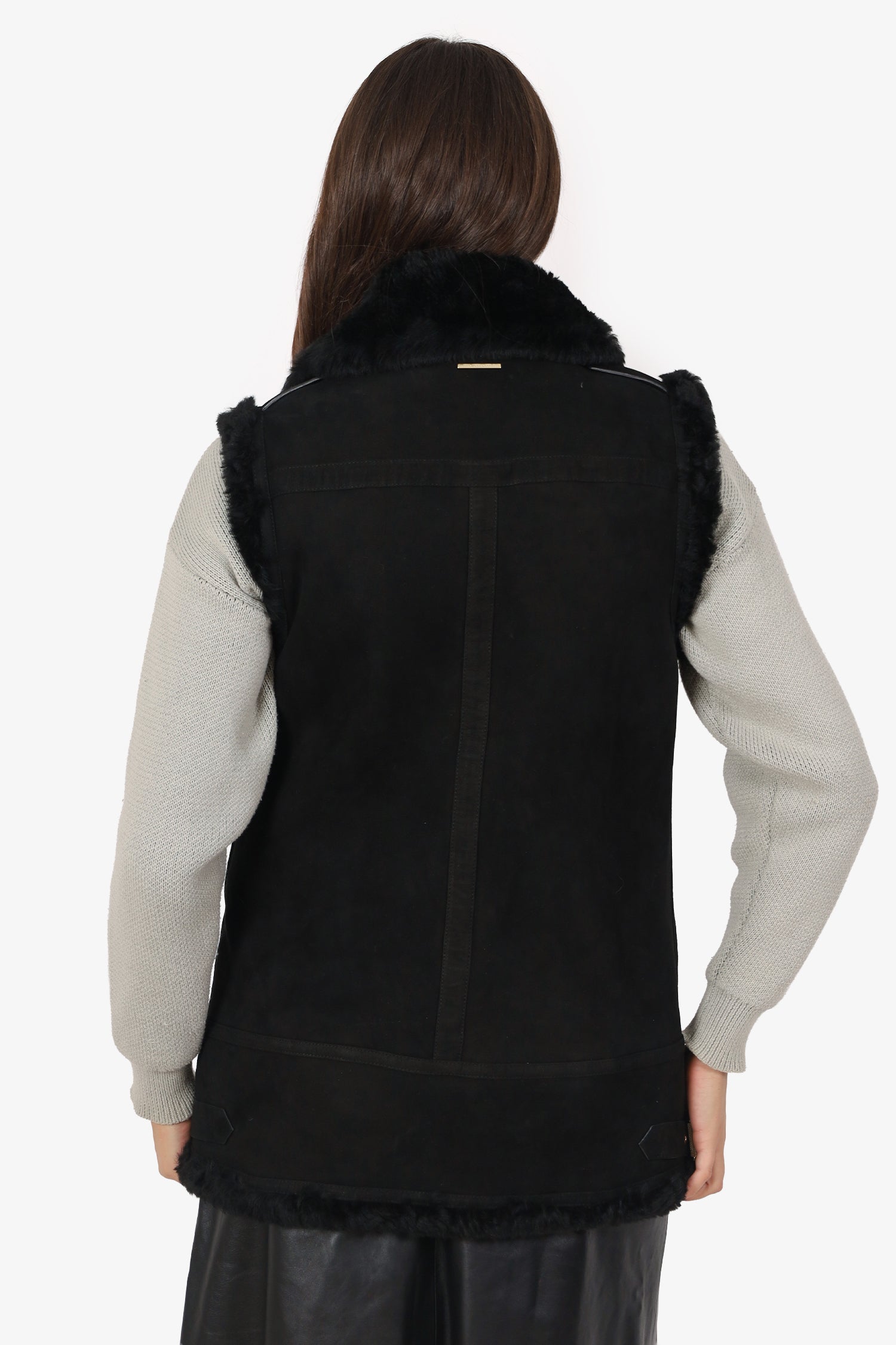 Burberry Black Shearling Biker Vest Size 8