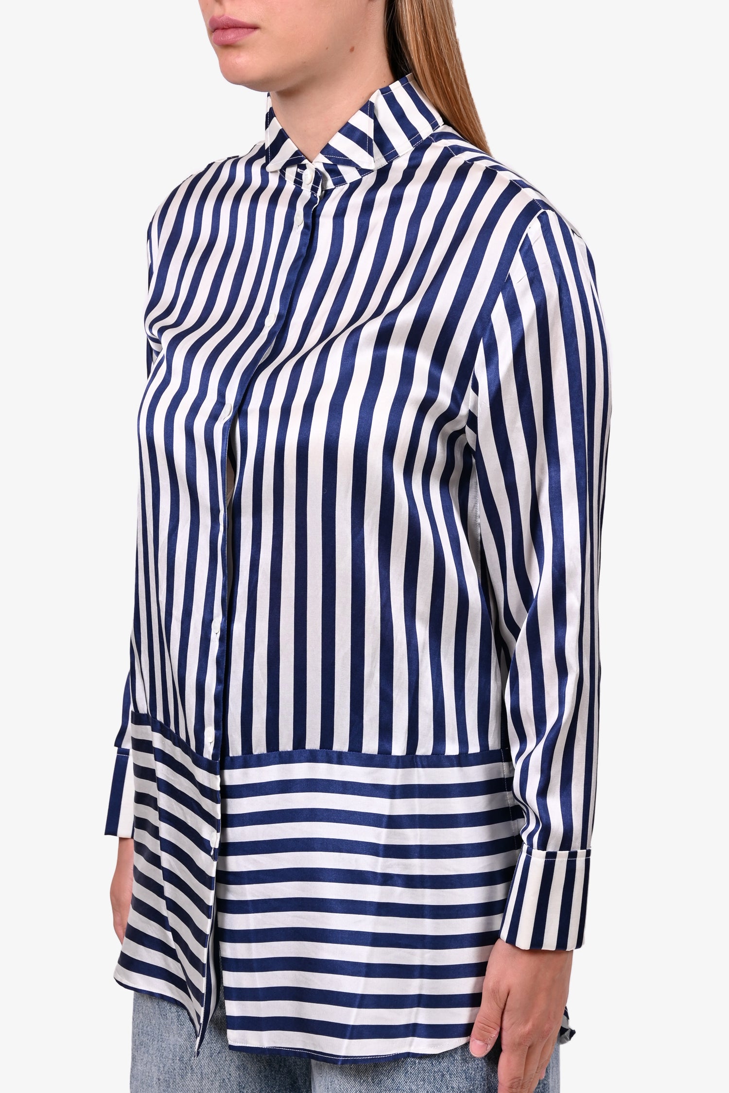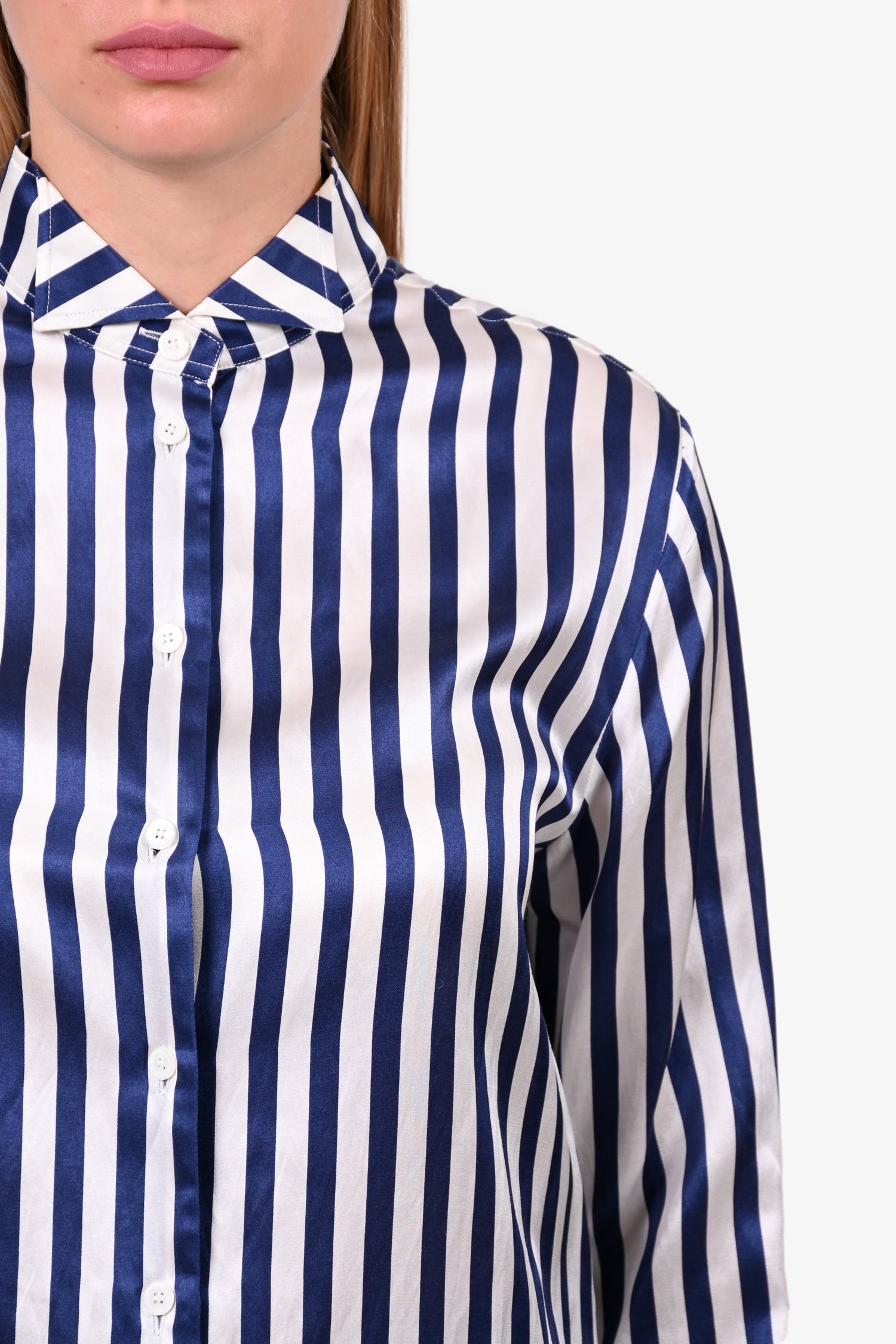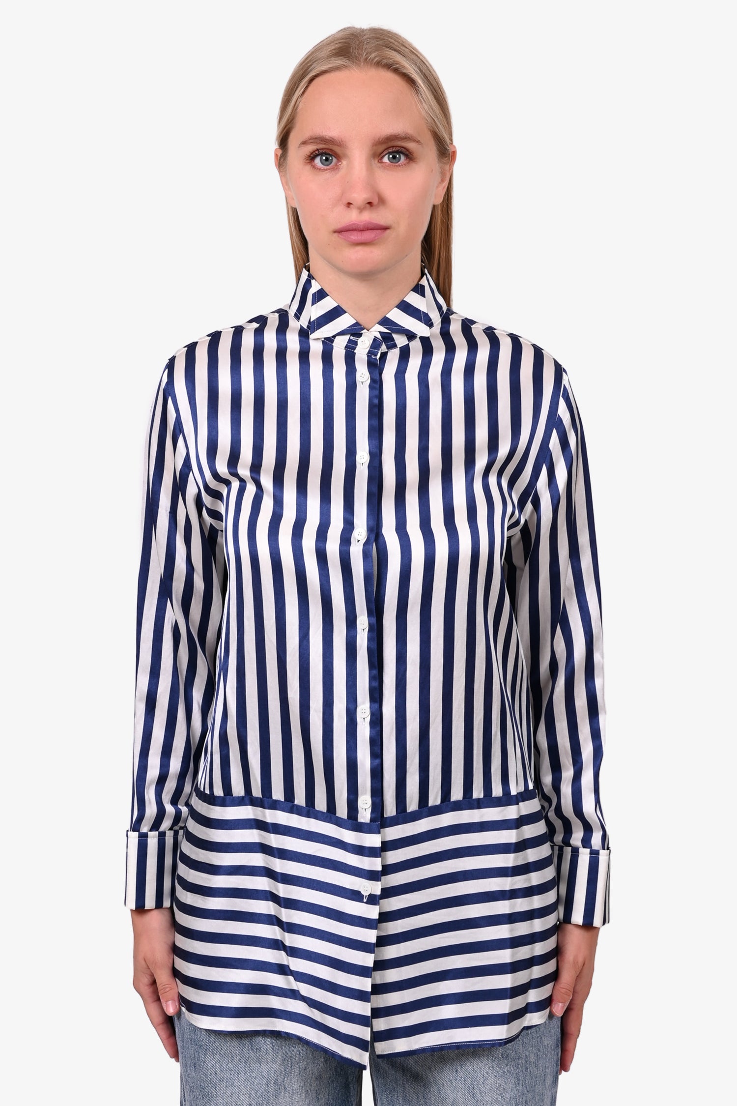 Refresh availabilityBurberry Blue/White Striped Blouse. Front button-up closure. Tonal stitching.