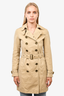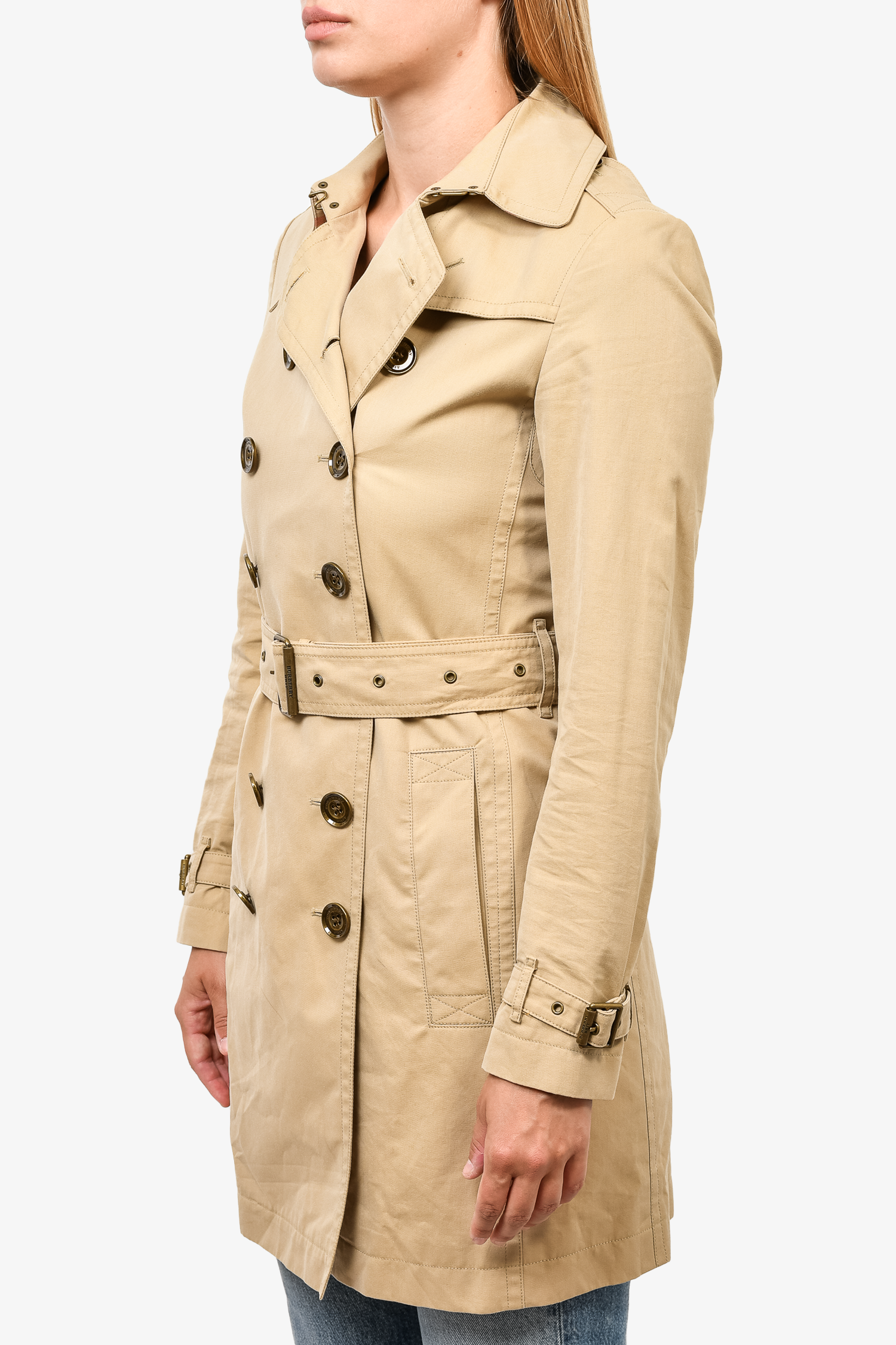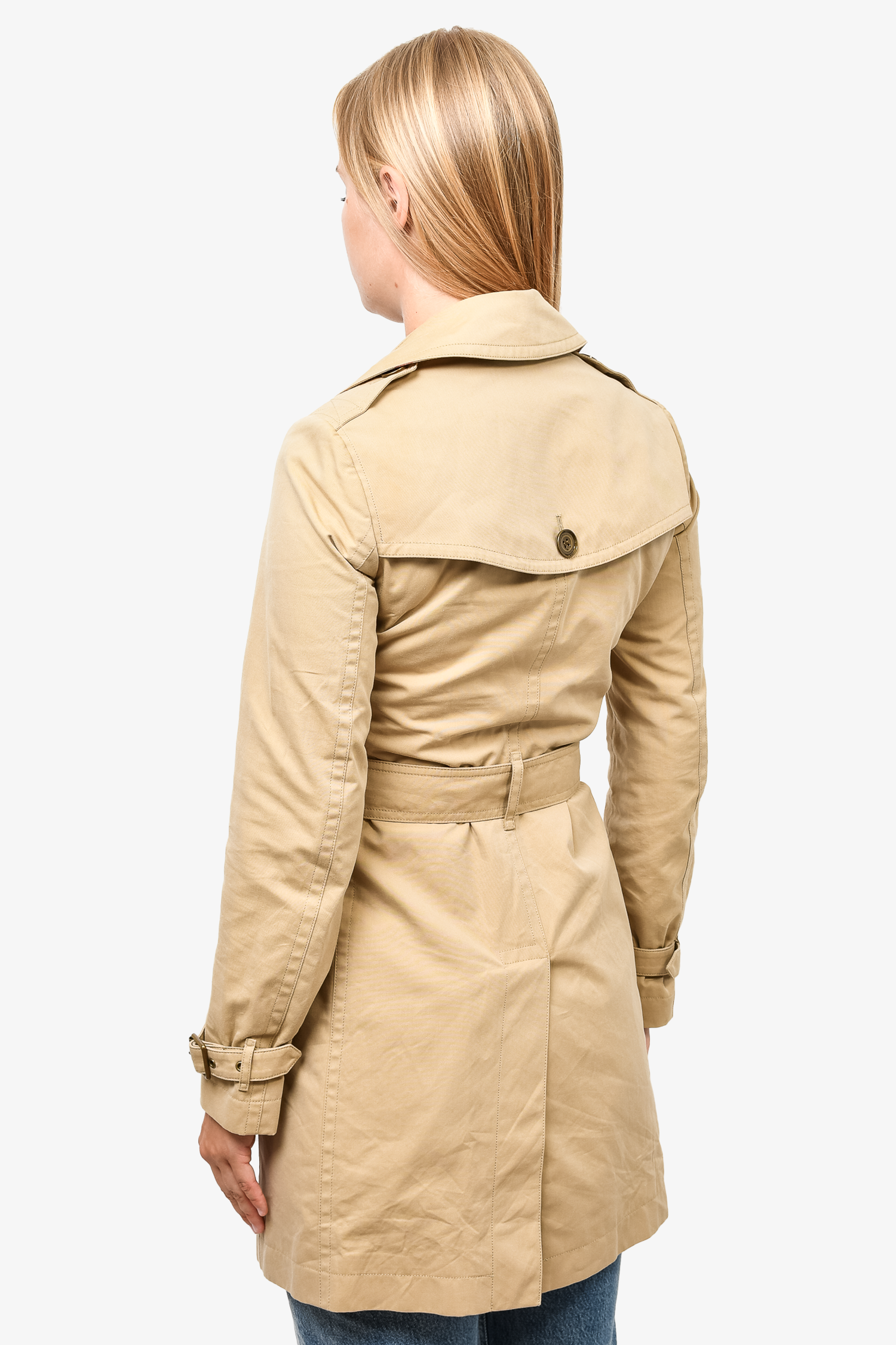 Refresh availabilityBurberry Brit Beige Short Trench Coat. Front button-up closure. Front pockets. Signature nova check interior lining. Tonal stitching.
