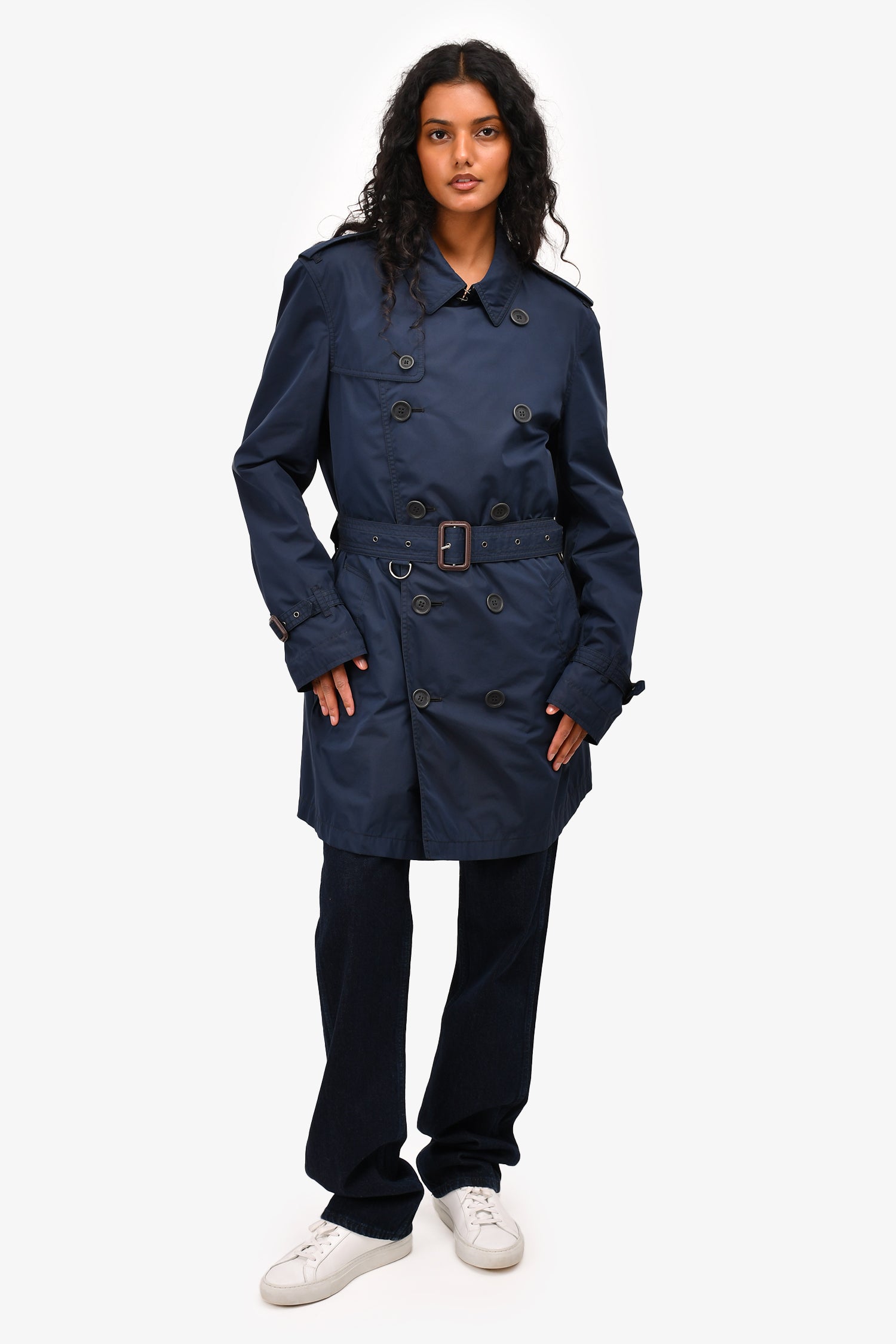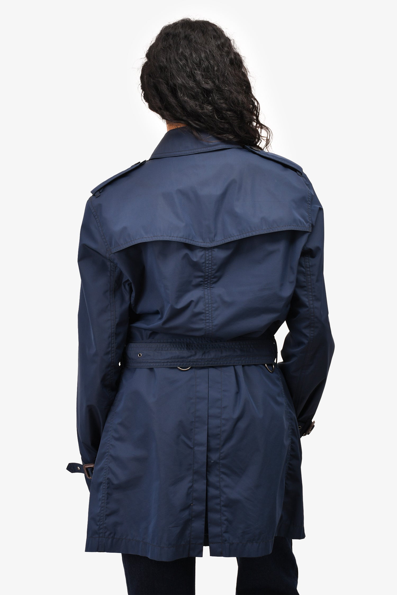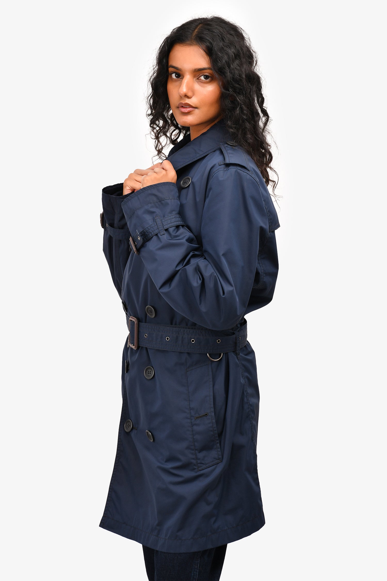 Burberry Brit Navy Nylon Belted Midi Trench Size M