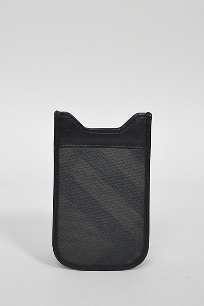 Burberry Brown/Black Leather Check Phone Holder. Tonal stitching.