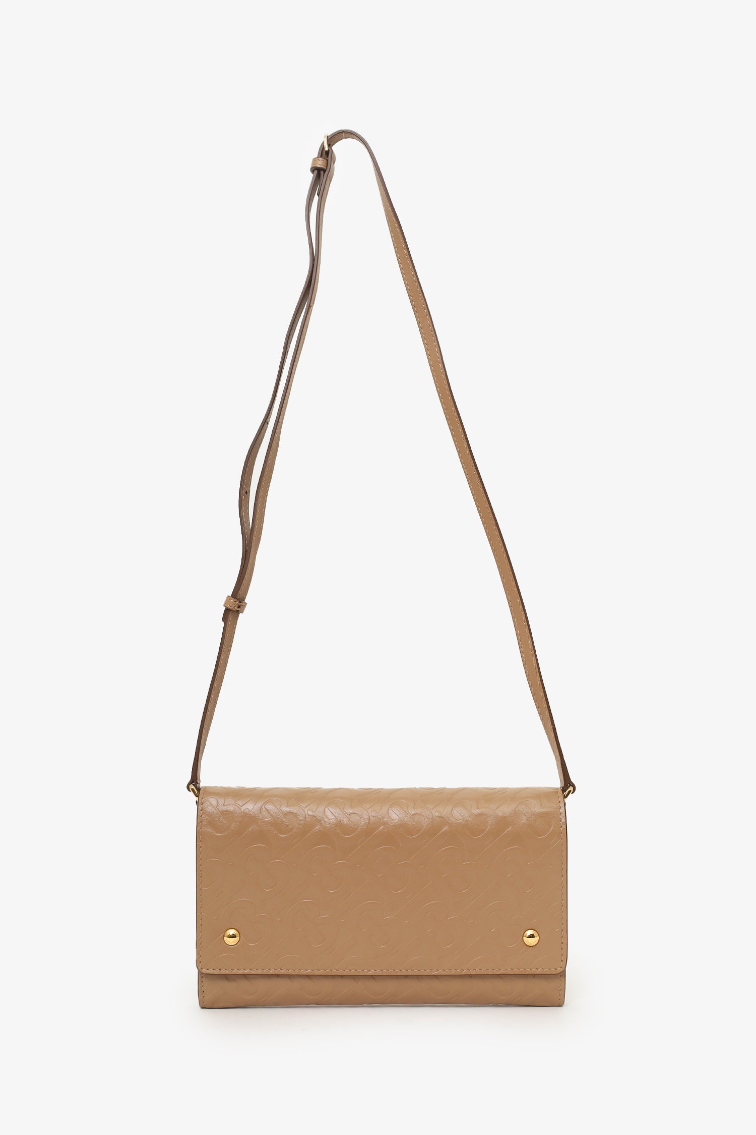 Burberry Brown Leather 'TB' Embossed Hazelmere Wallet On Strap