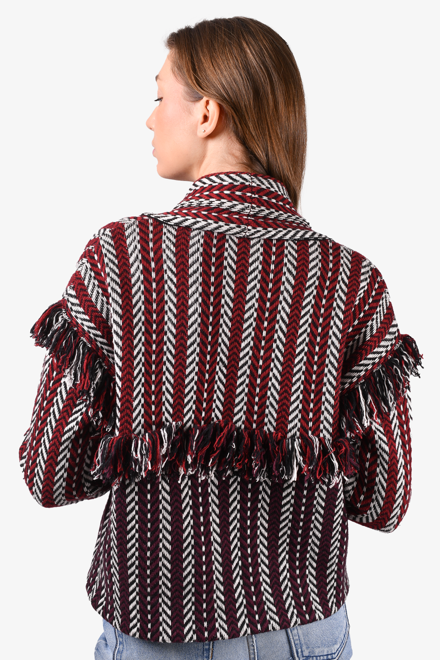 Burberry Burgundy/White Printed Fringe-Trimmed Jacket