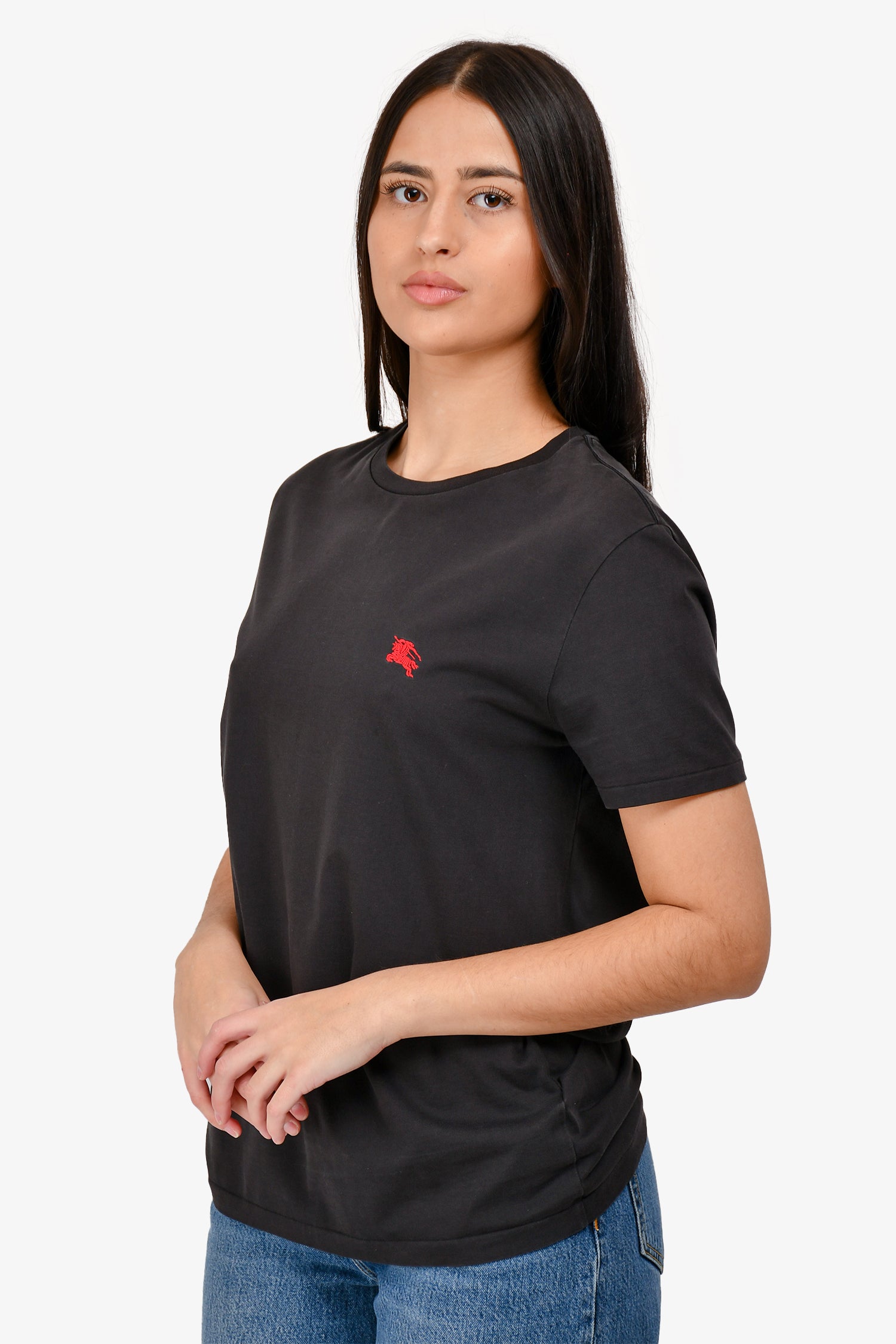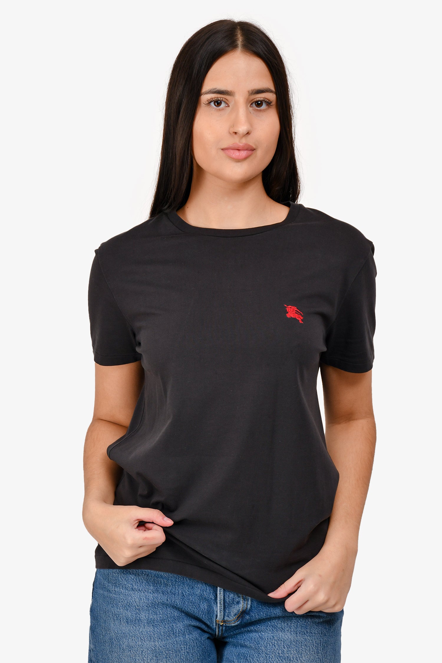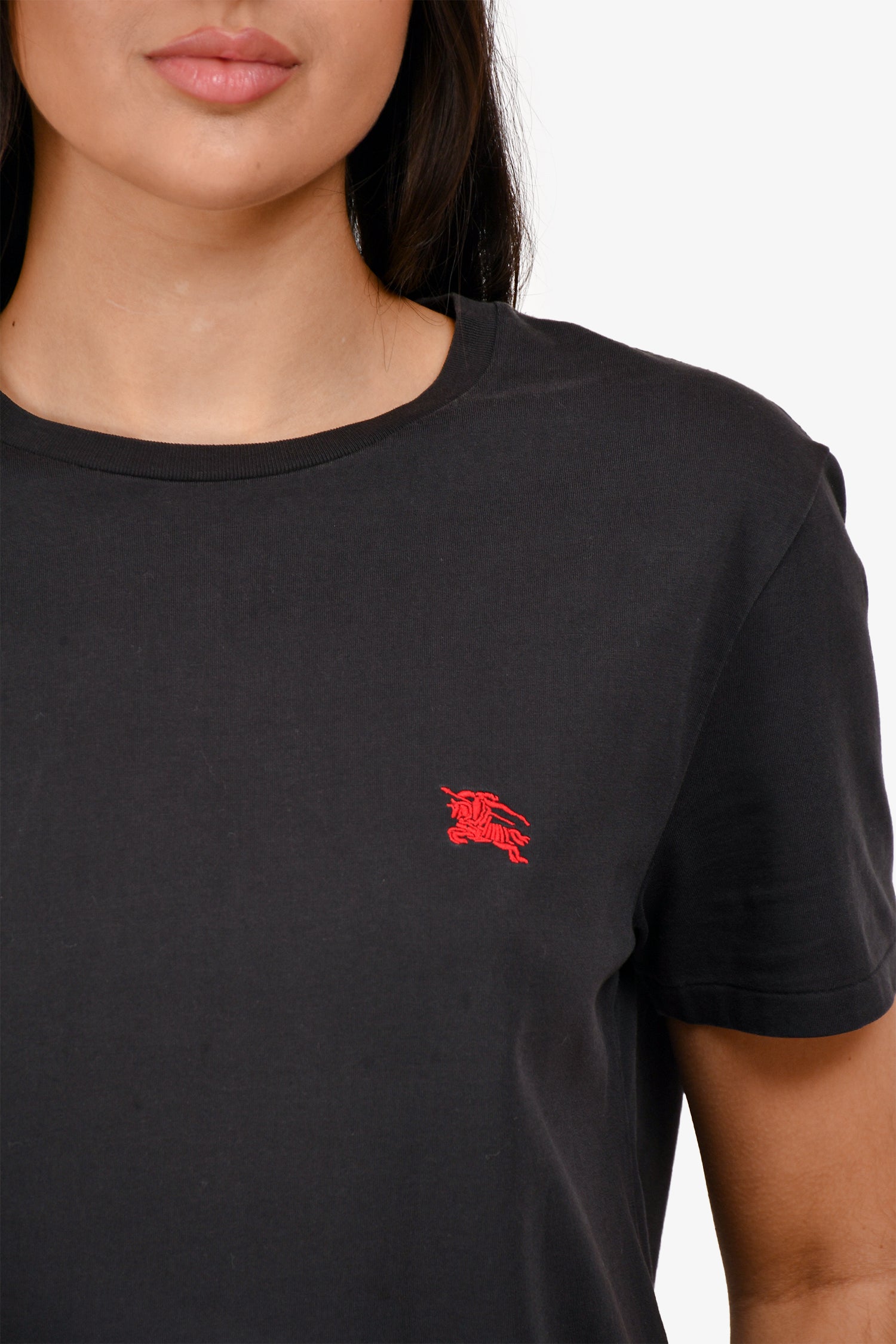 Refresh availabilityBurberry Dark Grey Logo Embroidered T-Shirt. Pull on. Round neck. Tonal stitching.