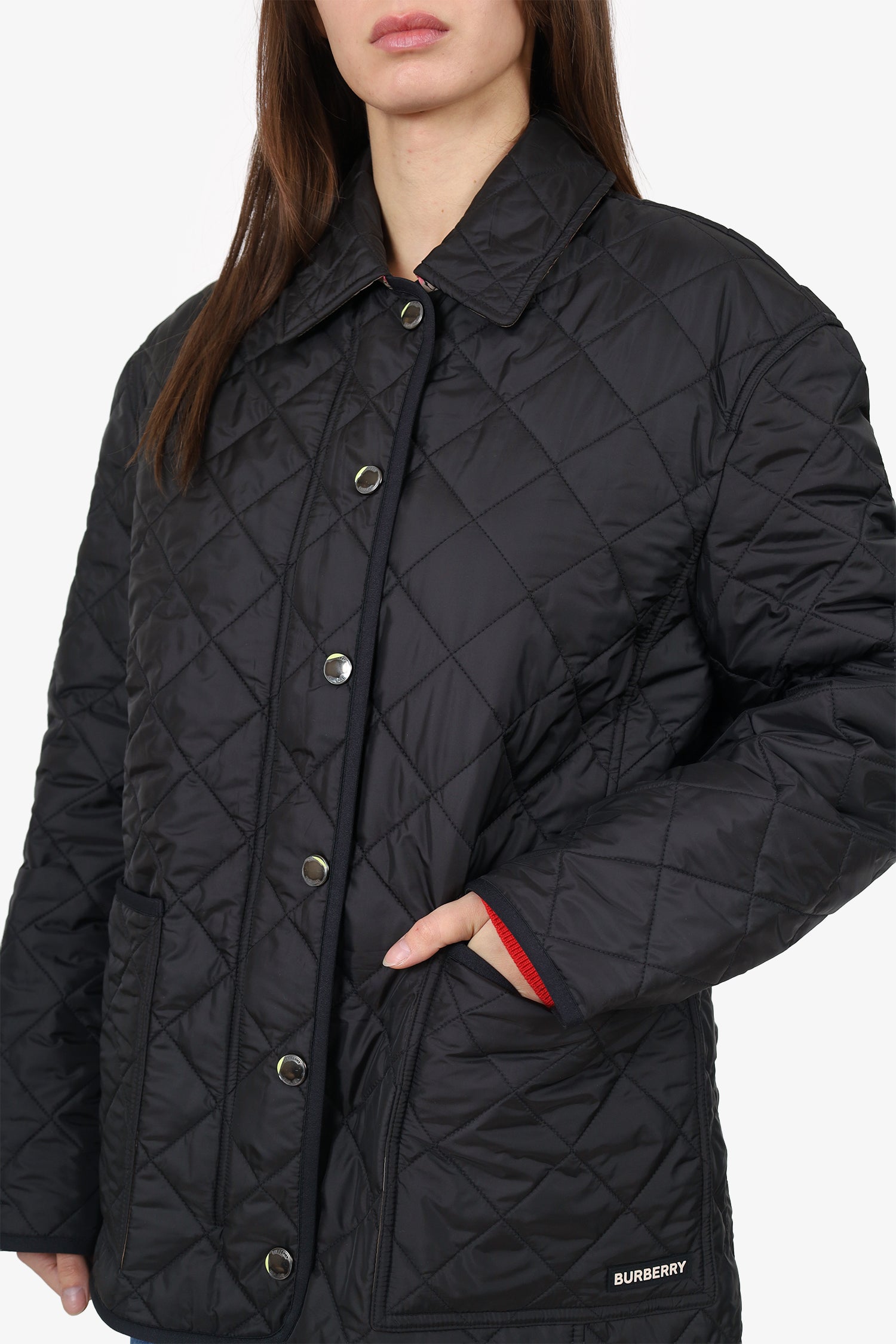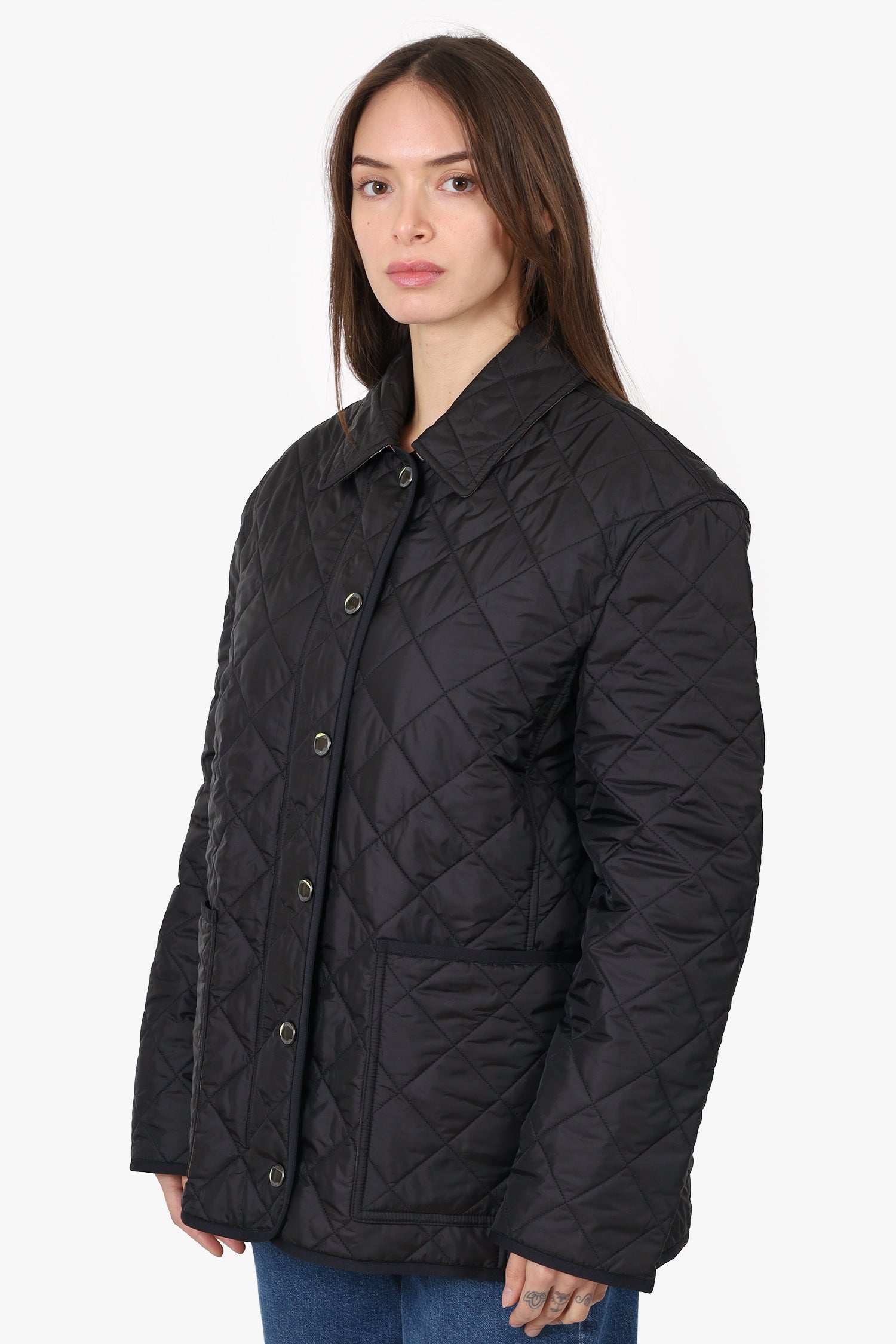 Refresh availabilityBurberry Dalry Quilted Jacket. Pull-on. Collared neckline. Front zip with button-up closure. 2 exterior front slip pockets. Lined interior. Gunmetal-tone hardware. Tonal stitching.
