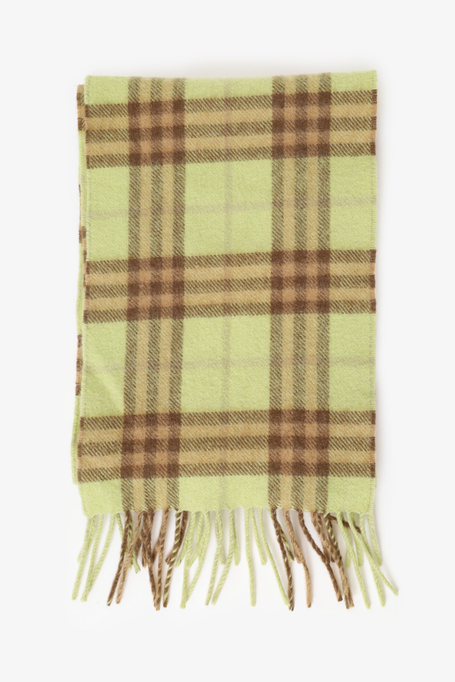 Refresh availabilityBurberry Green Cashmere Nova Check Fringe Scarf. Tonal stitching.