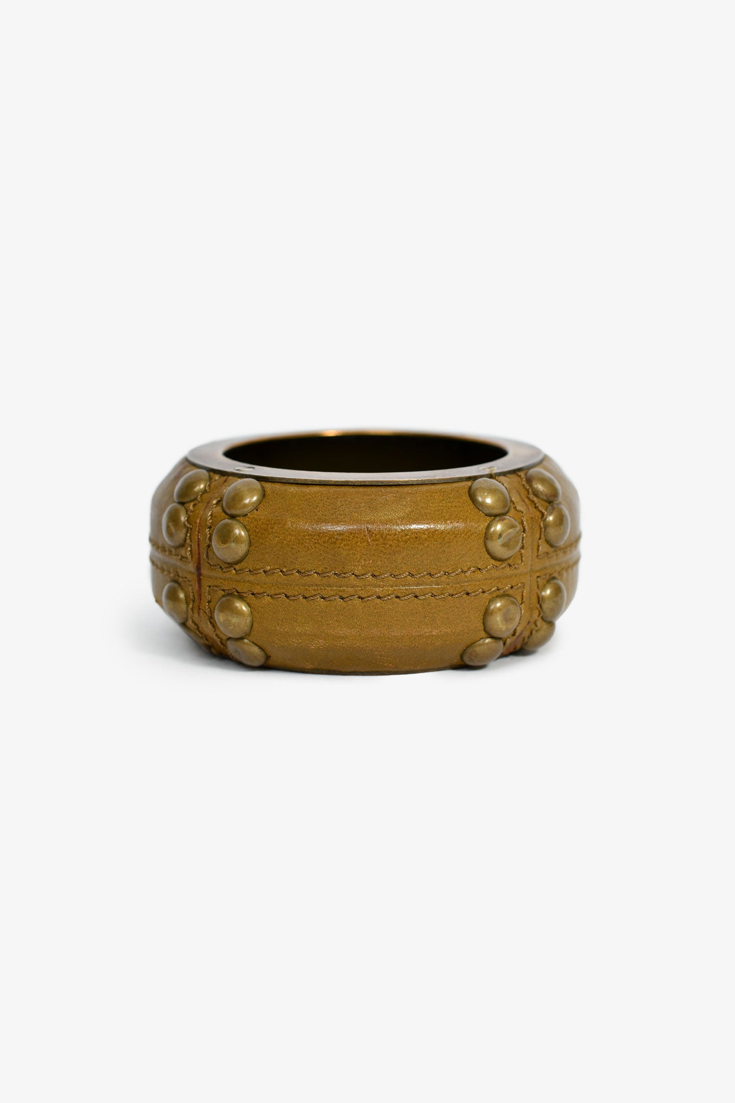 Refresh availabilityBurberry Green Leather Studded Bangle. Covered leather exterior. Tonal stitching. Brass-tone hardware.