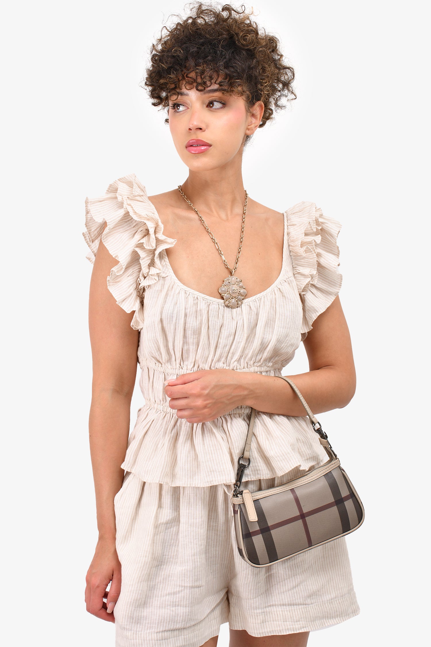 Burberry Grey Coated Canvas Check Pochette Shoulder Bag